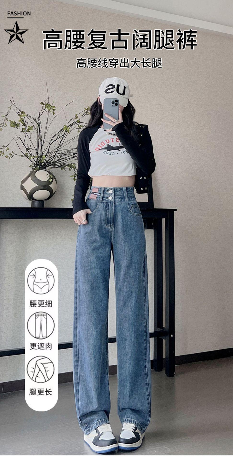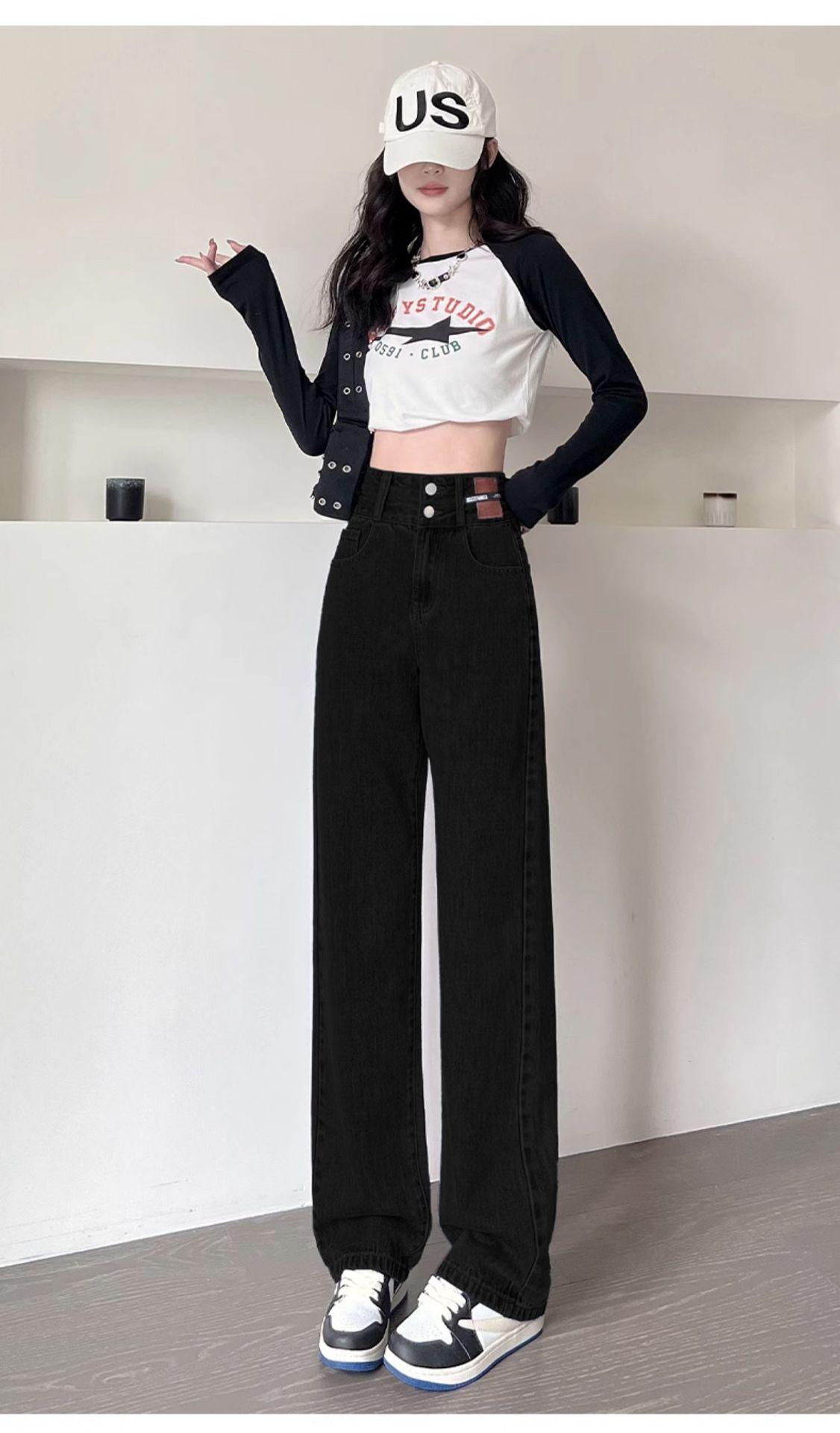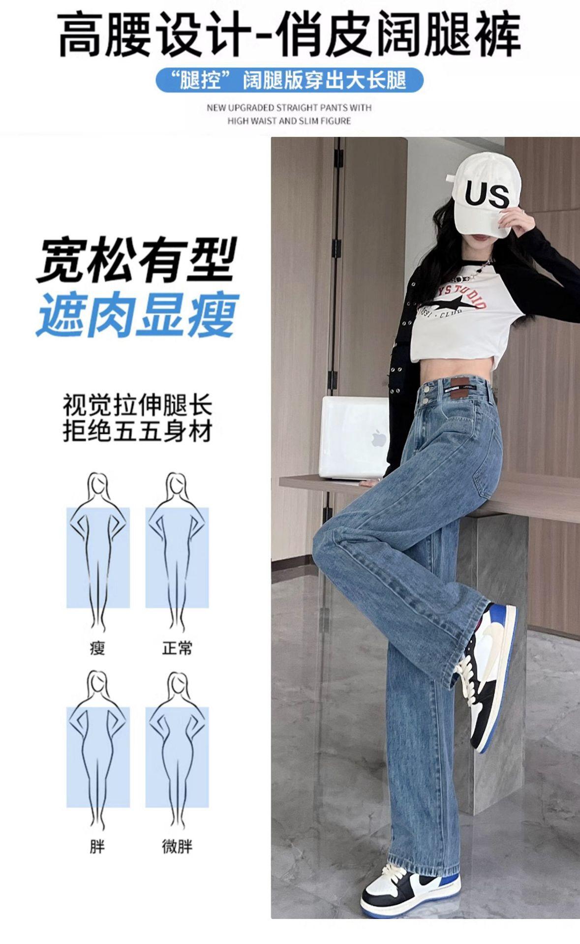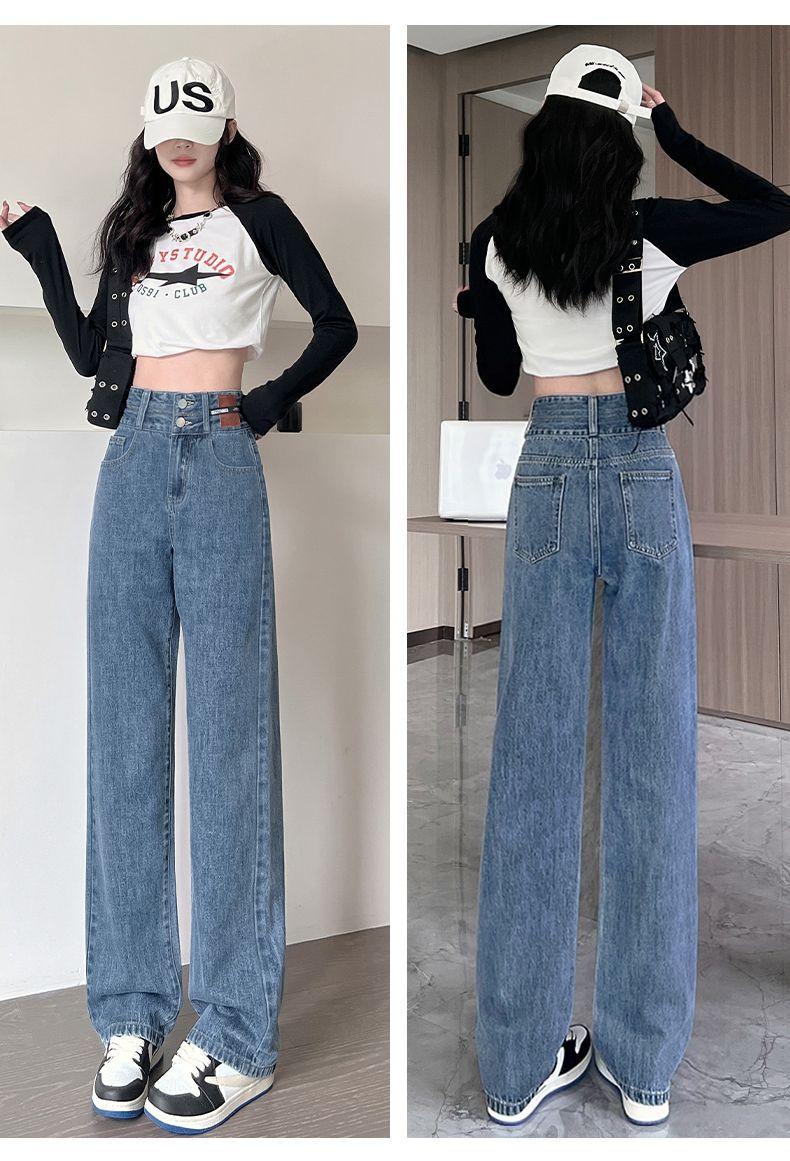Pantalones vaqueros de pierna ancha y cintura alta para mujer, de moda, otoño e invierno 2023, nuevos estilos, pantalones rectos holgados y adelgazantes.
