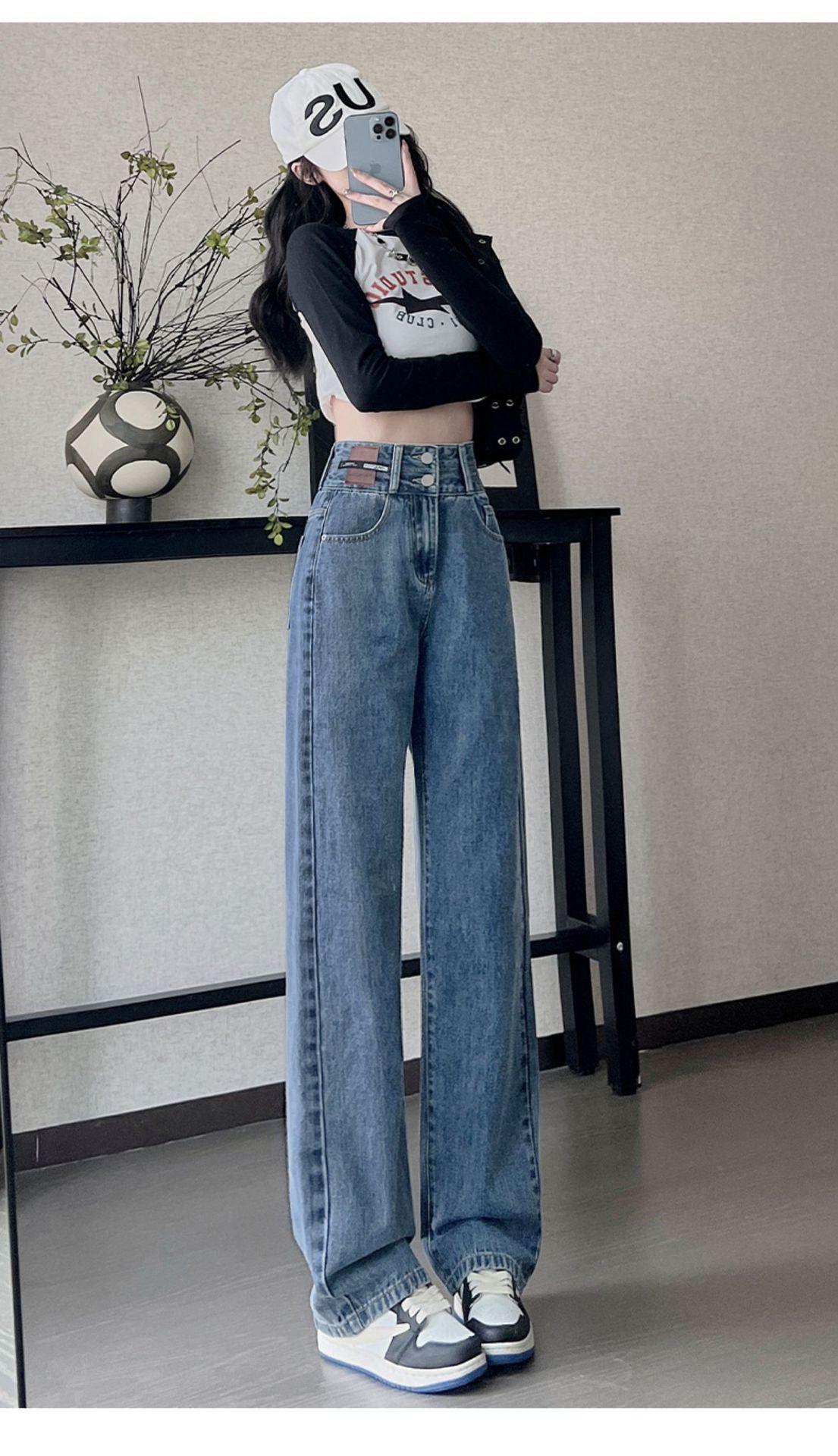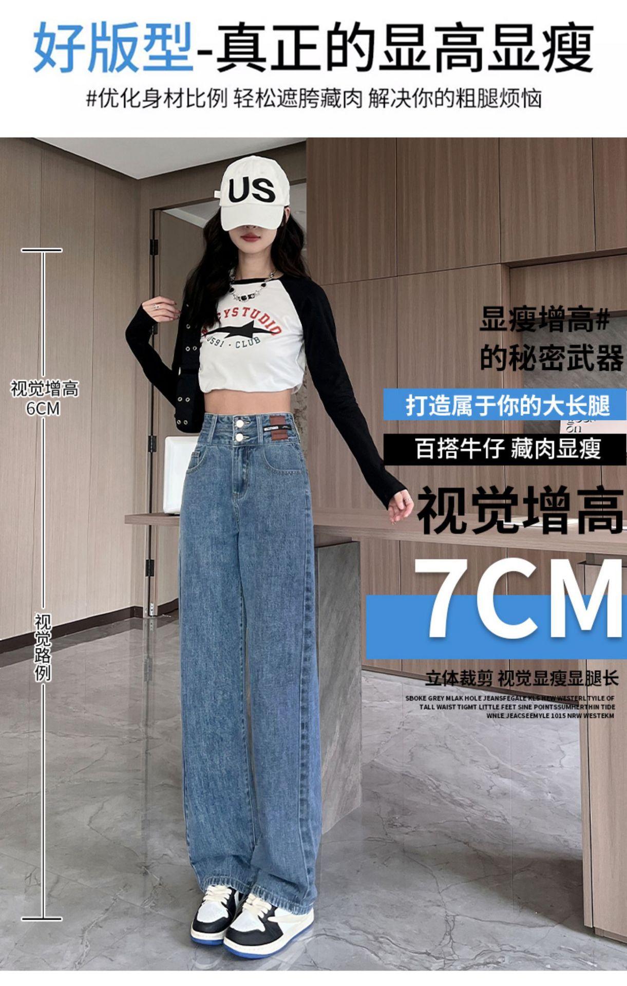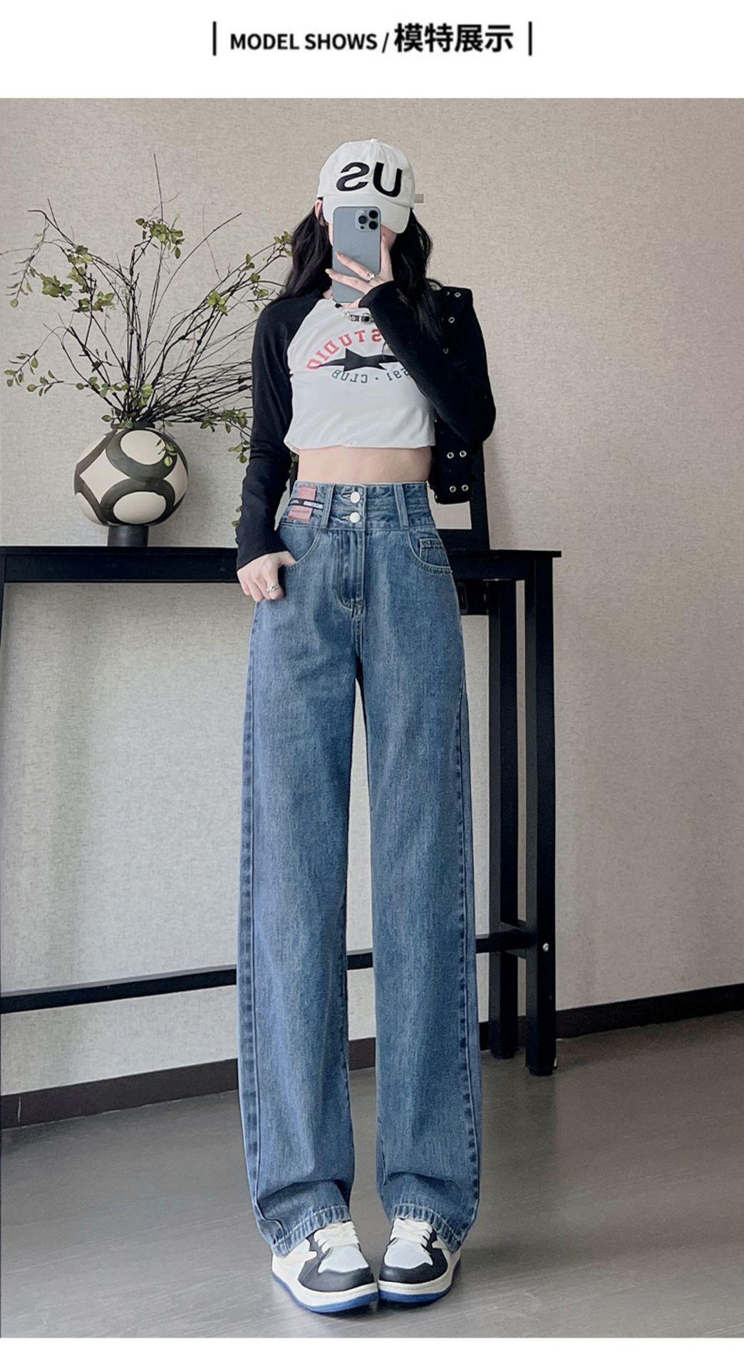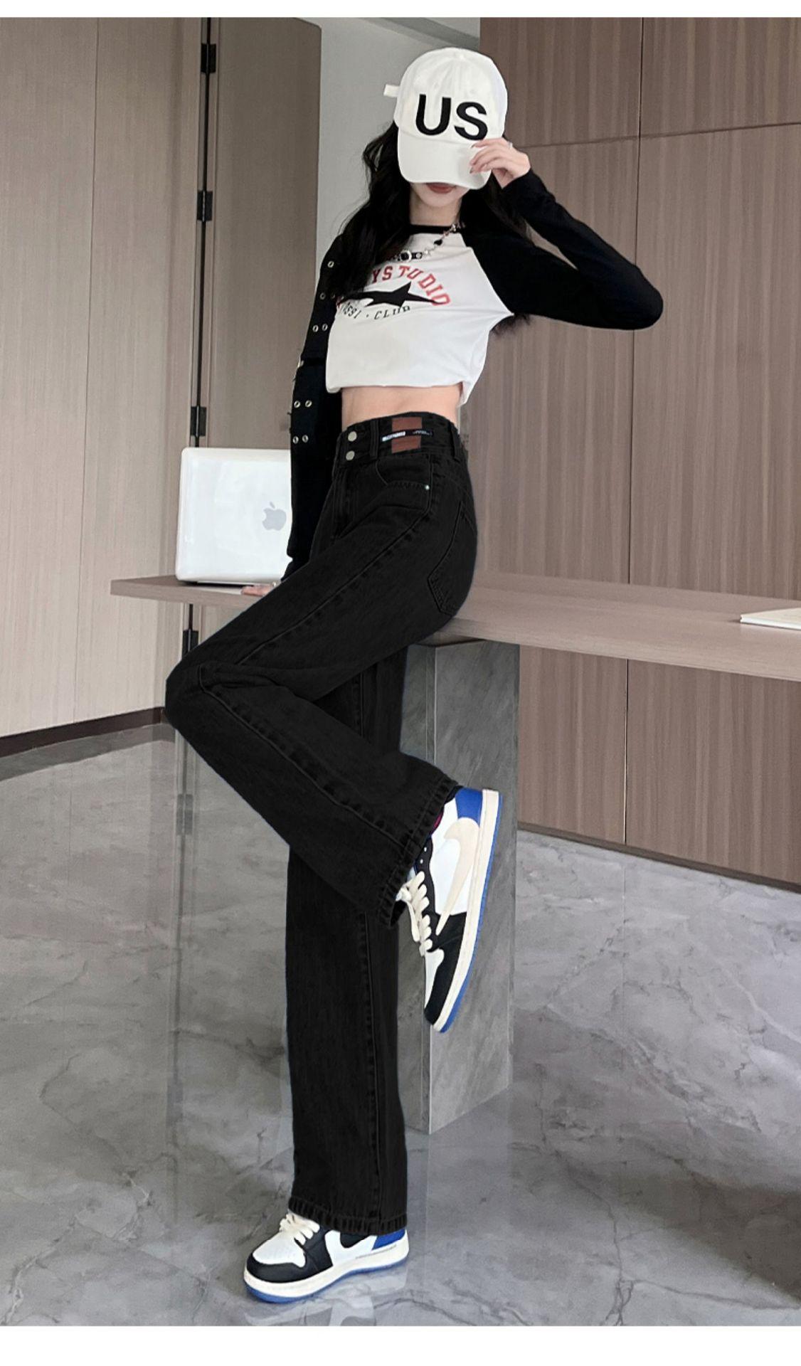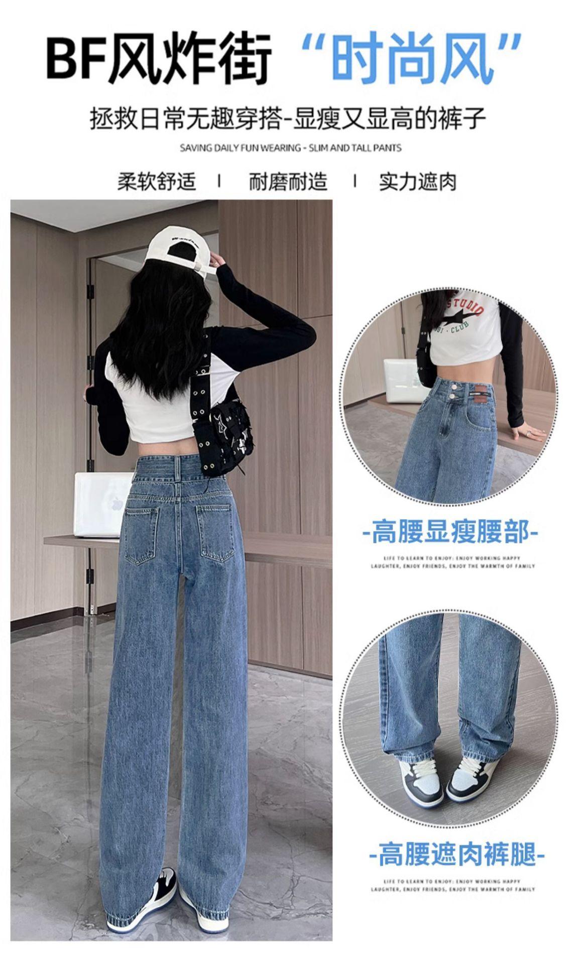 Pantalones vaqueros de pierna ancha y cintura alta para mujer, de moda, otoño e invierno 2023, nuevos estilos, pantalones rectos holgados y adelgazantes.