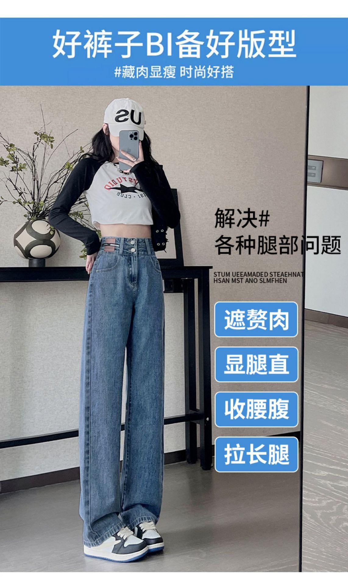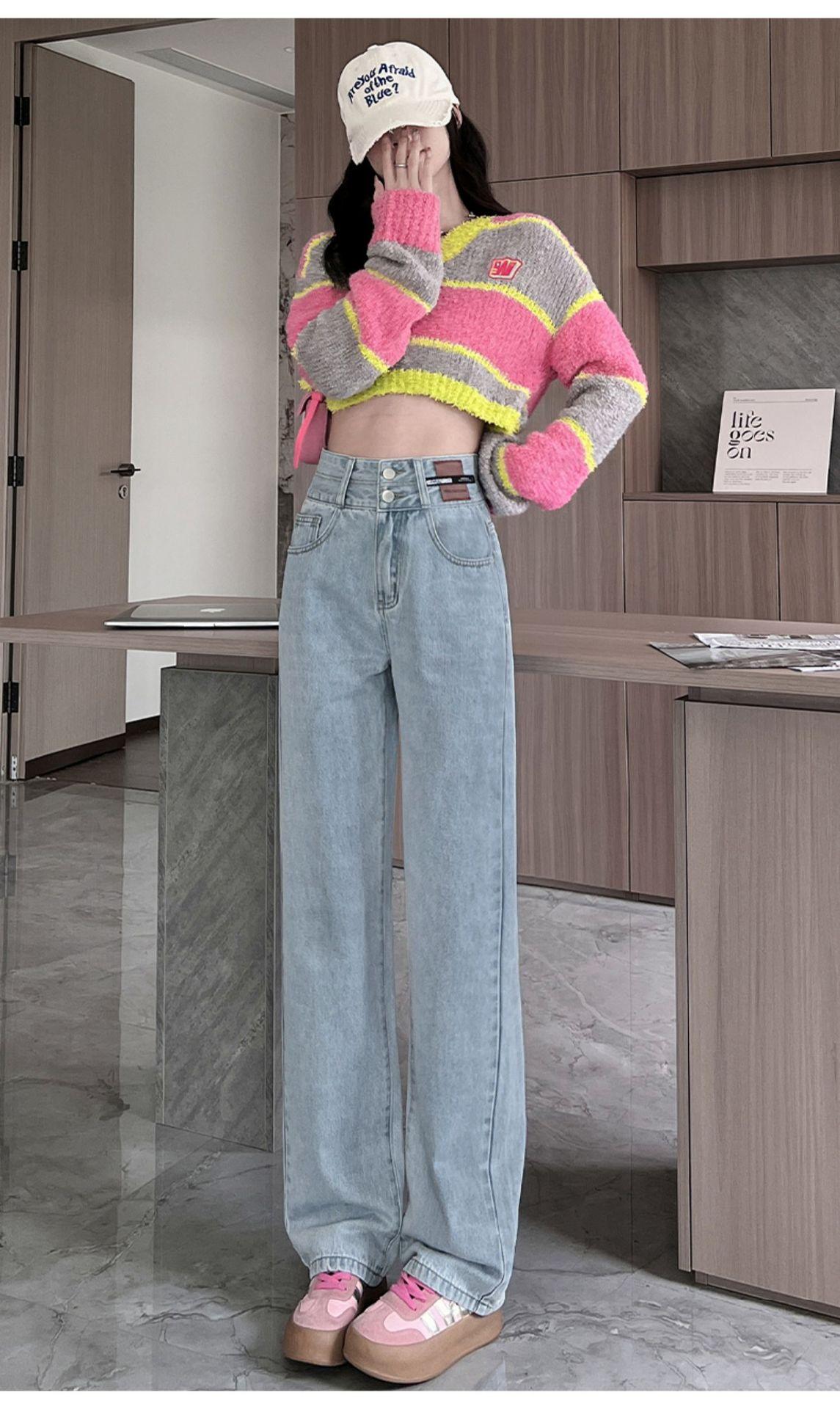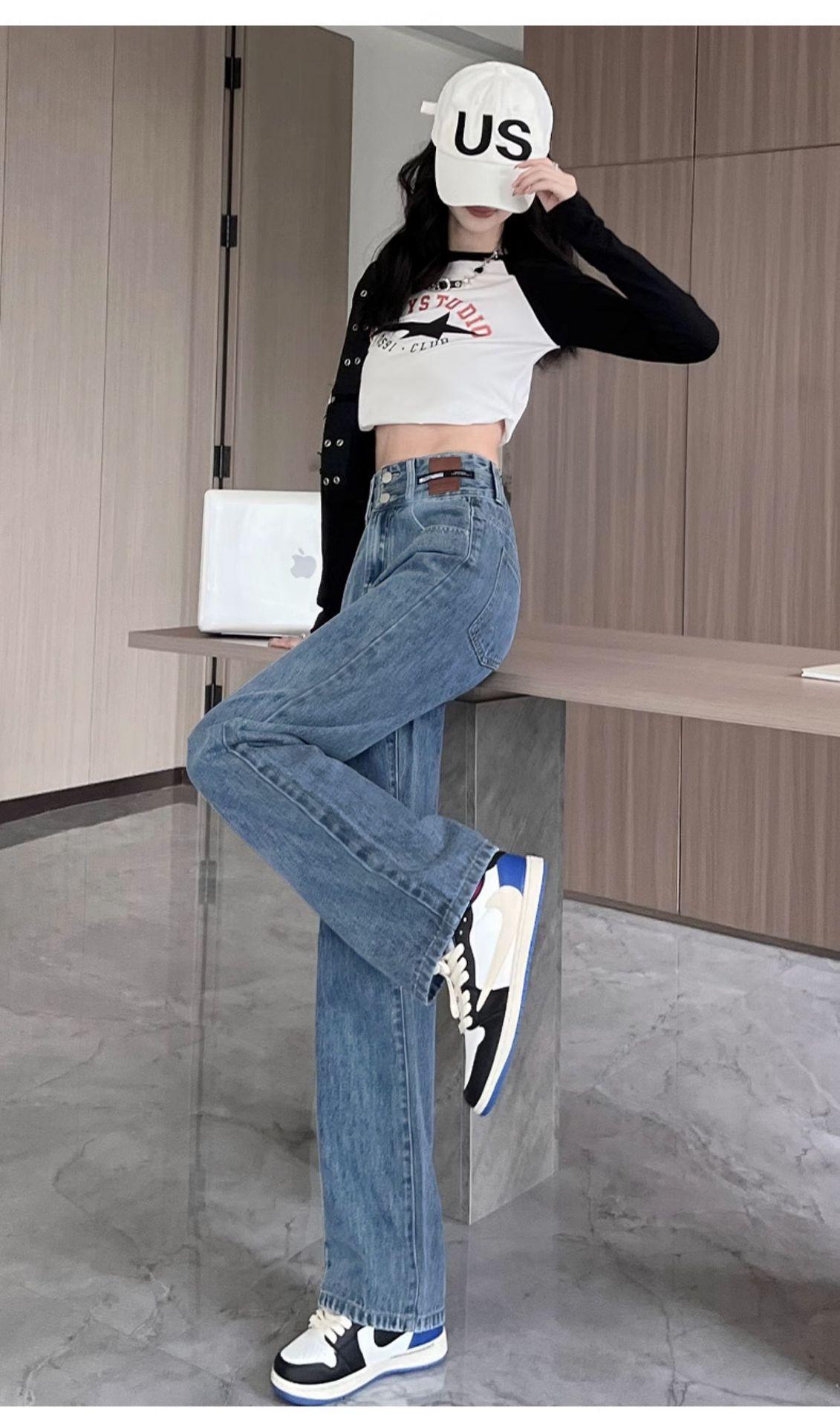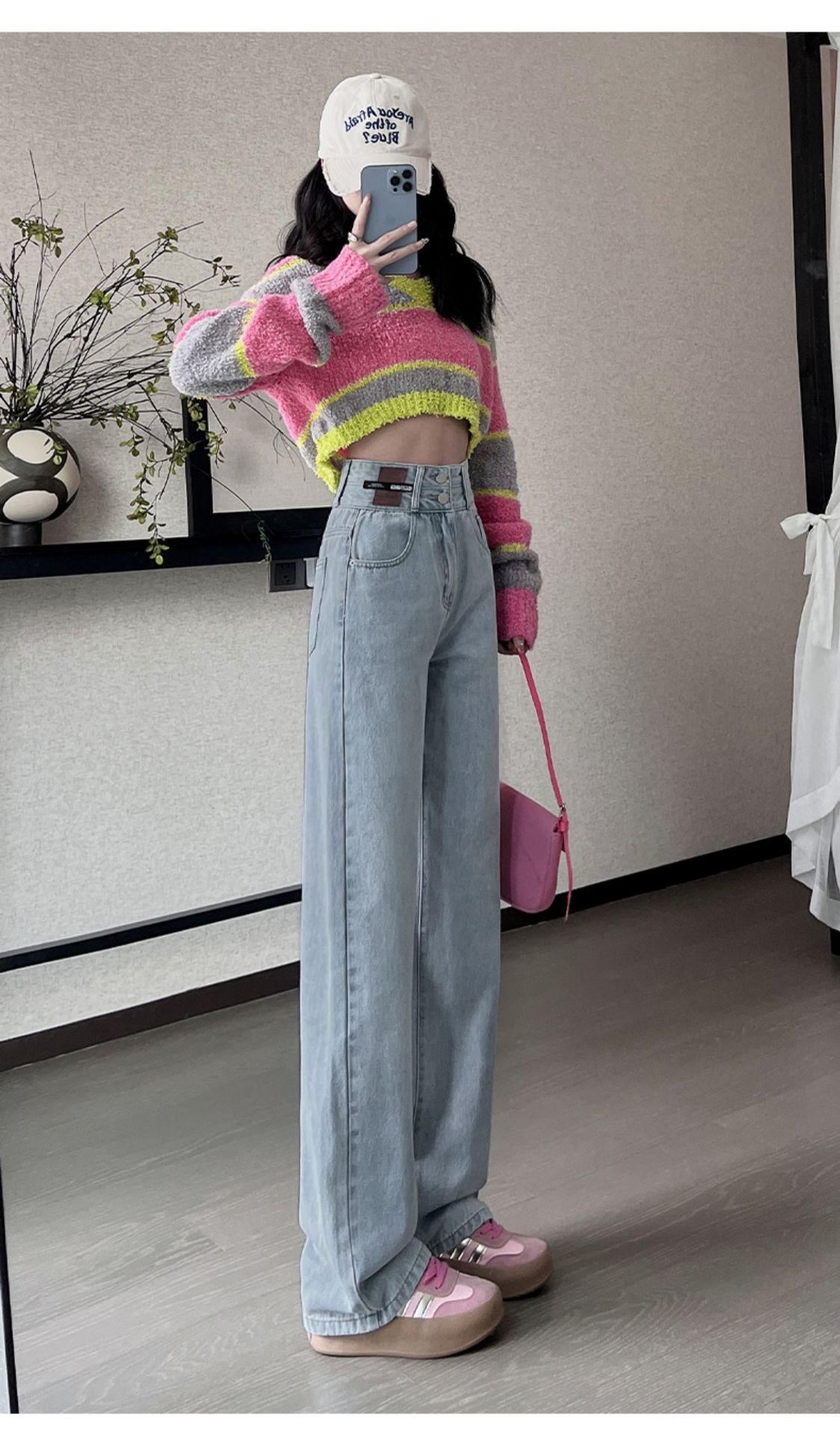 Pantalones vaqueros de pierna ancha y cintura alta para mujer, de moda, otoño e invierno 2023, nuevos estilos, pantalones rectos holgados y adelgazantes.