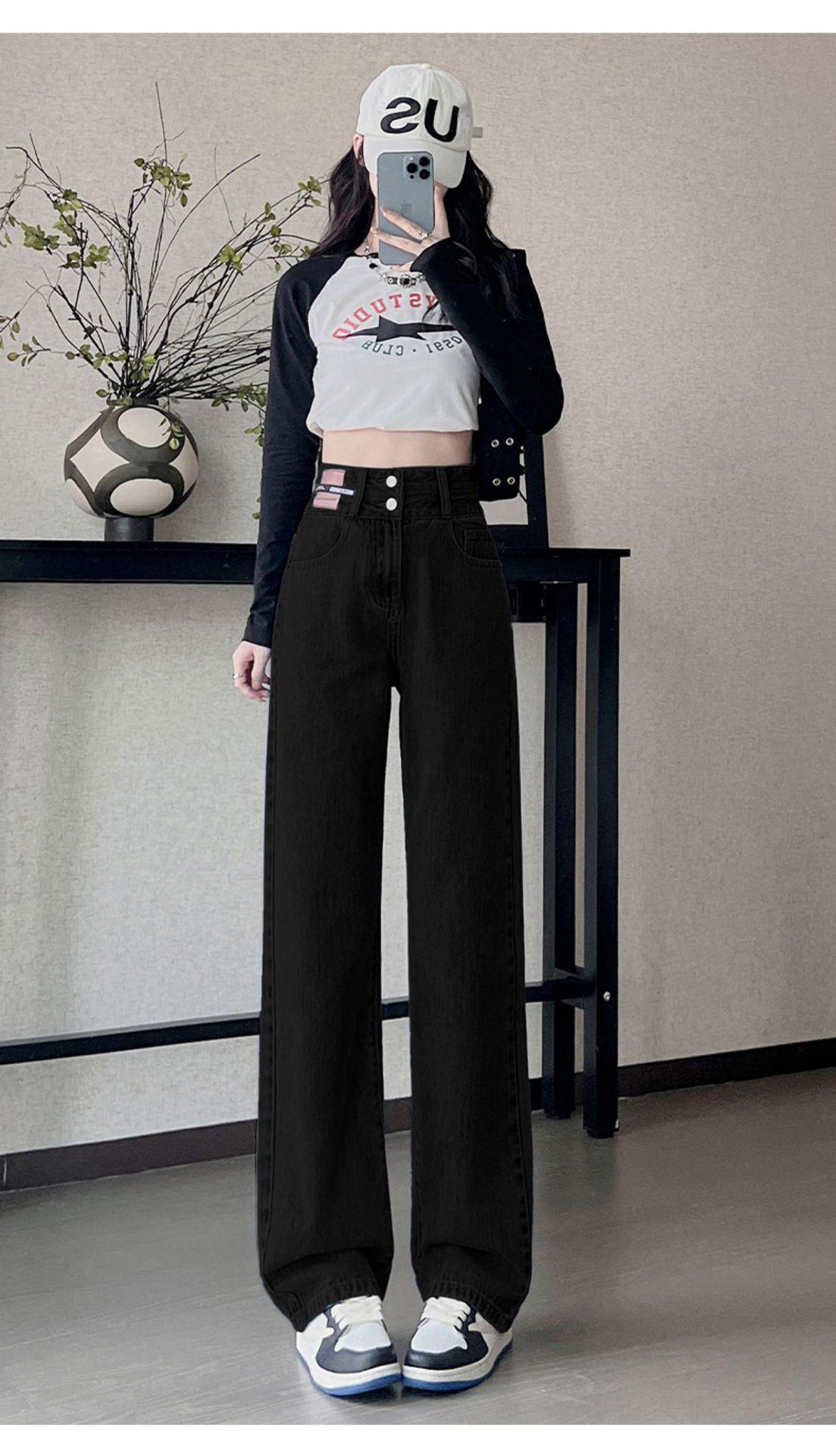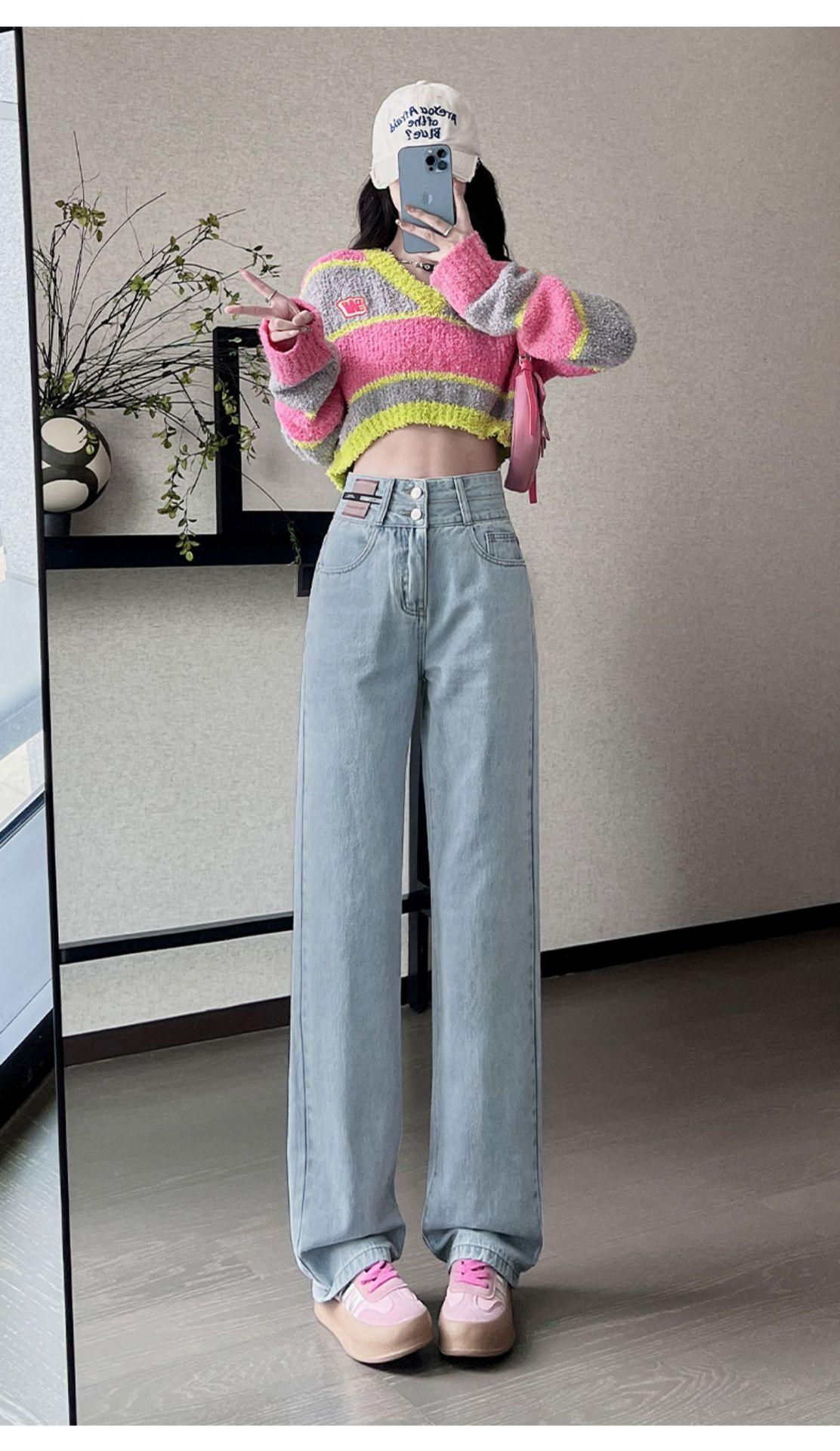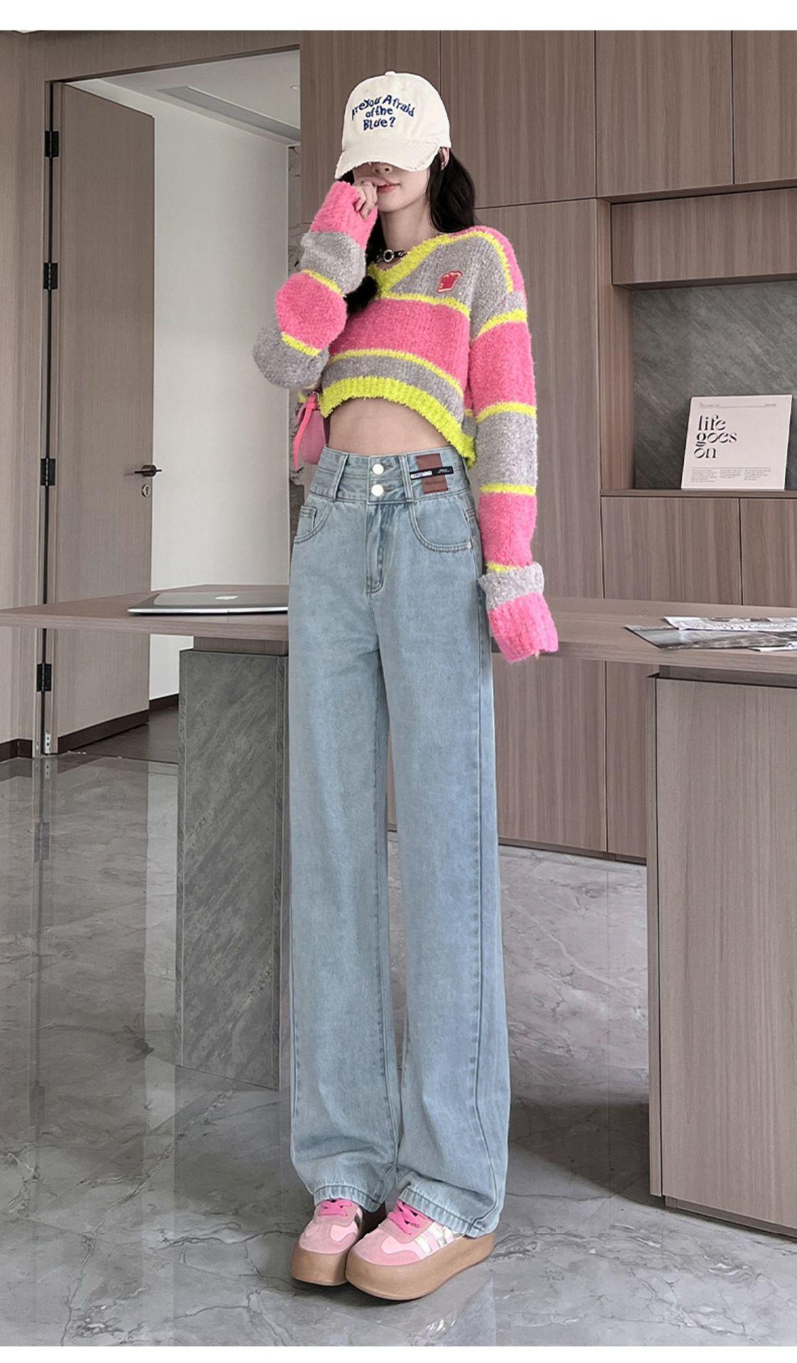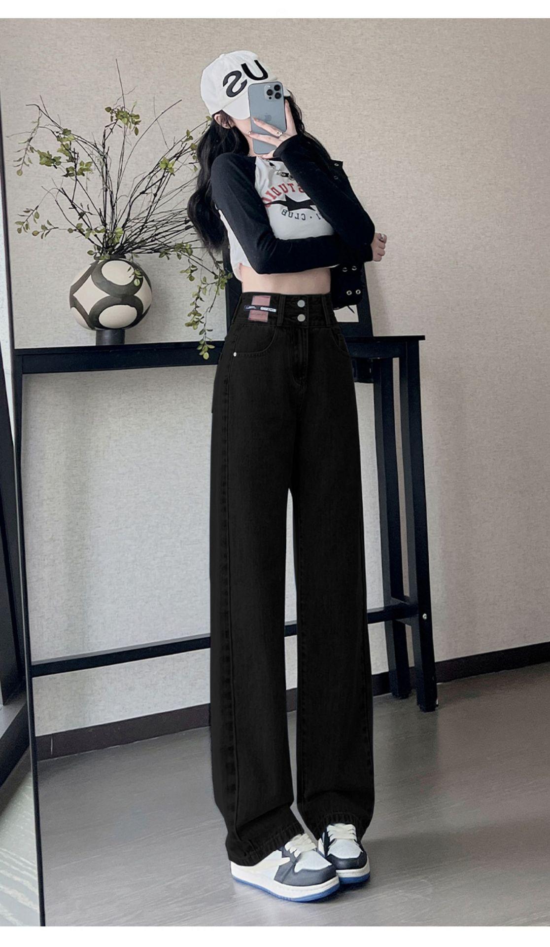 Pantalones vaqueros de pierna ancha y cintura alta para mujer, de moda, otoño e invierno 2023, nuevos estilos, pantalones rectos holgados y adelgazantes.