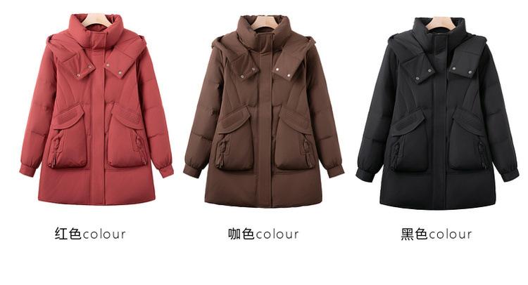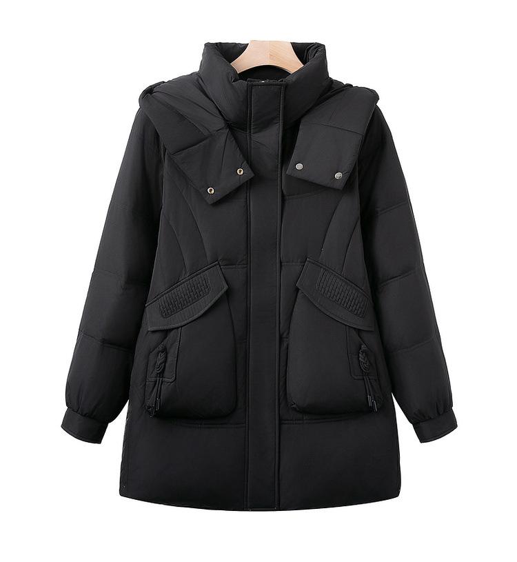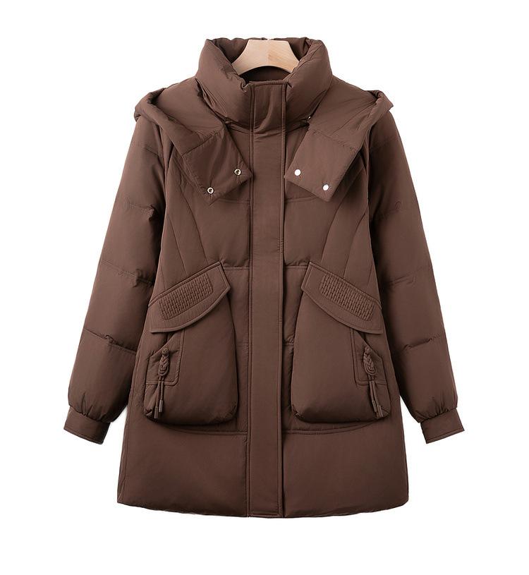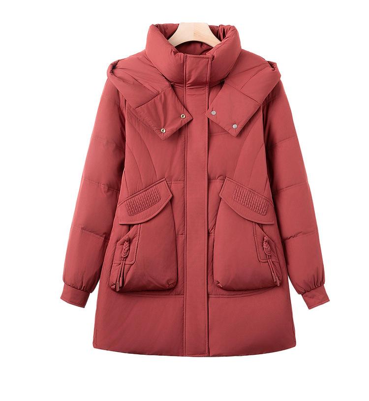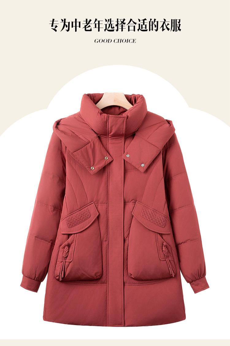 Invierno Nuevo Chaqueta de Plumón Estilo Occidental para Mediana Edad Madre Engrosada Cálida Capucha Desmontable Plumón de Pato Blanco Chaqueta de Moda