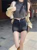 Shorts de Mezclilla Super Grandes de Pierna Larga para Mujer Verano Cintura Alta Irregular Cadera Elásticos Chica Caliente Sexy Línea A Pantalones Cortos