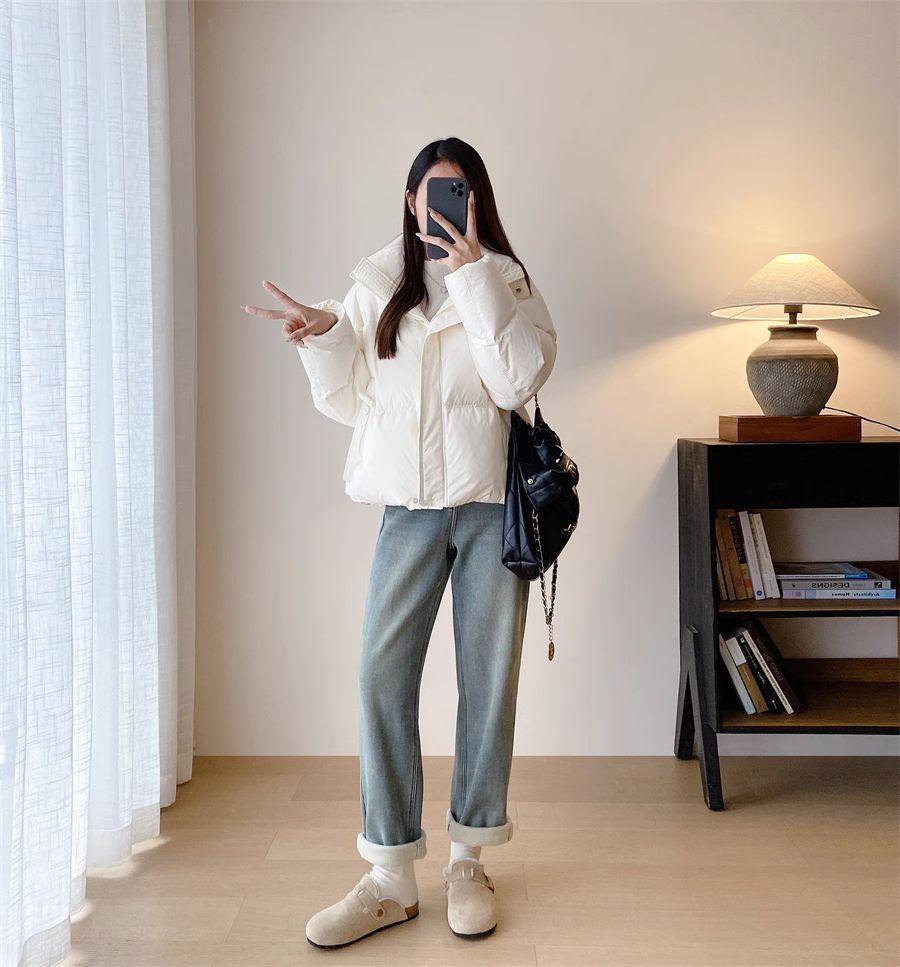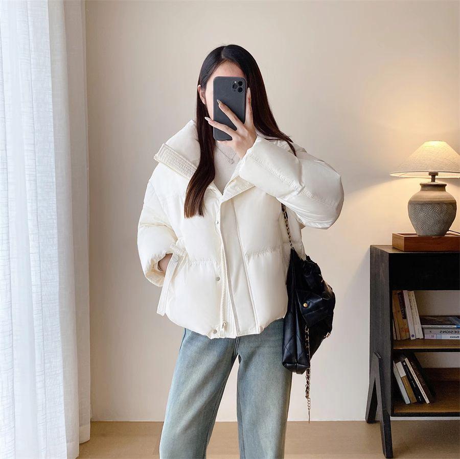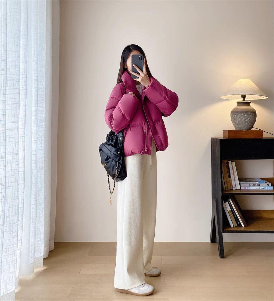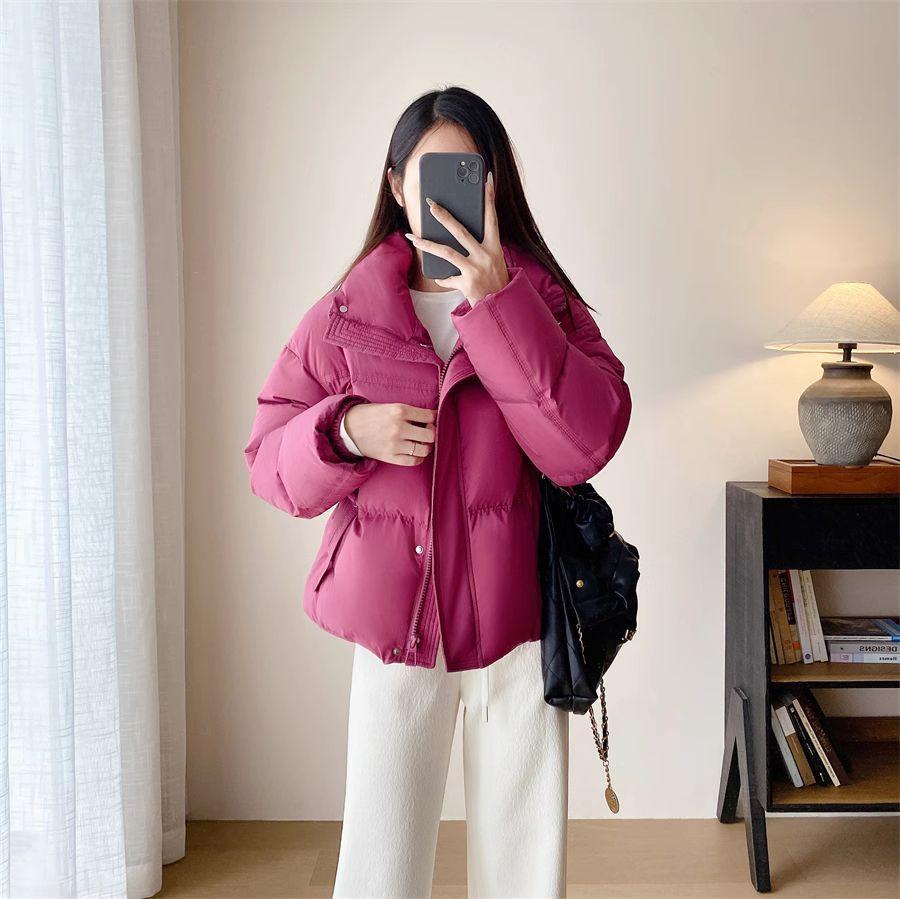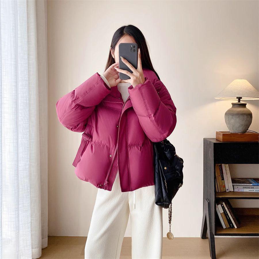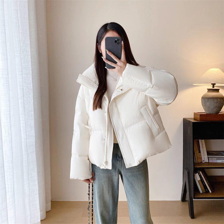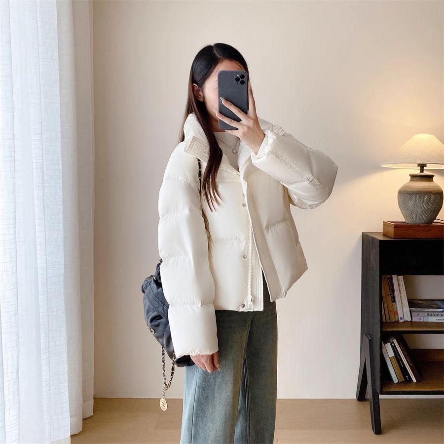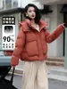 Pequeño Amigable Samsung 90 Plumón de Pato Blanco Cuello a Prueba de Tres Engrosado Cálido Chaqueta Corta de Plumón para Mujer Invierno