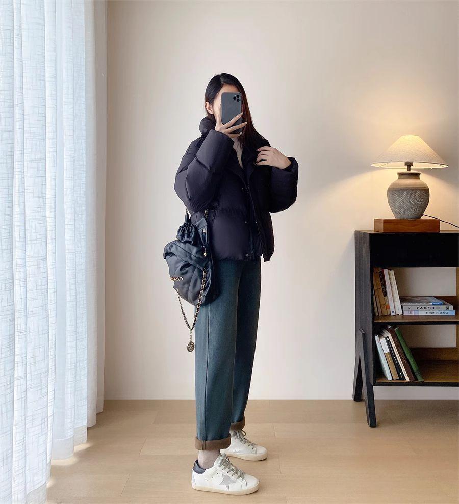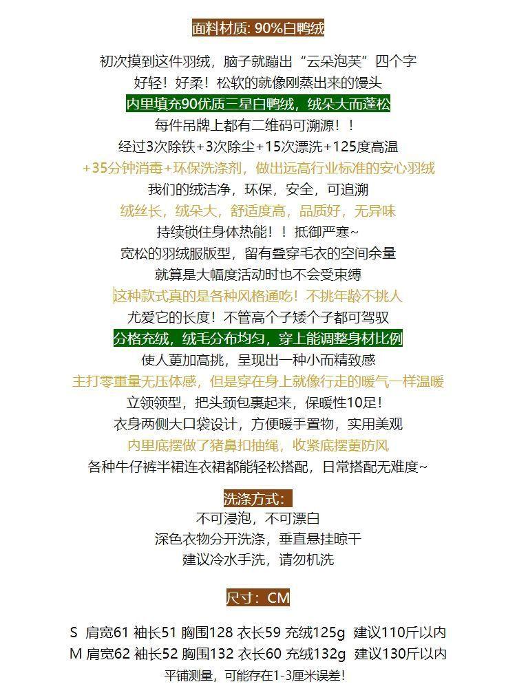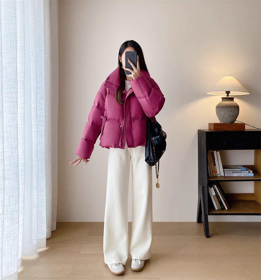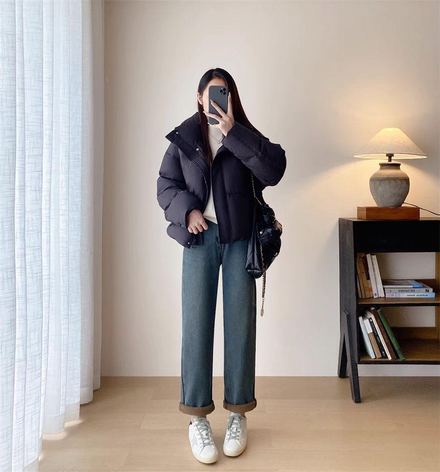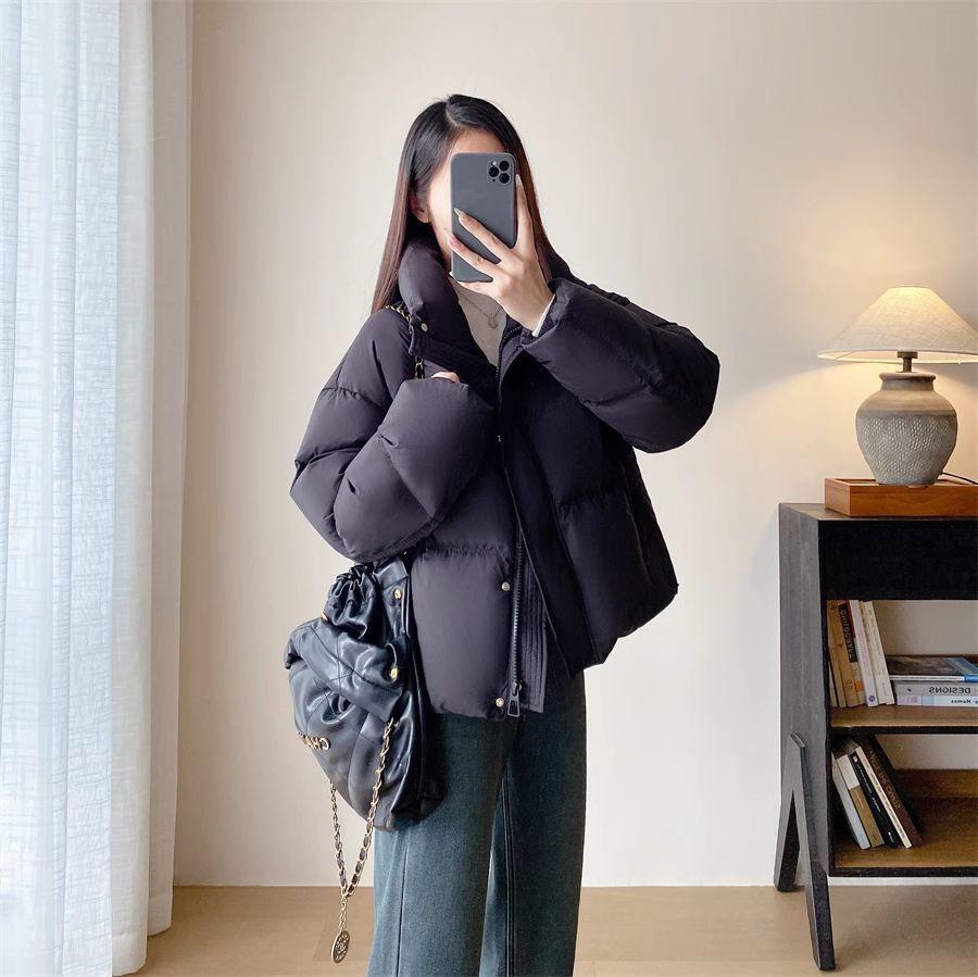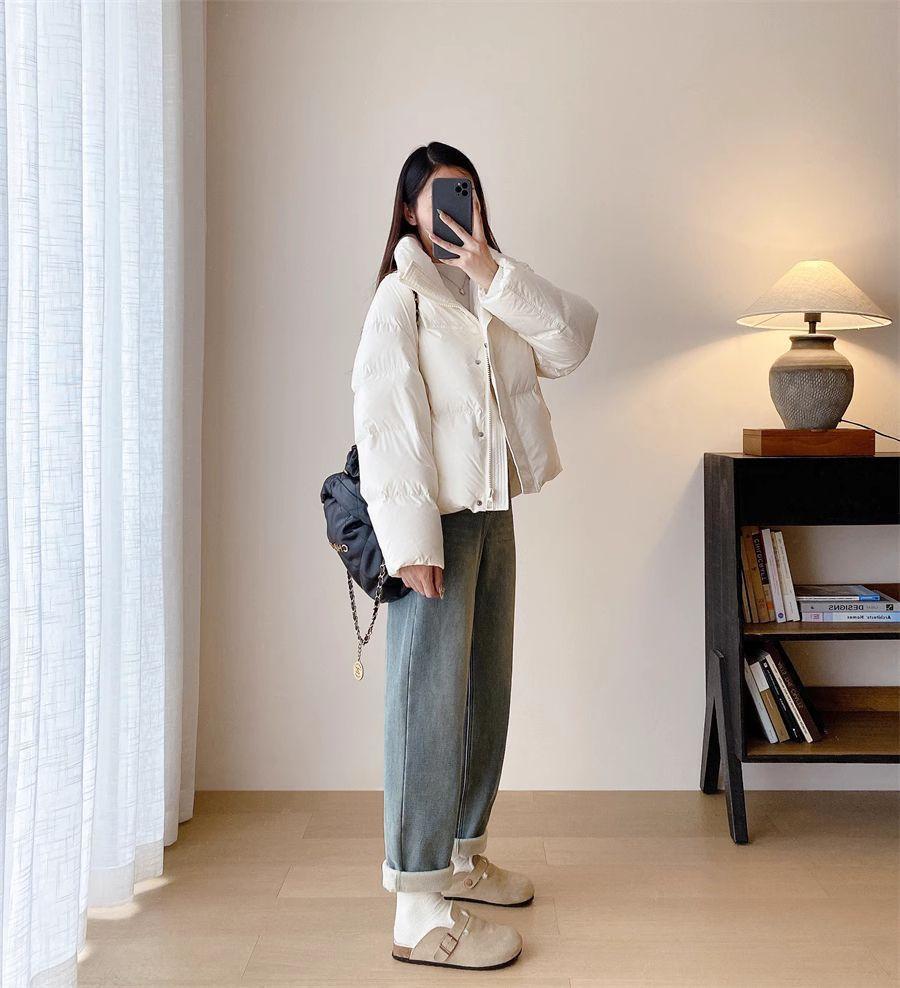 Pequeño Amigable Samsung 90 Plumón de Pato Blanco Cuello a Prueba de Tres Engrosado Cálido Chaqueta Corta de Plumón para Mujer Invierno