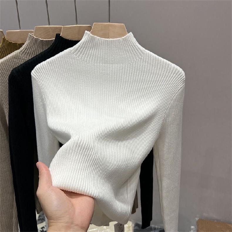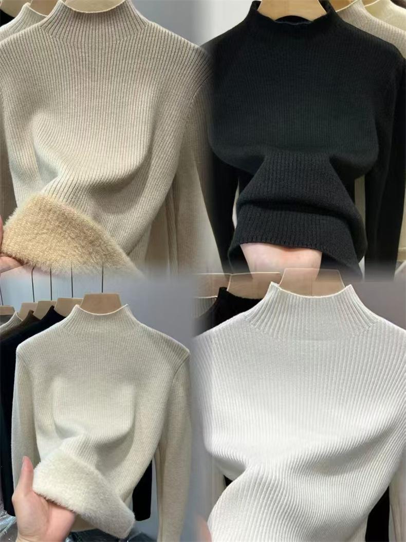 Suéter de Terciopelo de Cuello Alto de Una Pieza para Mujer Otoño e Invierno Nuevo Forrado de Felpa Engrosado Camiseta Base Tejida Versátil Top Cálido Holgado