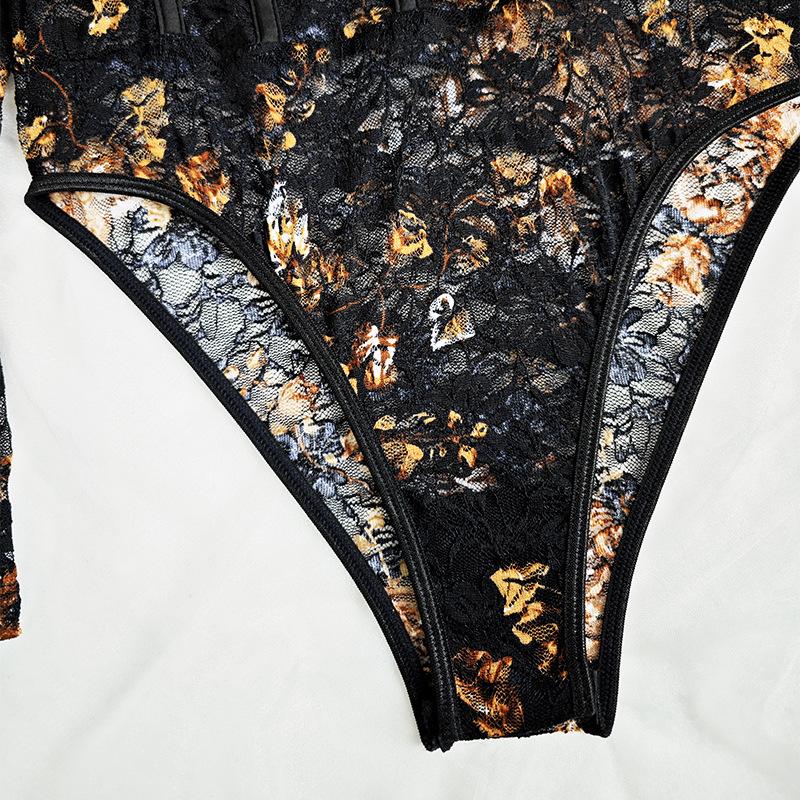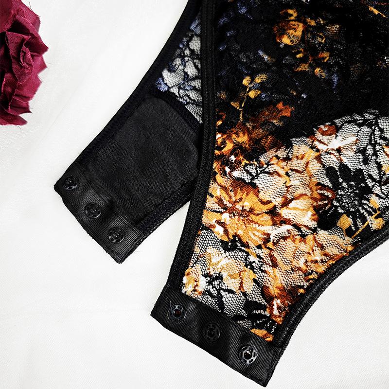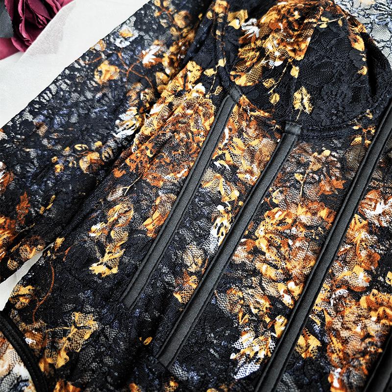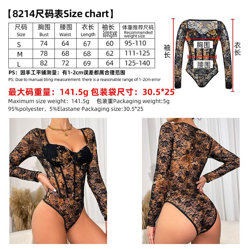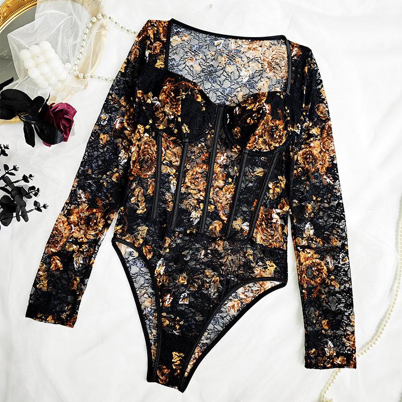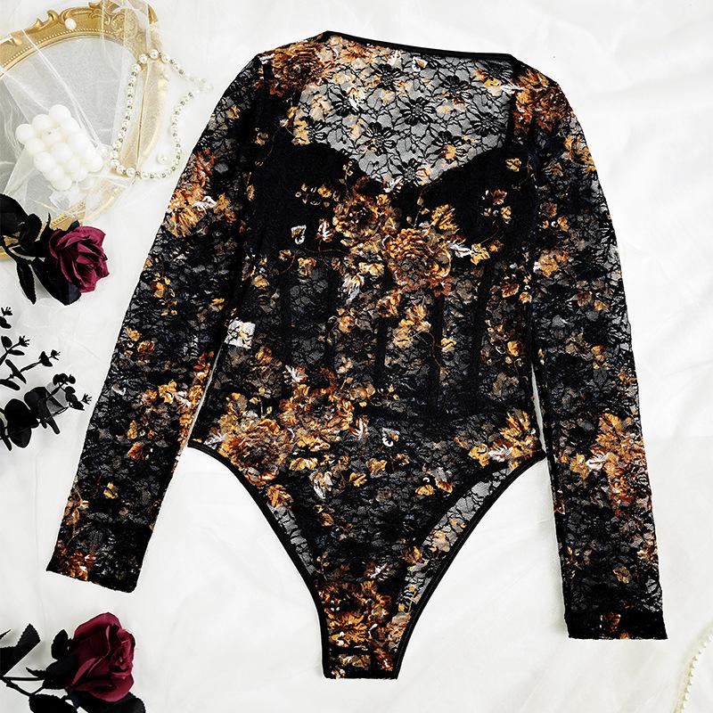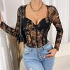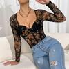 Nueva Chaqueta Ajustada de Encaje de Manga Larga Transfronteriza Perspectiva Europea y Americana Malla Sexy Todo Combinable Mono Ajustado