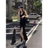 Vestido de tirantes sin mangas de temperamento simple europeo y americano, nuevo diseño de otoño 2024, vestido sexy sin espalda con flores