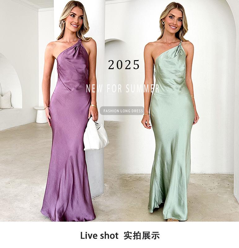 Amazon Transfronterizo 2025 Nueva Tendencia Sexy Cuello Inclinado Tirantes Moda Fiesta Espalda Descubierta Vestido Ajustado para Mujeres
