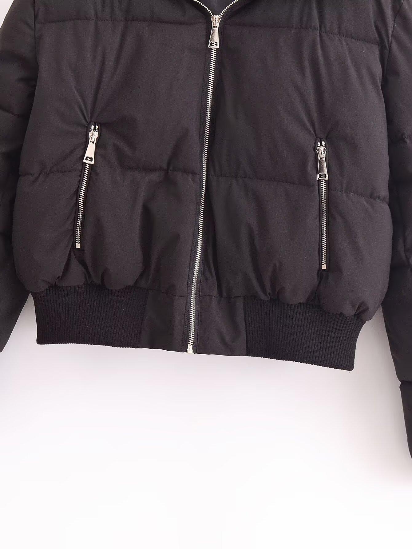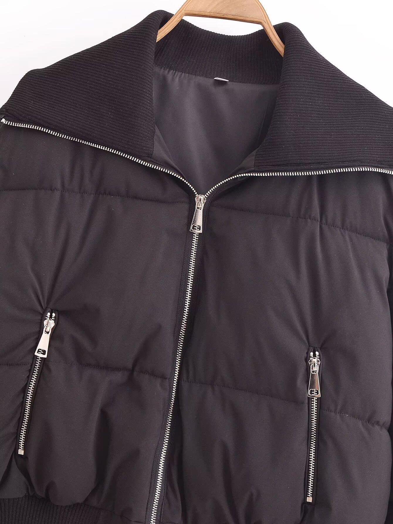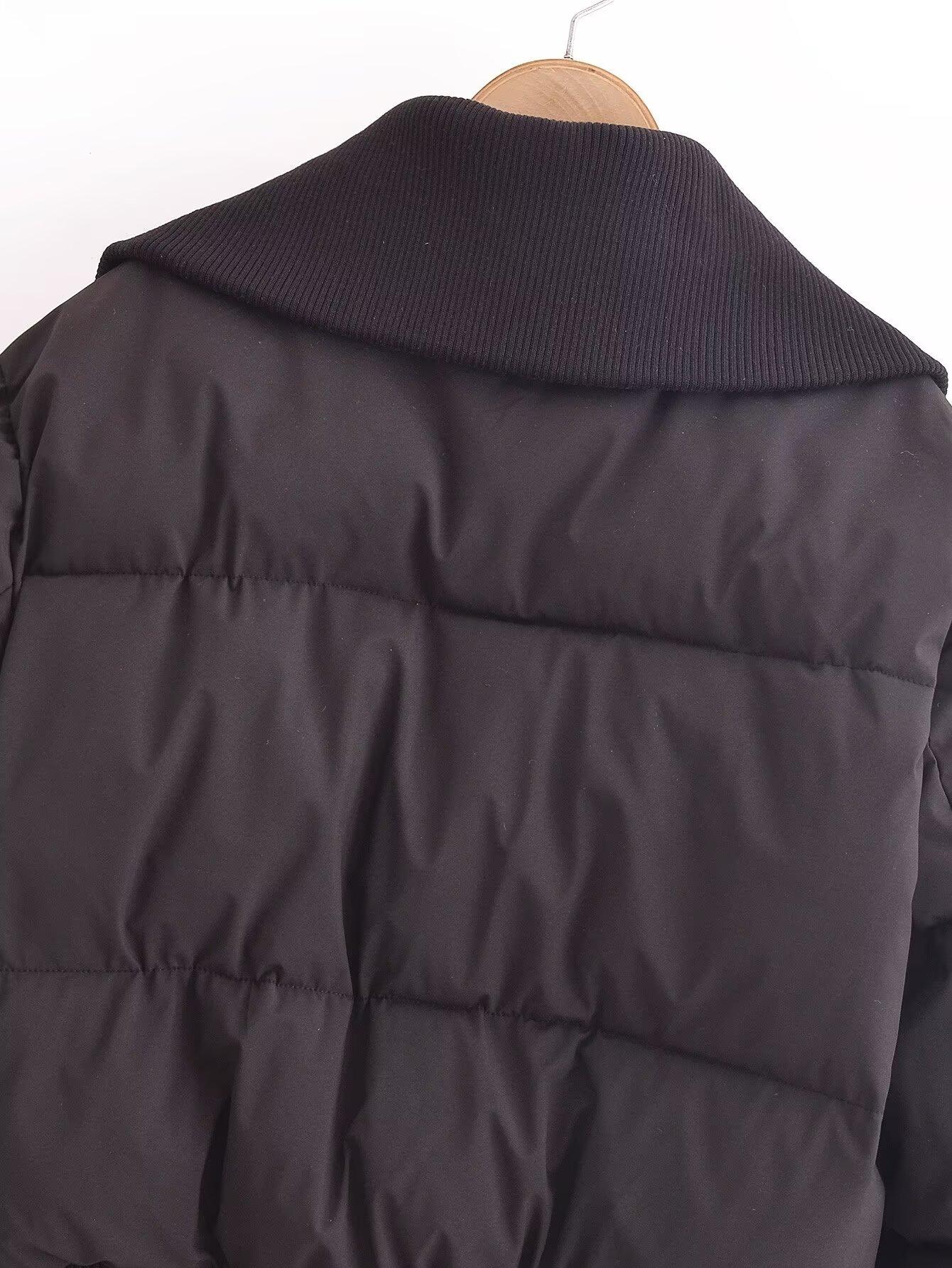 Chaqueta acolchada de algodón con adornos de canalé informal de moda urbana para mujer, estilo europeo y americano, invierno de 2024, w09 69098