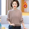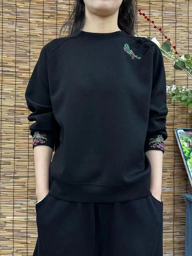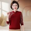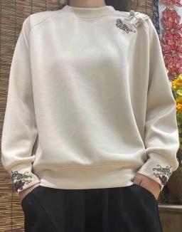 Camiseta de manga larga bordada de estilo étnico para mujer, de forro polar, para primavera y otoño, nueva camisa básica, prenda exterior ajustada, jersey de cuello redondo para invierno.