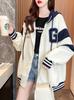 Chamarra de Traje de Béisbol para Mujer 2025 Nuevo Otoño e Invierno Bordado en Contraste Suelta Estilo Universitario con Capucha Felpa Forrada Sudadera Gruesa