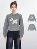 Suéter corto de cuello redondo para mujer, de color gris, con base interior de lana gruesa y pequeña, para otoño e invierno.