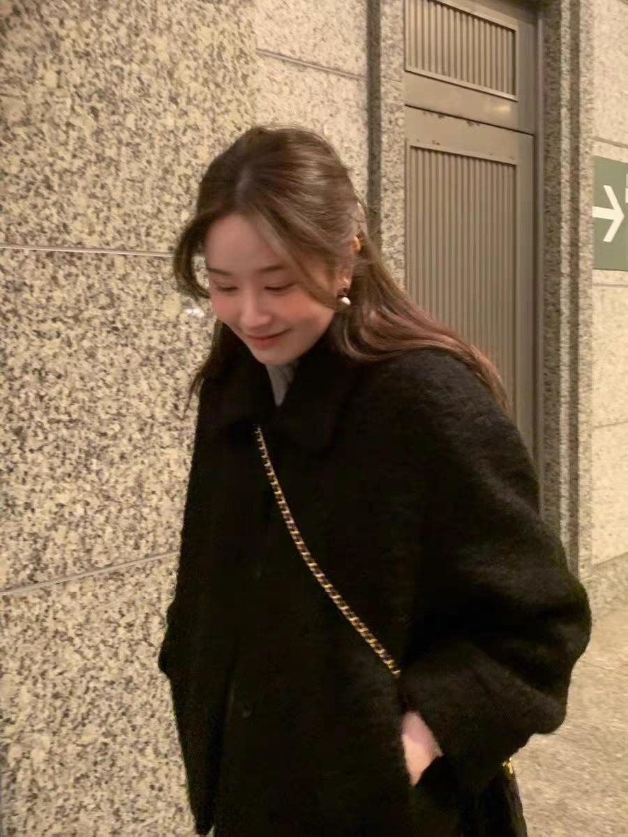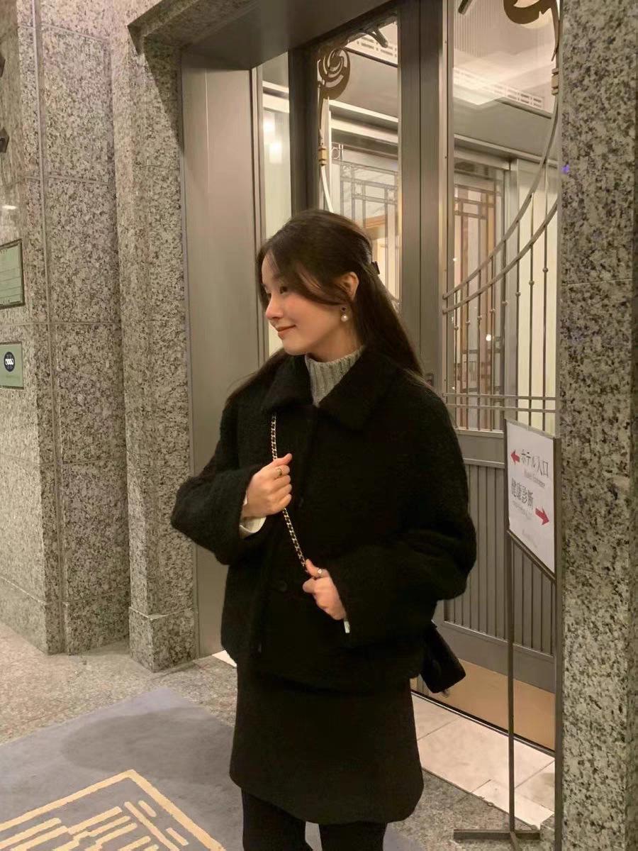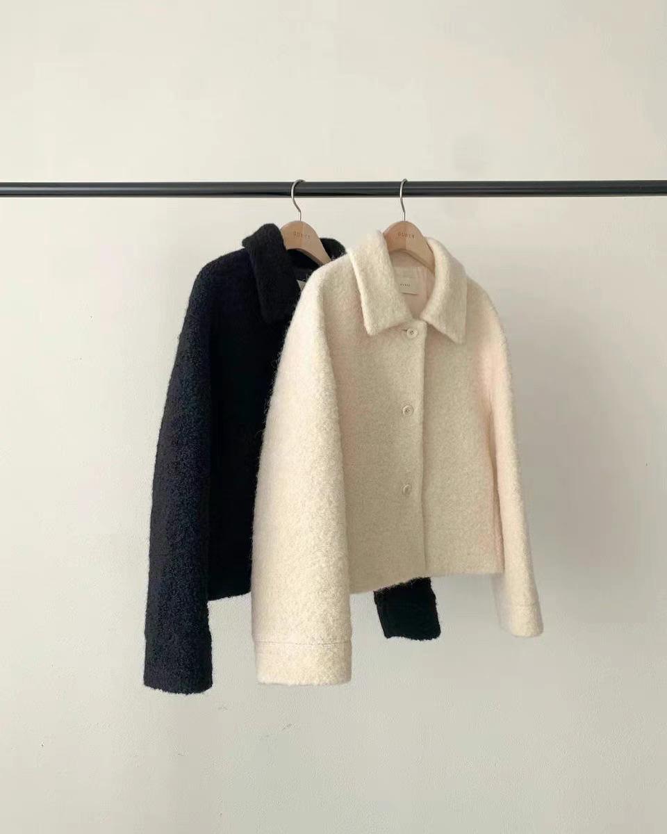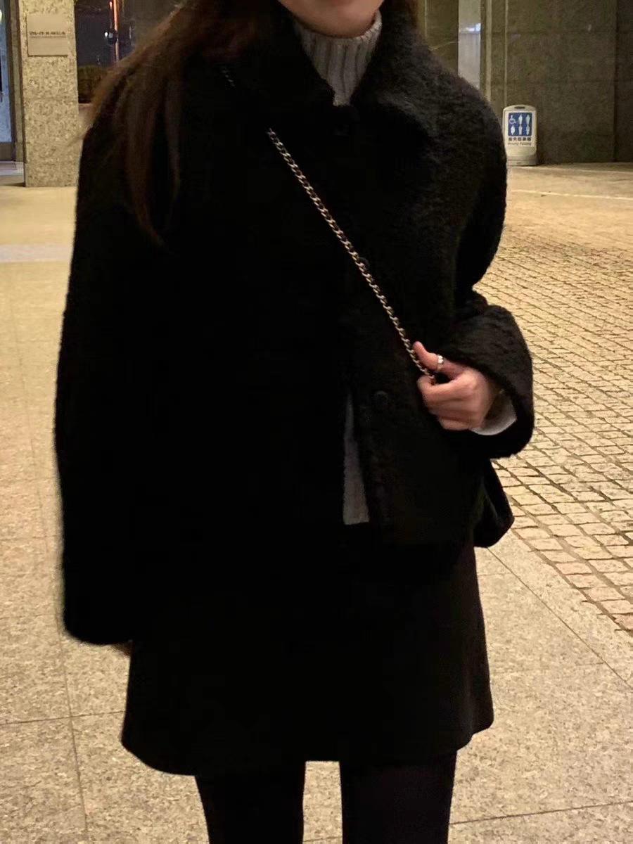 2024 [SC] Puerta Han Dong Otoño/Invierno Nuevo OU * CE Temperamento Color Sólido Solapa Abrigo Corto de Un Solo Botón