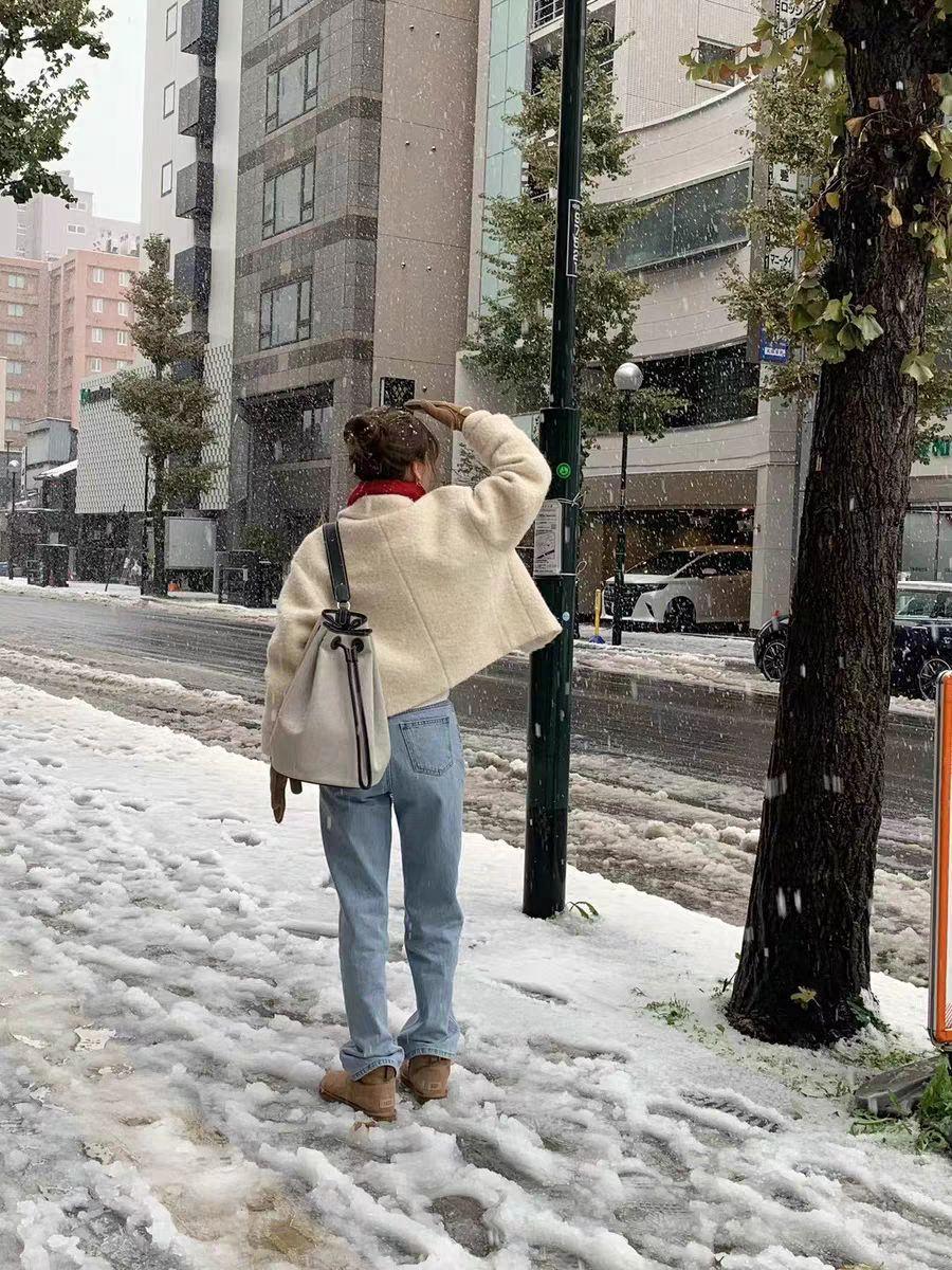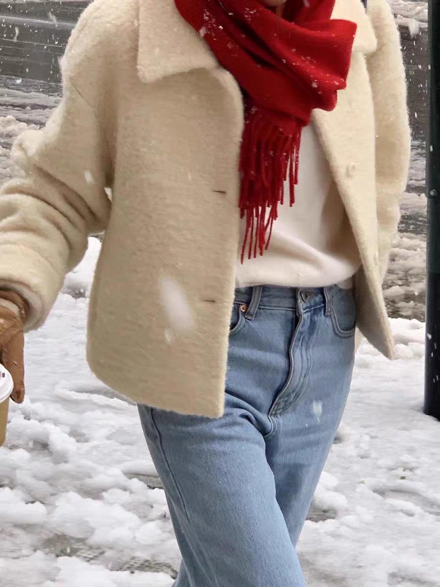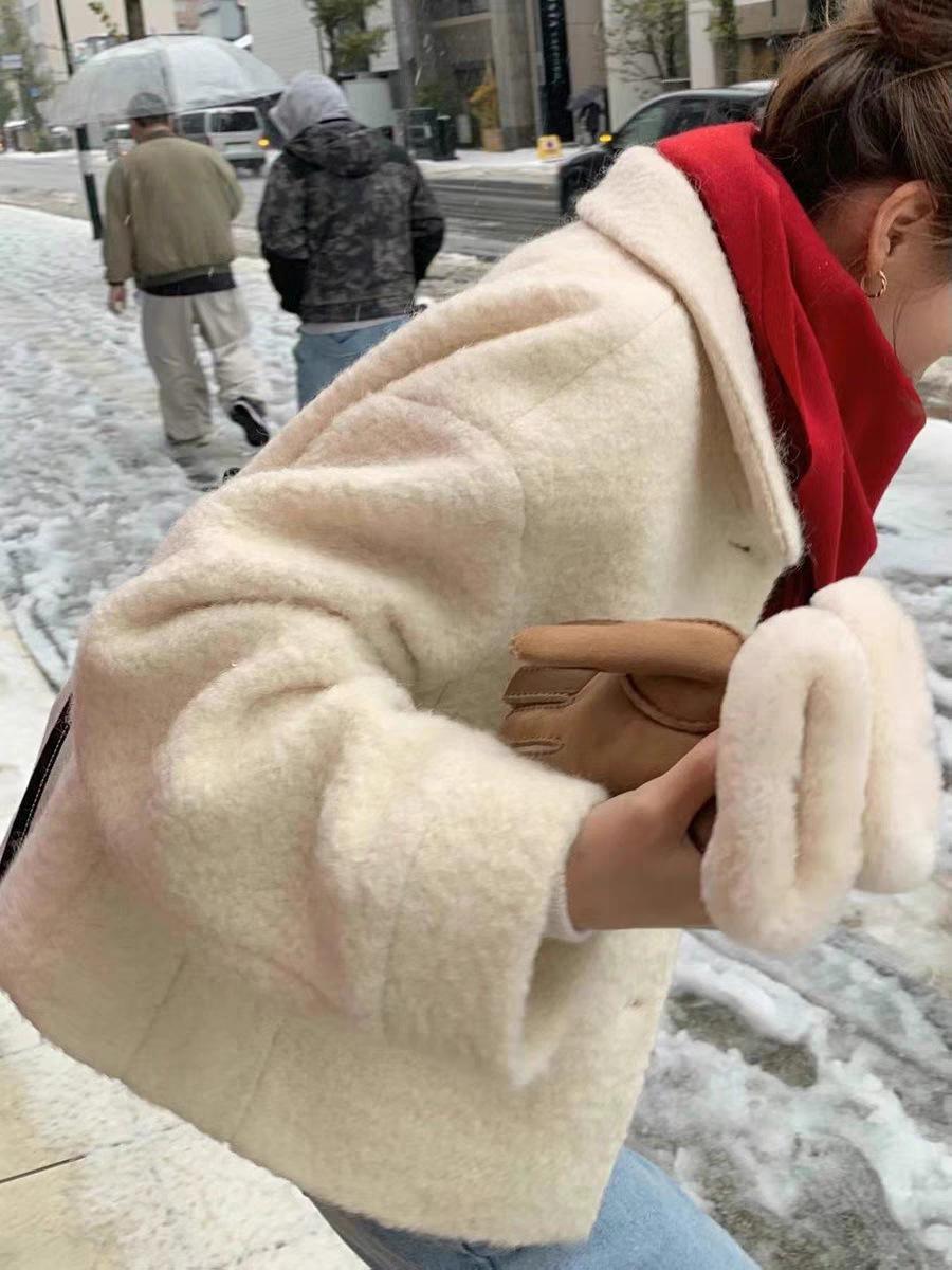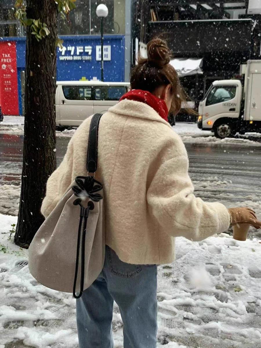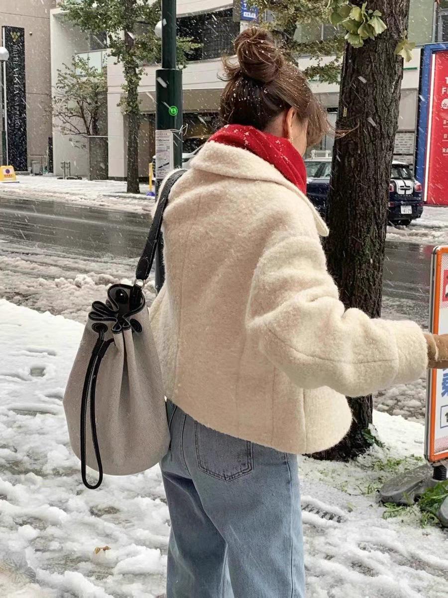 2024 [SC] Puerta Han Dong Otoño/Invierno Nuevo OU * CE Temperamento Color Sólido Solapa Abrigo Corto de Un Solo Botón