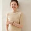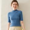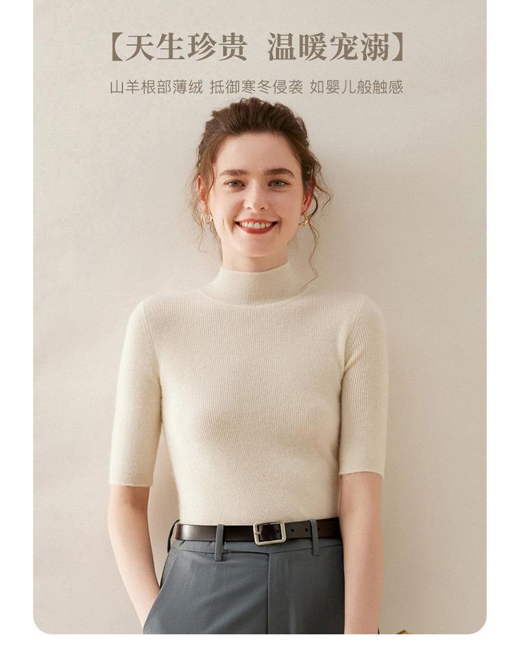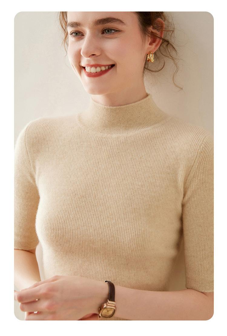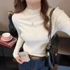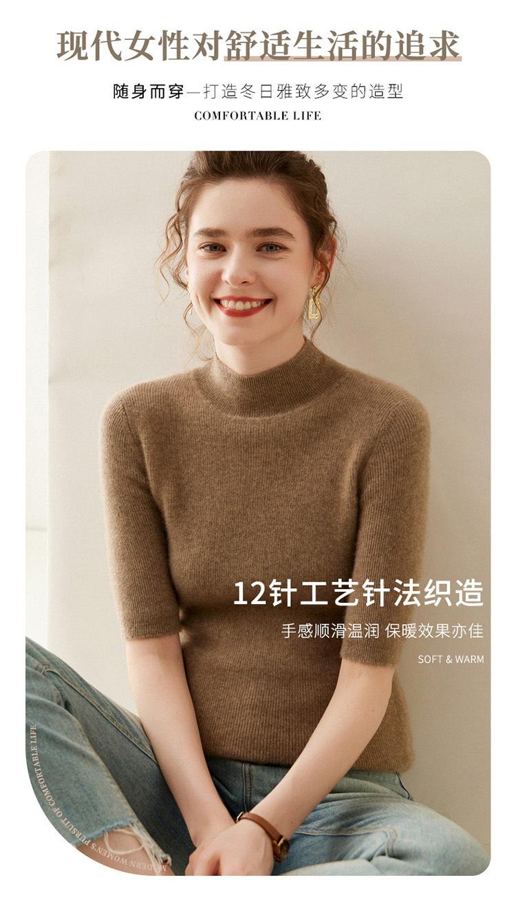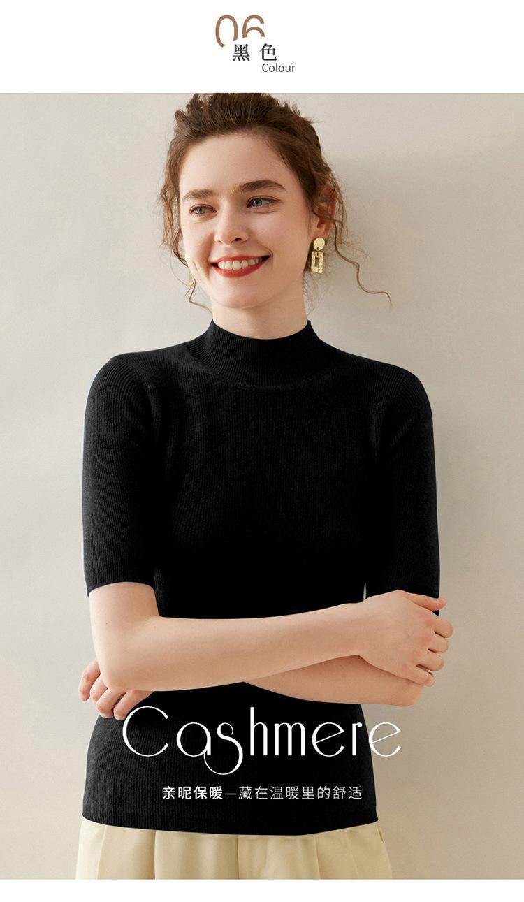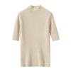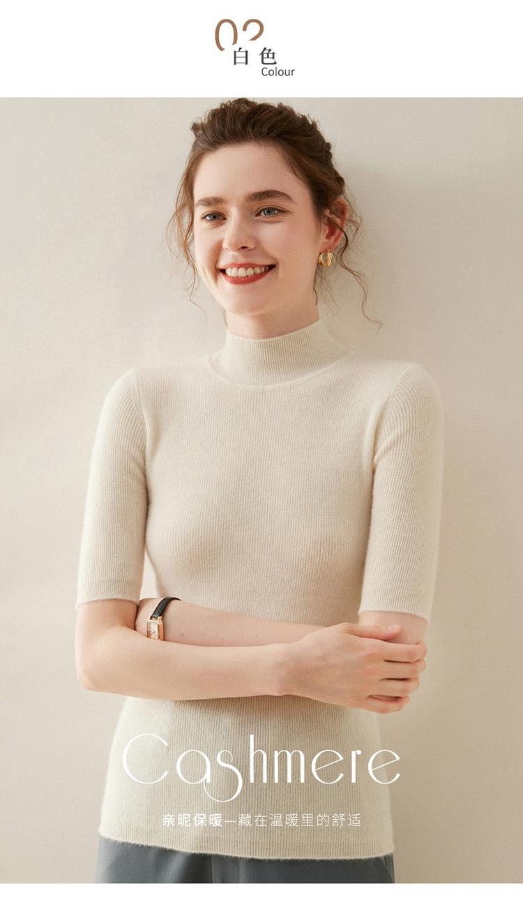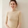 Otoño e Invierno Nuevo Estilo Medio Cuello Tortuga Canalé Ajustado Cachemira Tejido de Punto Ropa de Punto de Manga Media para Mujer Moda Versátil Top de Manga Tres Cuartos