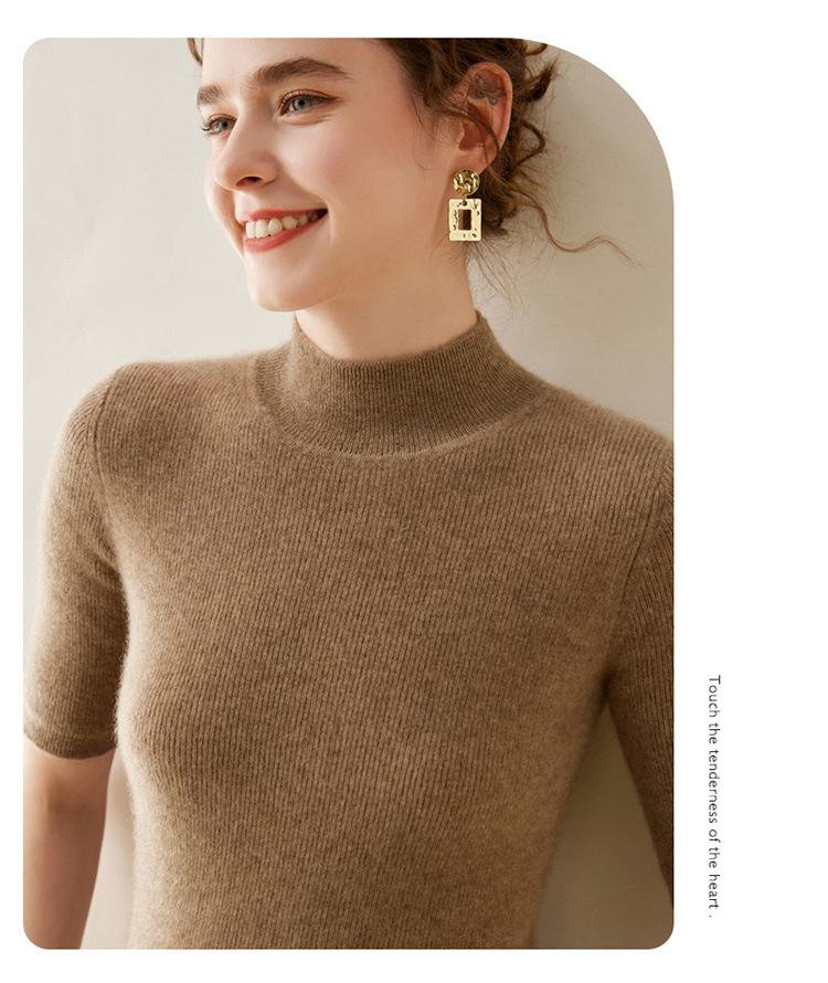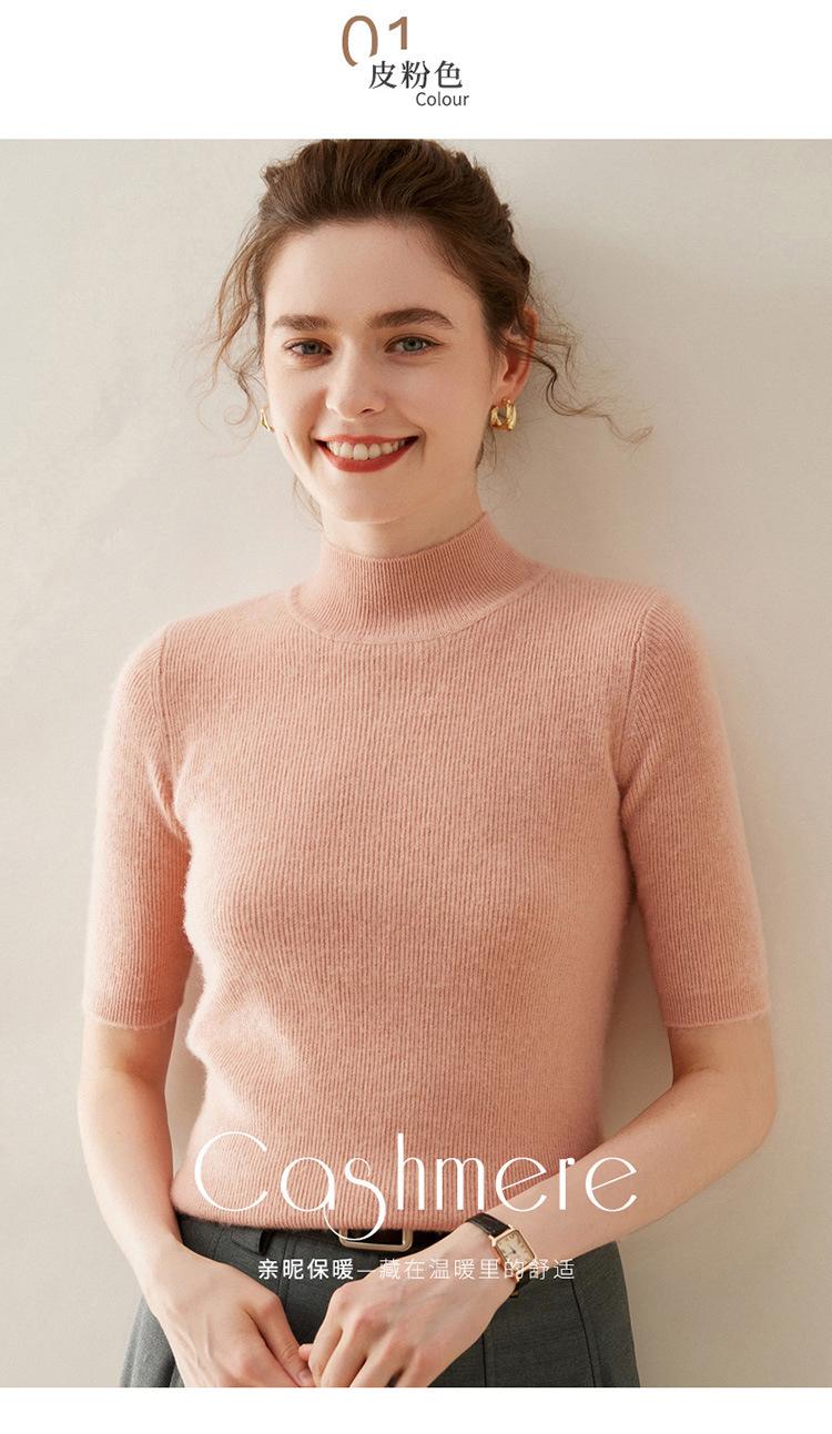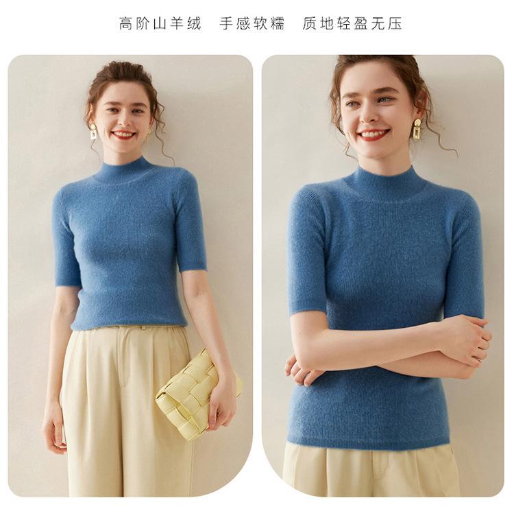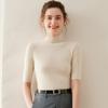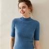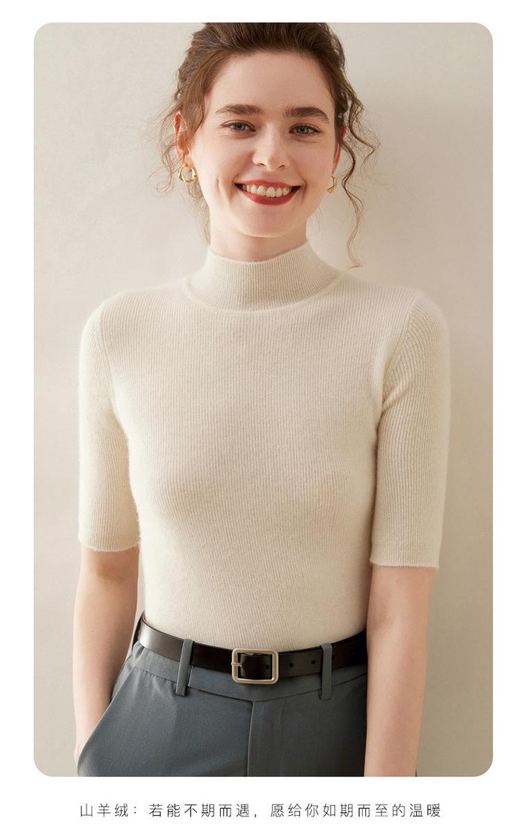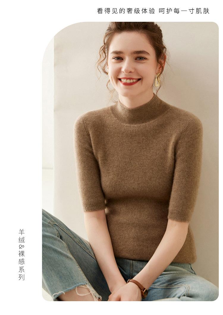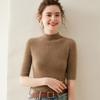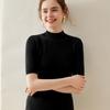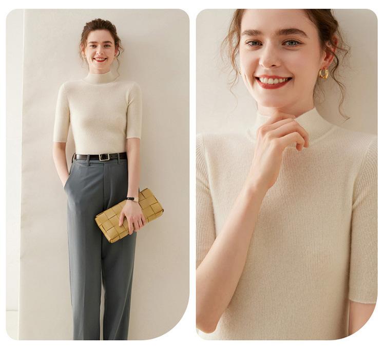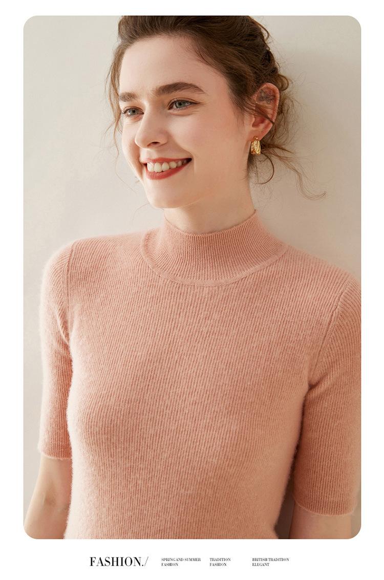 Otoño e Invierno Nuevo Estilo Medio Cuello Tortuga Canalé Ajustado Cachemira Tejido de Punto Ropa de Punto de Manga Media para Mujer Moda Versátil Top de Manga Tres Cuartos
