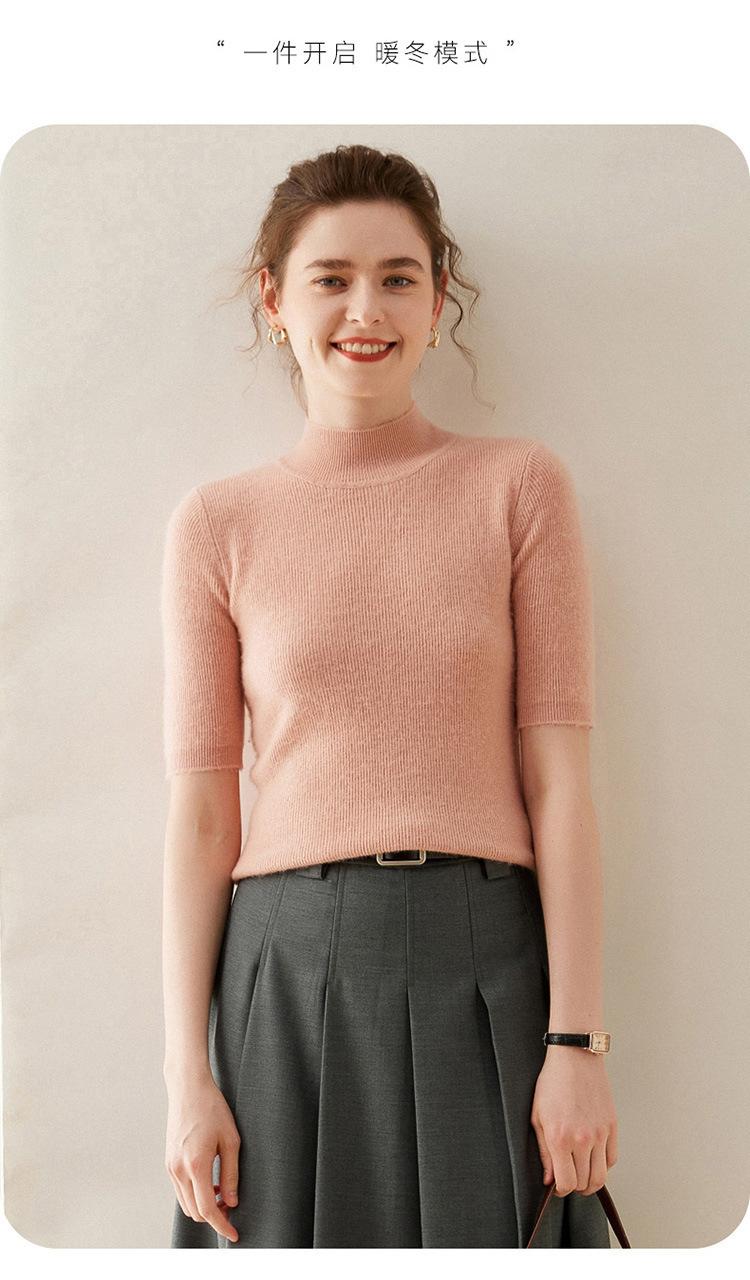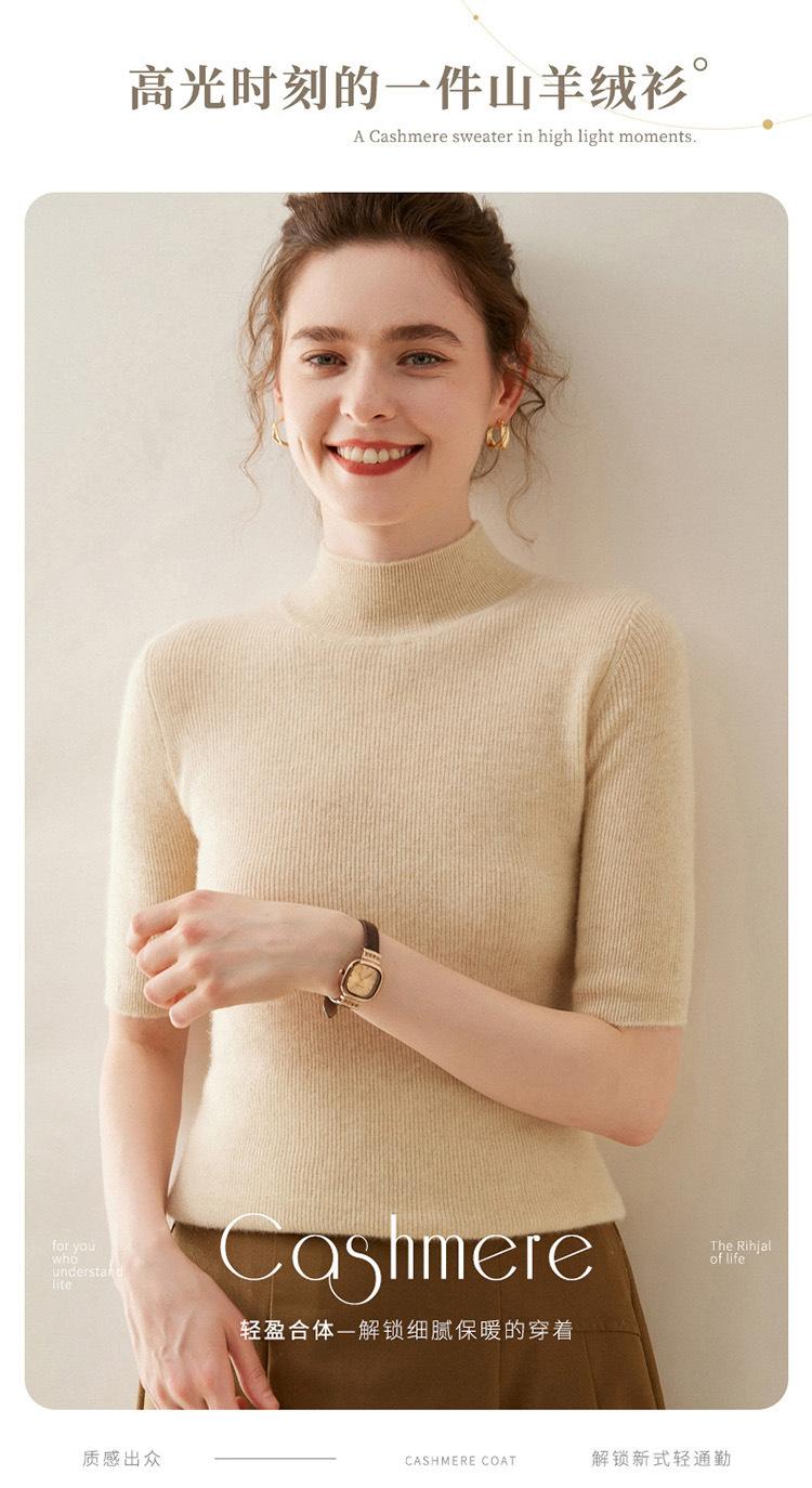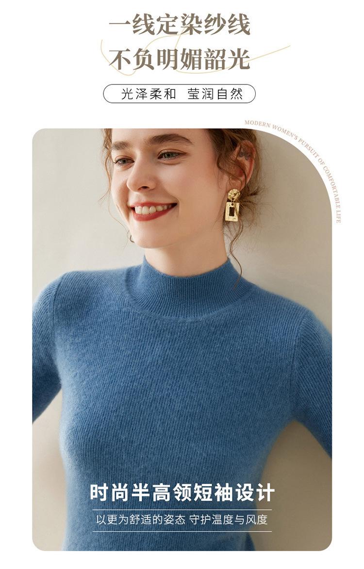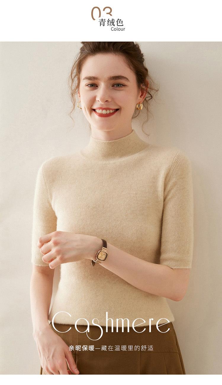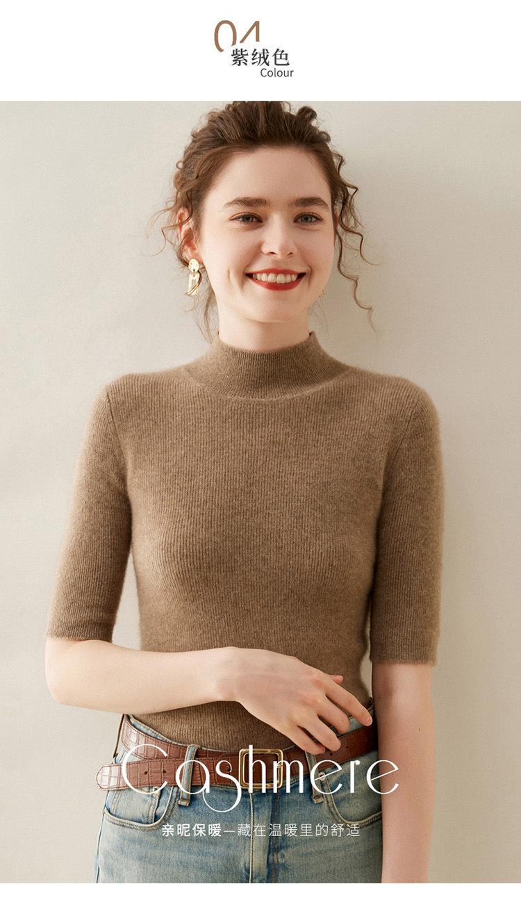 Otoño e Invierno Nuevo Estilo Medio Cuello Tortuga Canalé Ajustado Cachemira Tejido de Punto Ropa de Punto de Manga Media para Mujer Moda Versátil Top de Manga Tres Cuartos