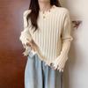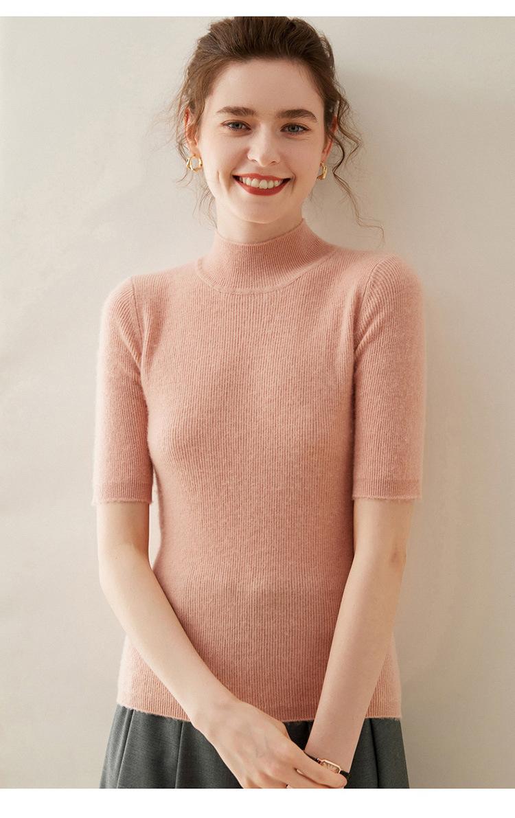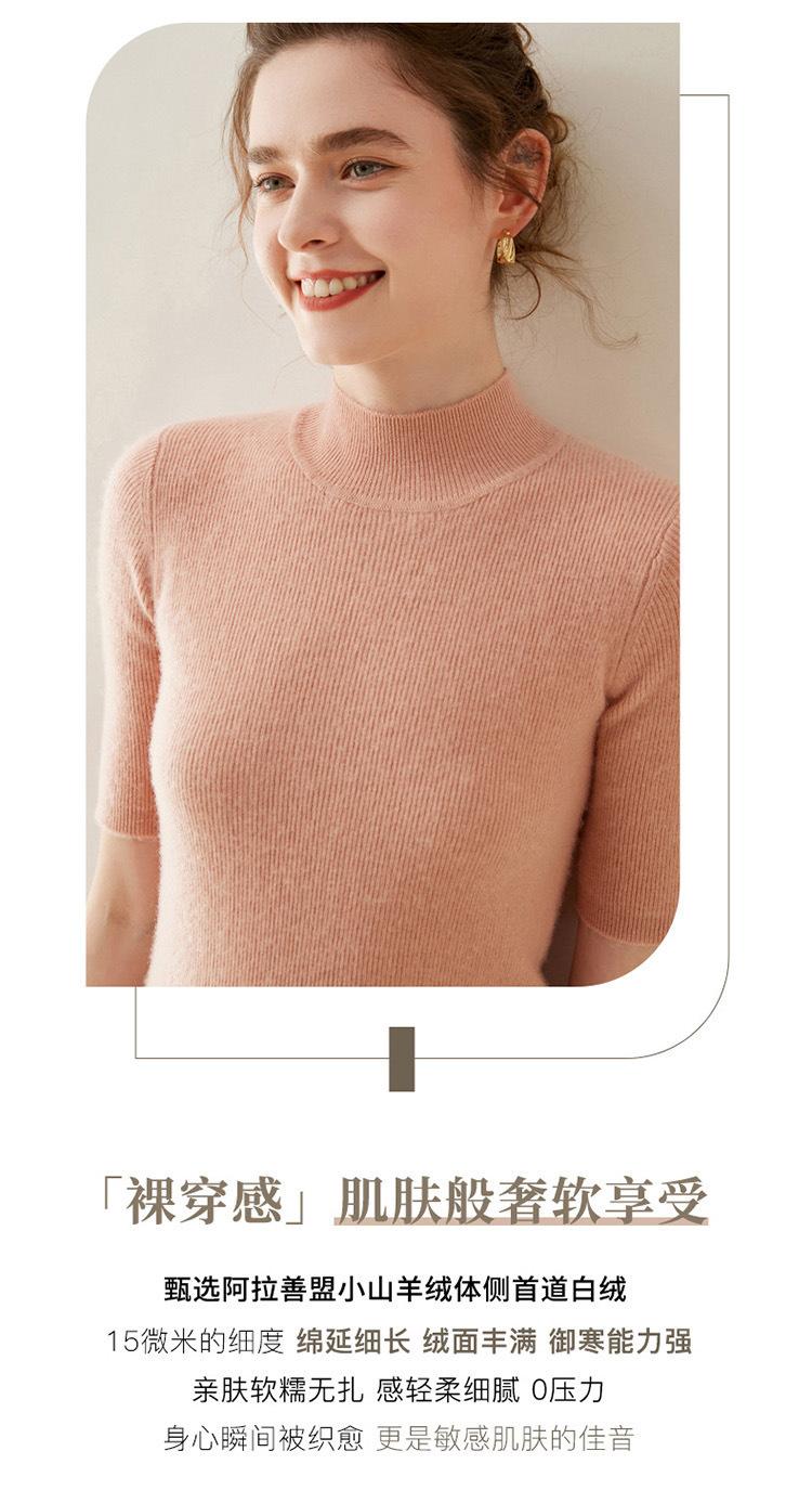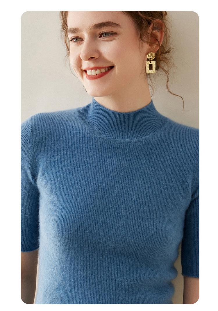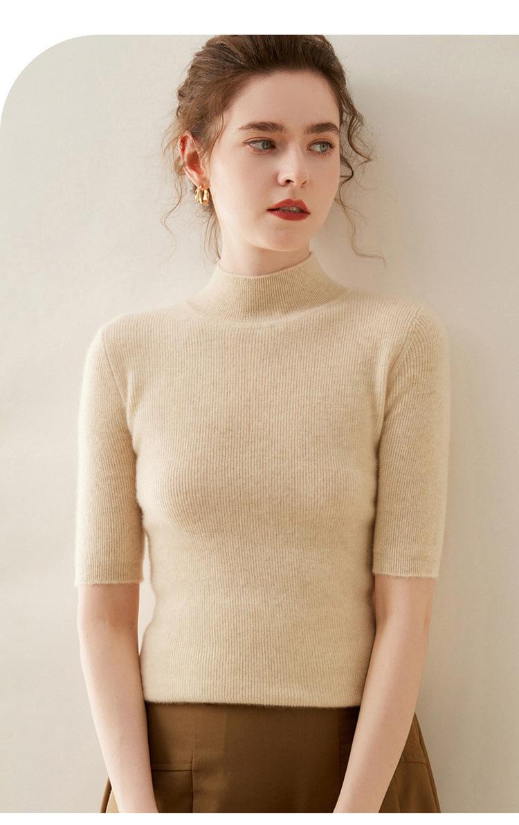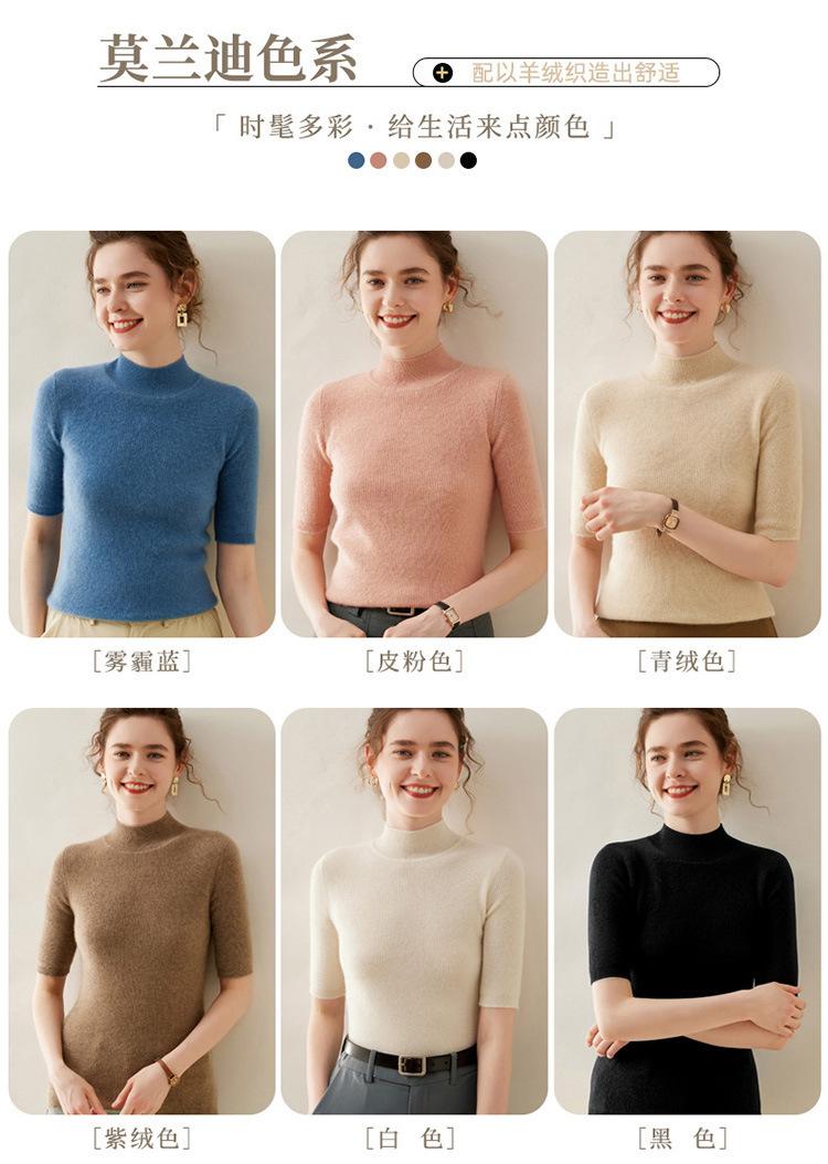 Otoño e Invierno Nuevo Estilo Medio Cuello Tortuga Canalé Ajustado Cachemira Tejido de Punto Ropa de Punto de Manga Media para Mujer Moda Versátil Top de Manga Tres Cuartos