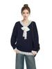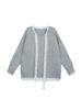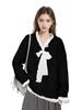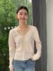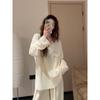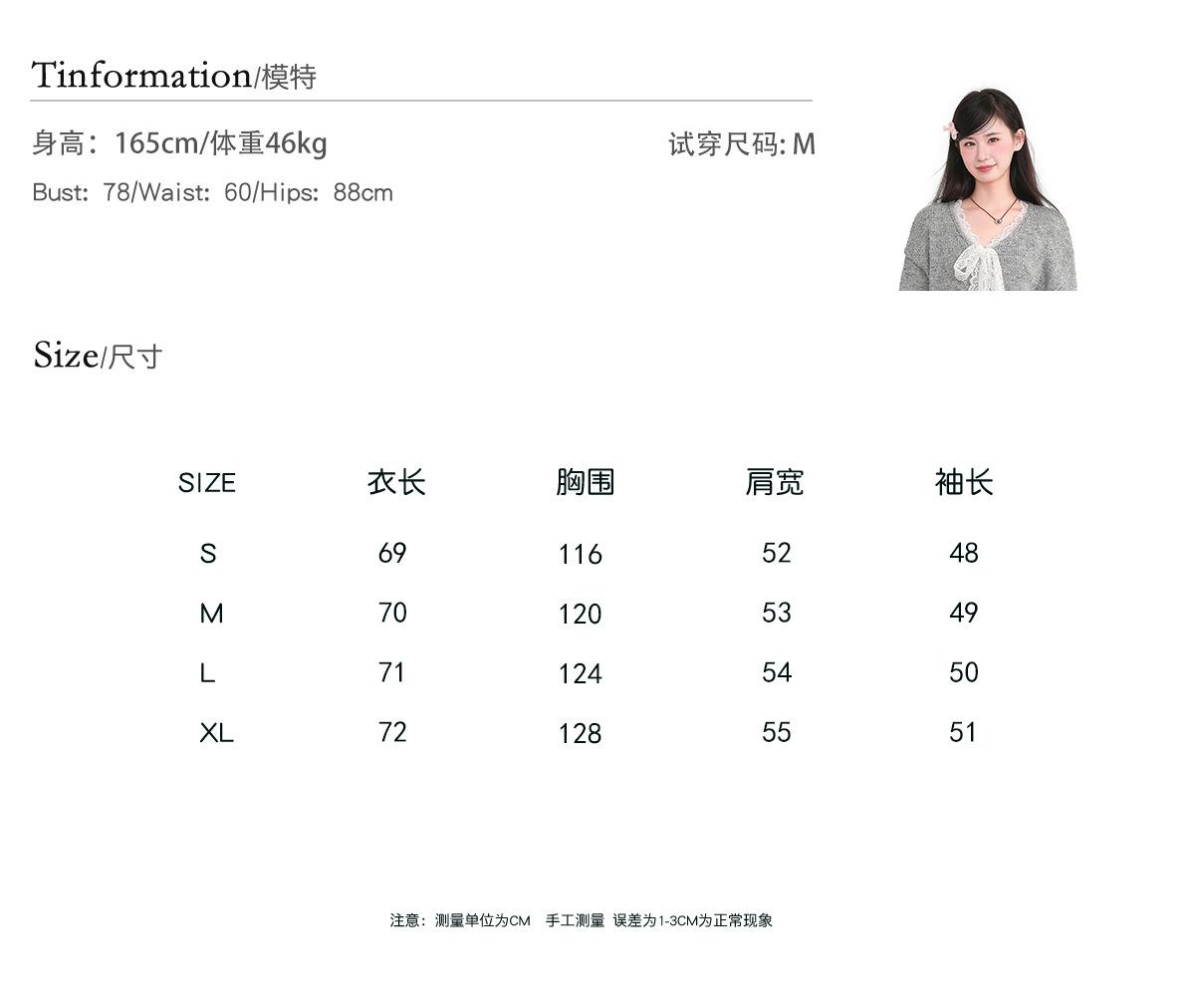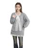 Suéter de dos piezas con cuello en V y encaje gris falso para mujer, suéter holgado y grueso de estilo perezoso para otoño e invierno.