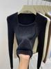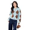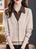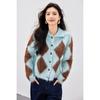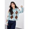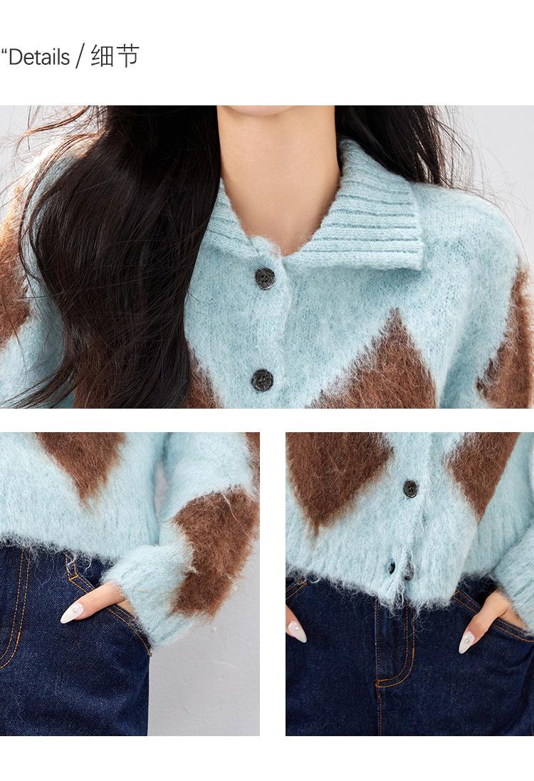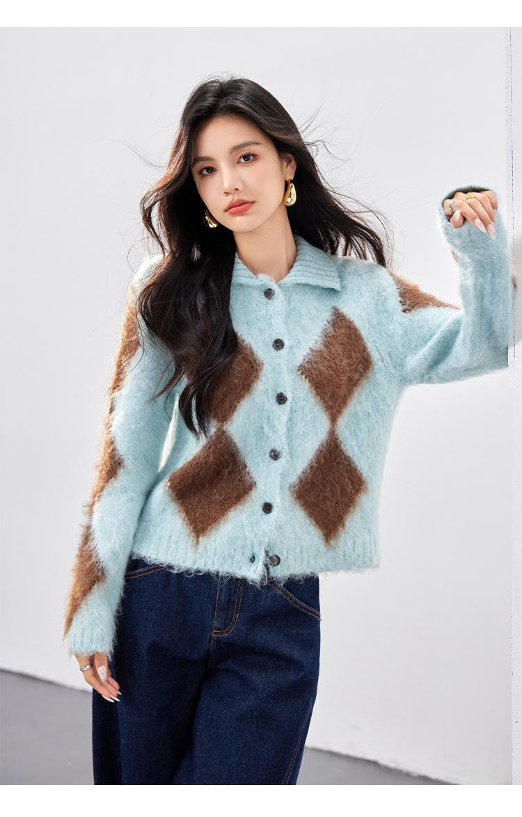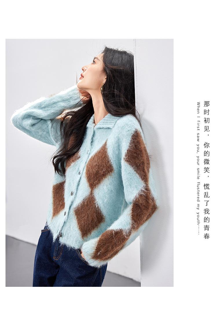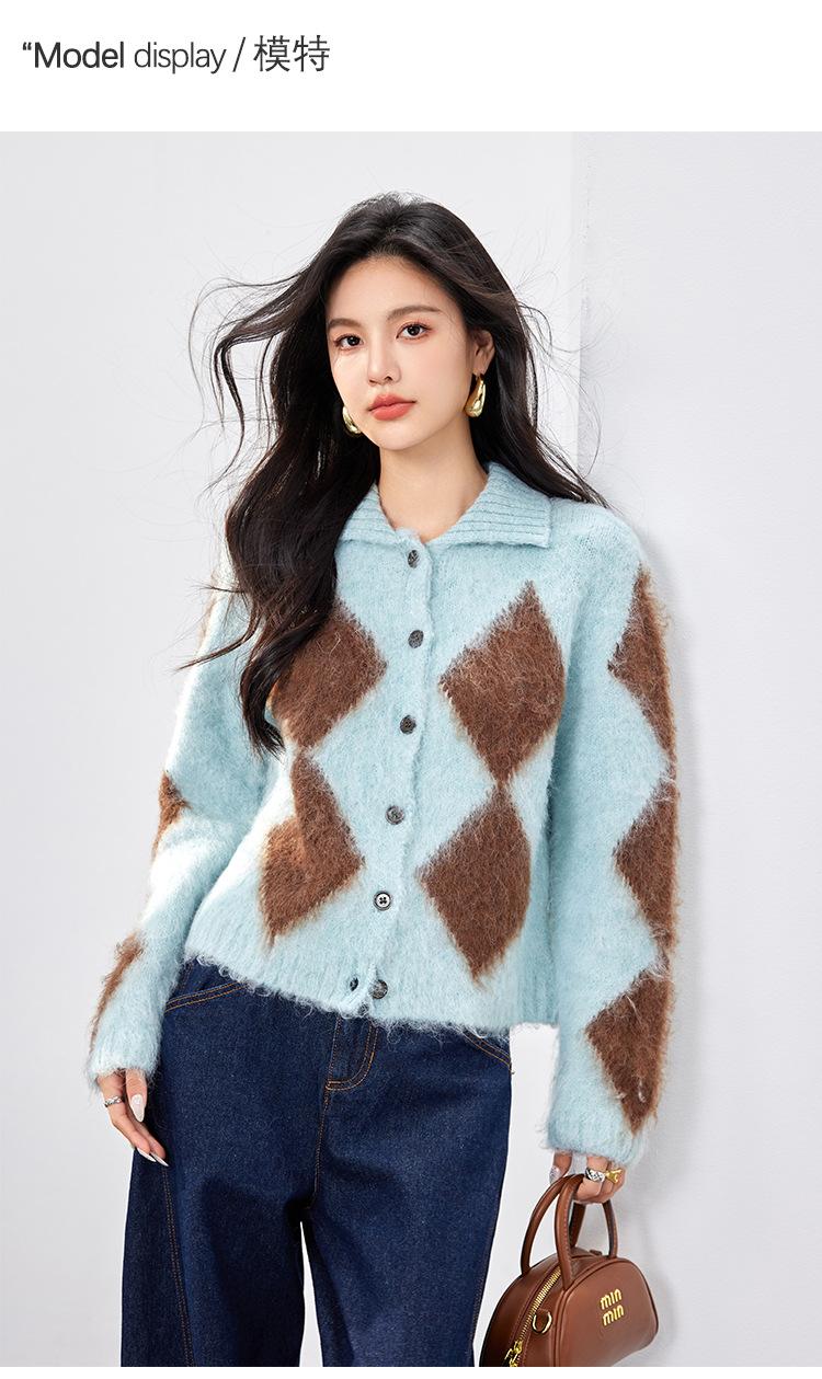 Nuevo suéter de lana cálido de contraste de alta gama para otoño e invierno 2024, cárdigan top de rombos retro francés para mujer