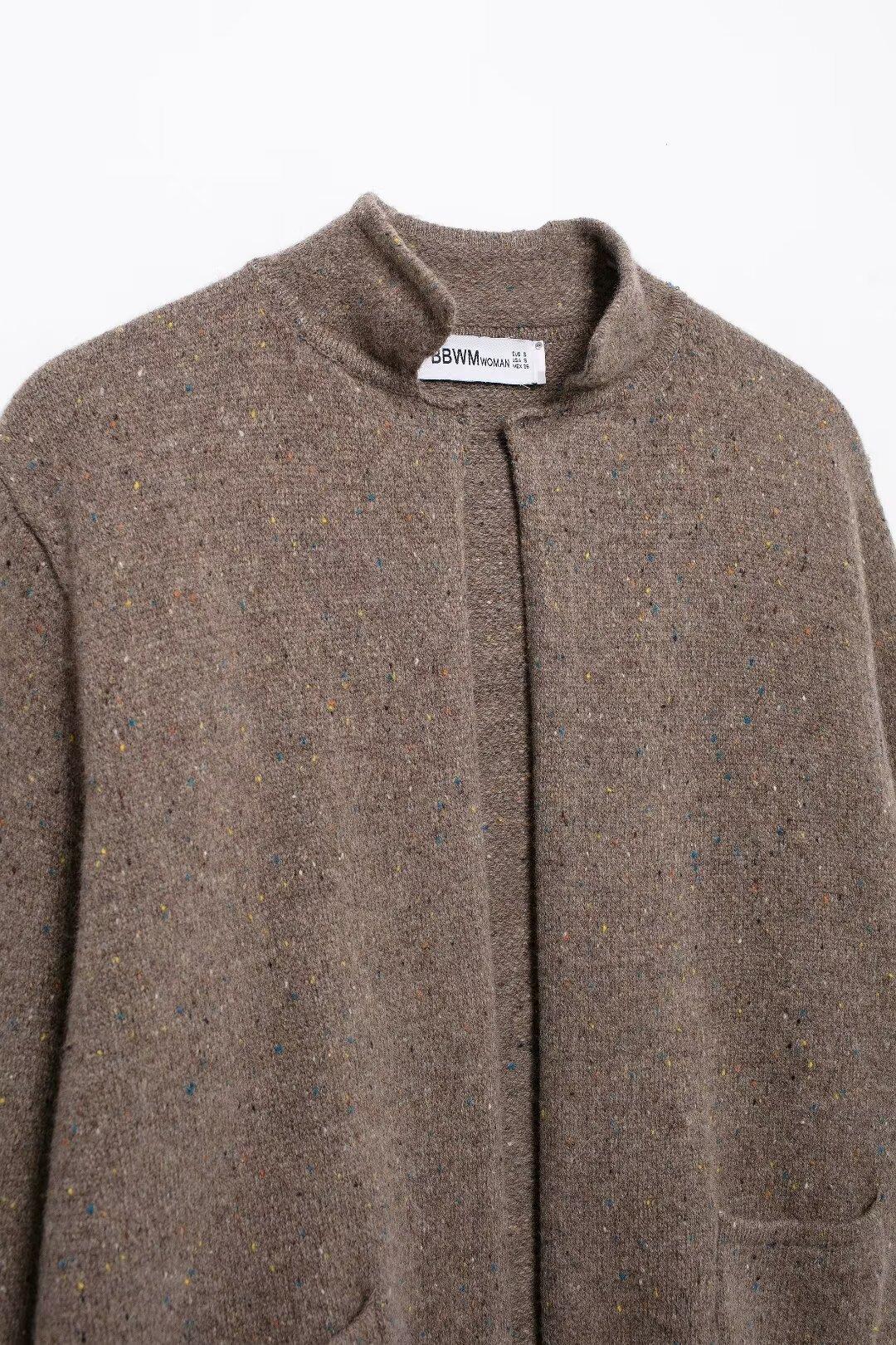 Chaqueta de traje de punto con cuello alto y moda urbana de otoño e invierno 2024 para mujer europea y americana de comercio exterior transfronterizo de Amazon