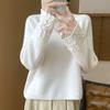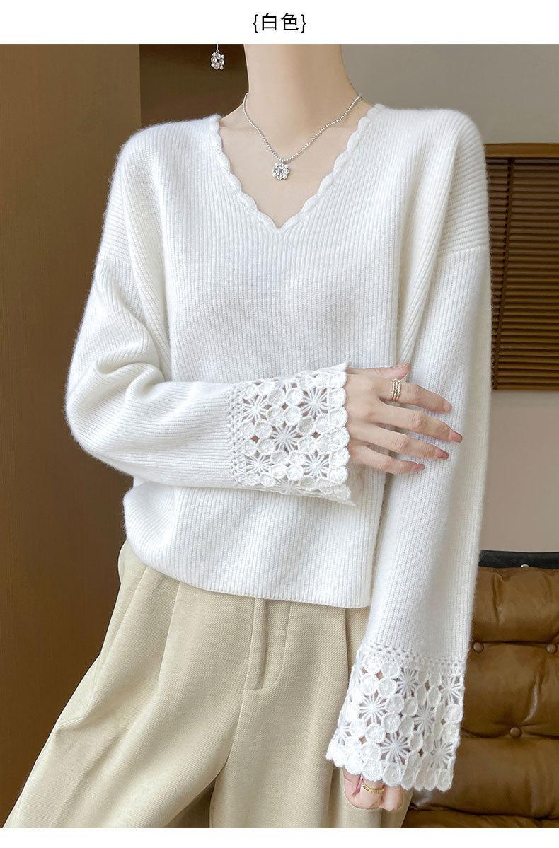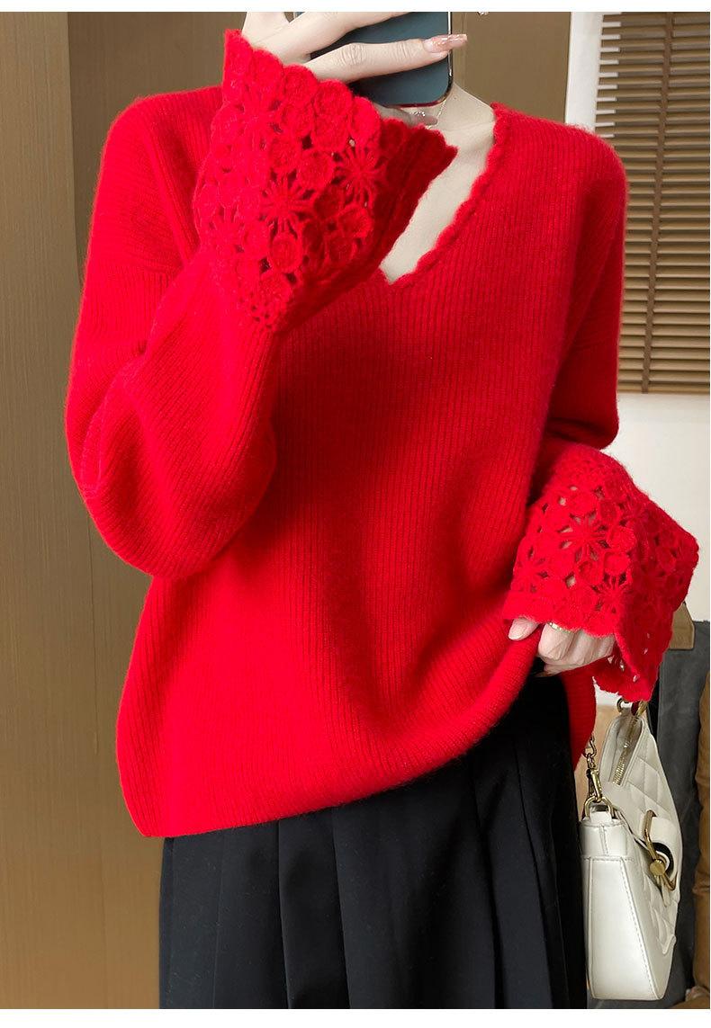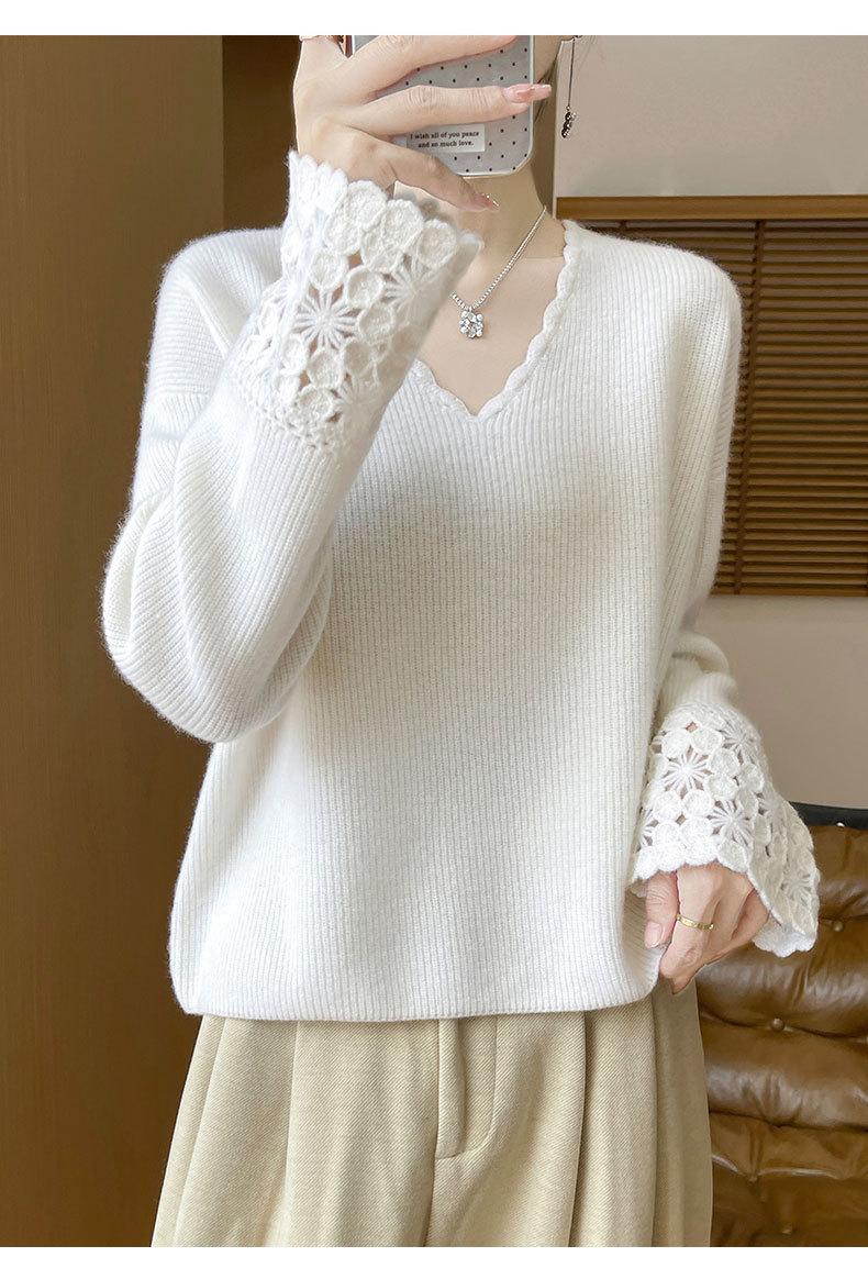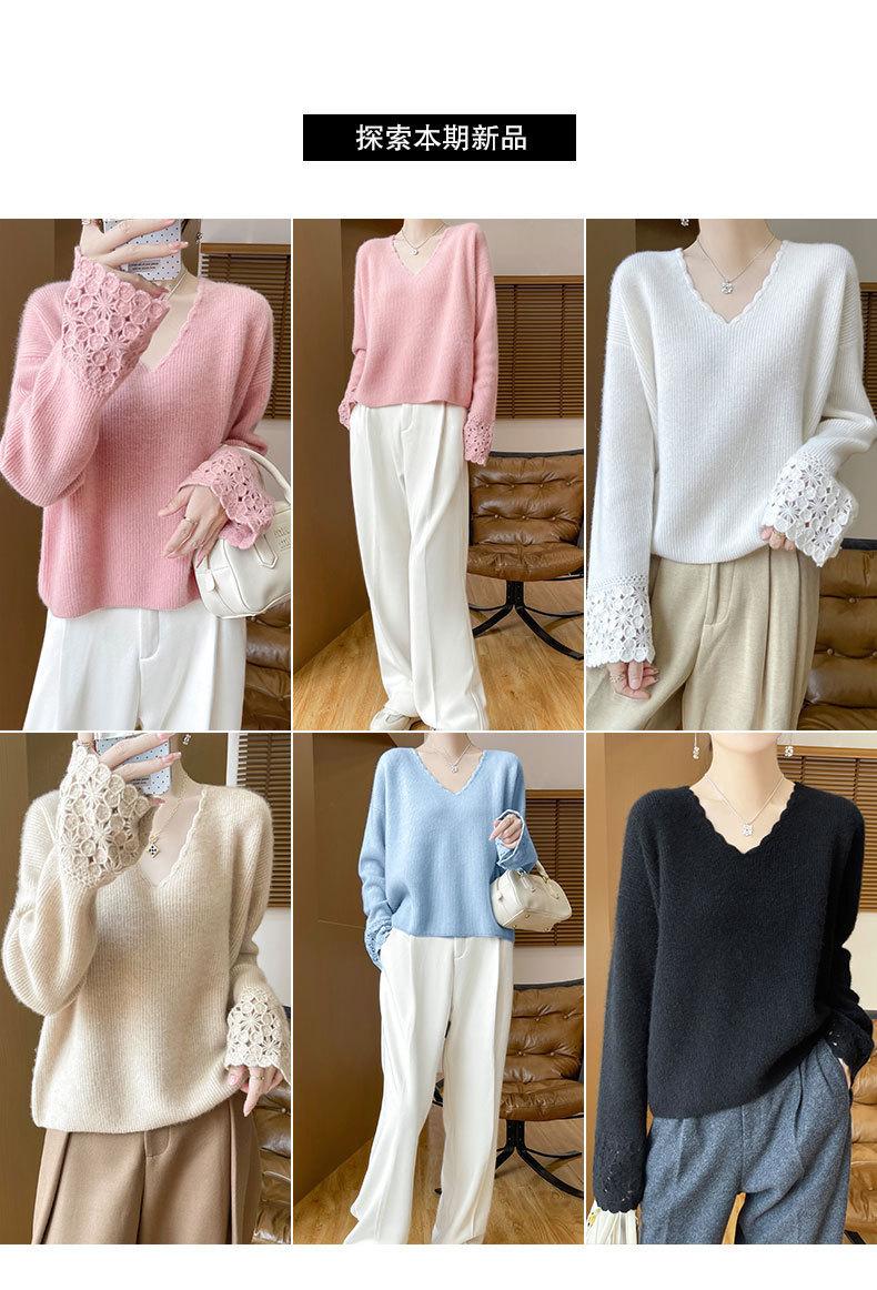Suéter de lana calado de primavera y otoño para mujer, con cuello en V, manga larga, estilo holgado, elegante, ajustado, holgado, que cubre el vientre, suéter de cachemira que combina con todo.