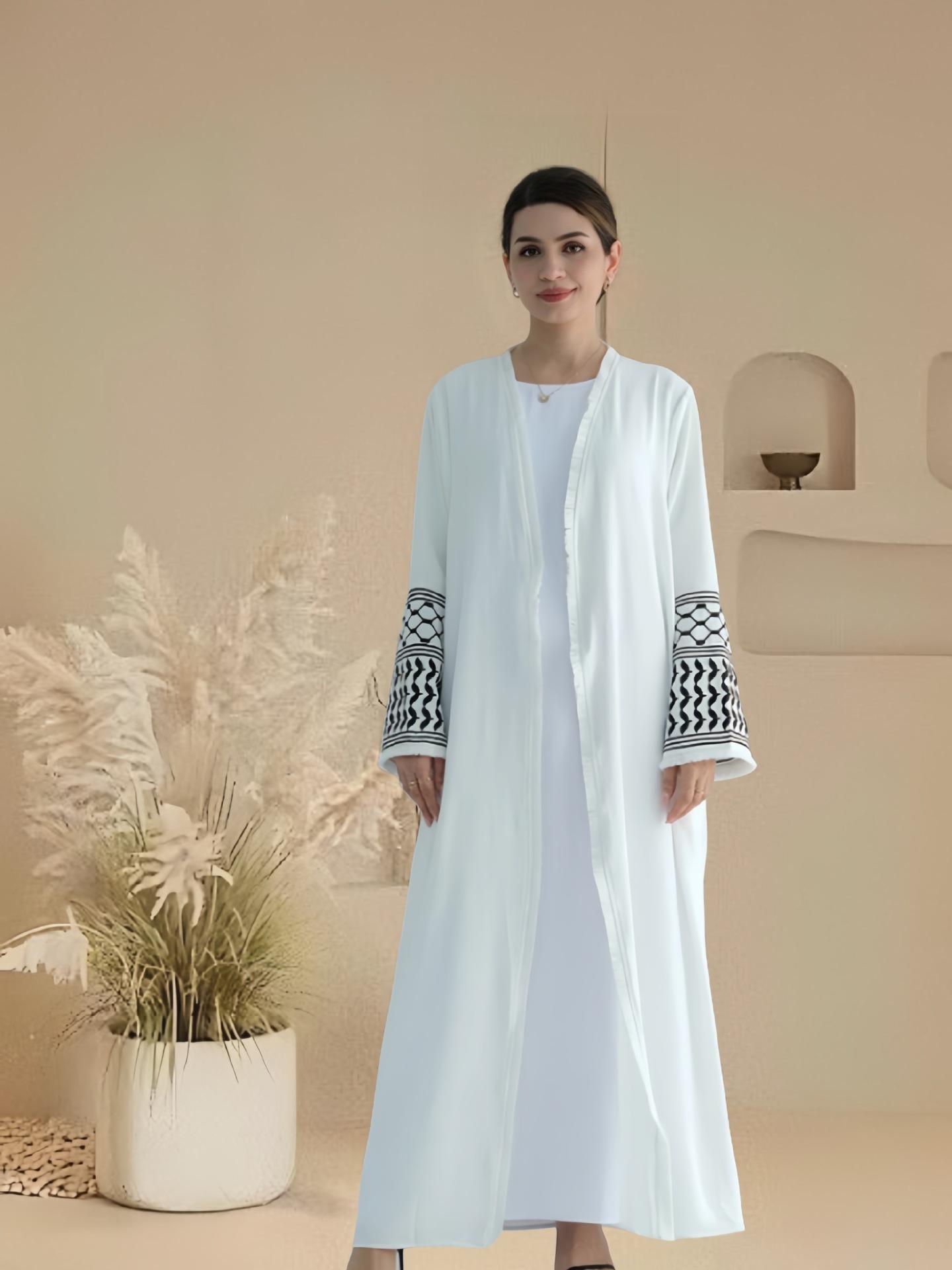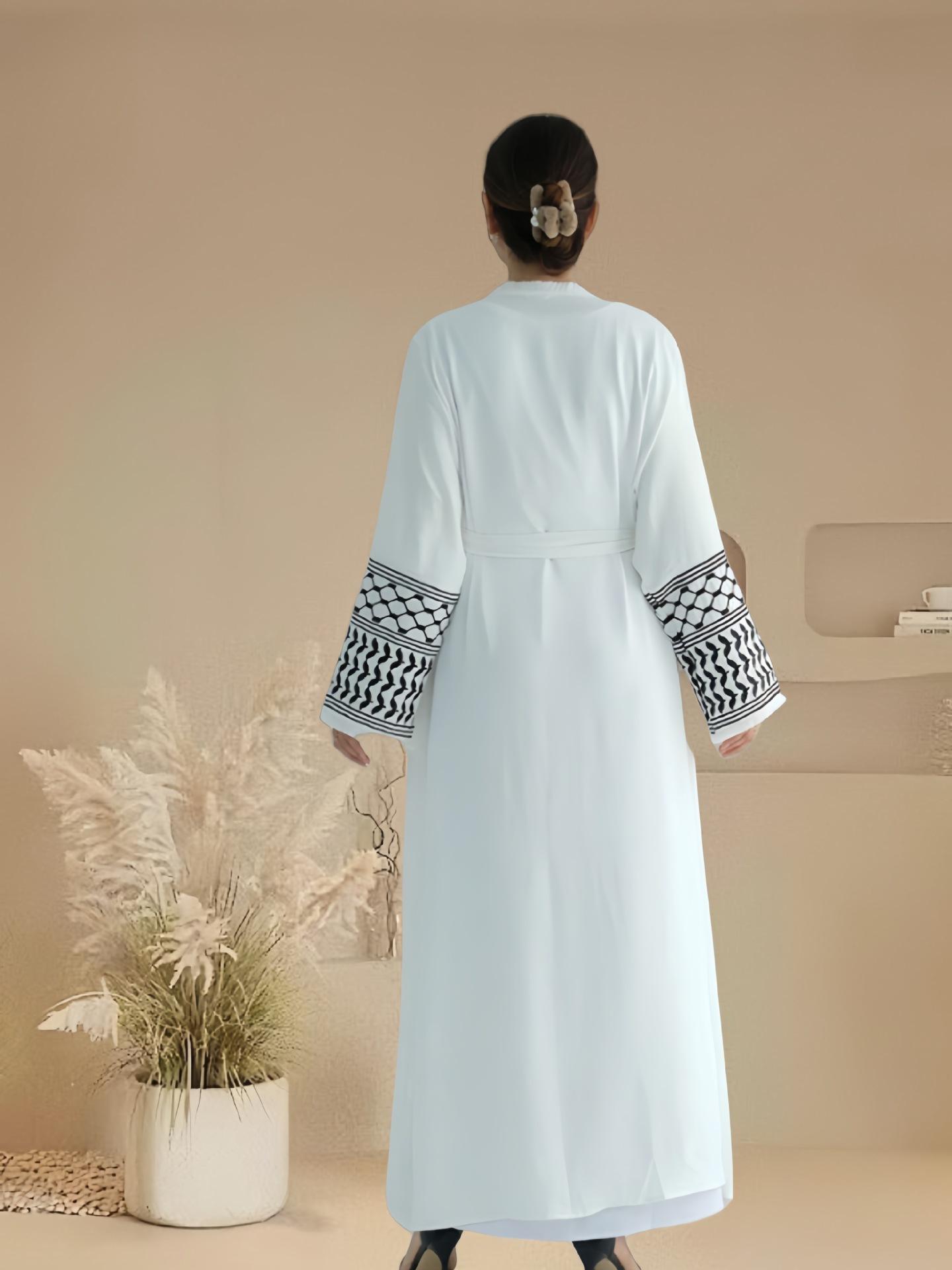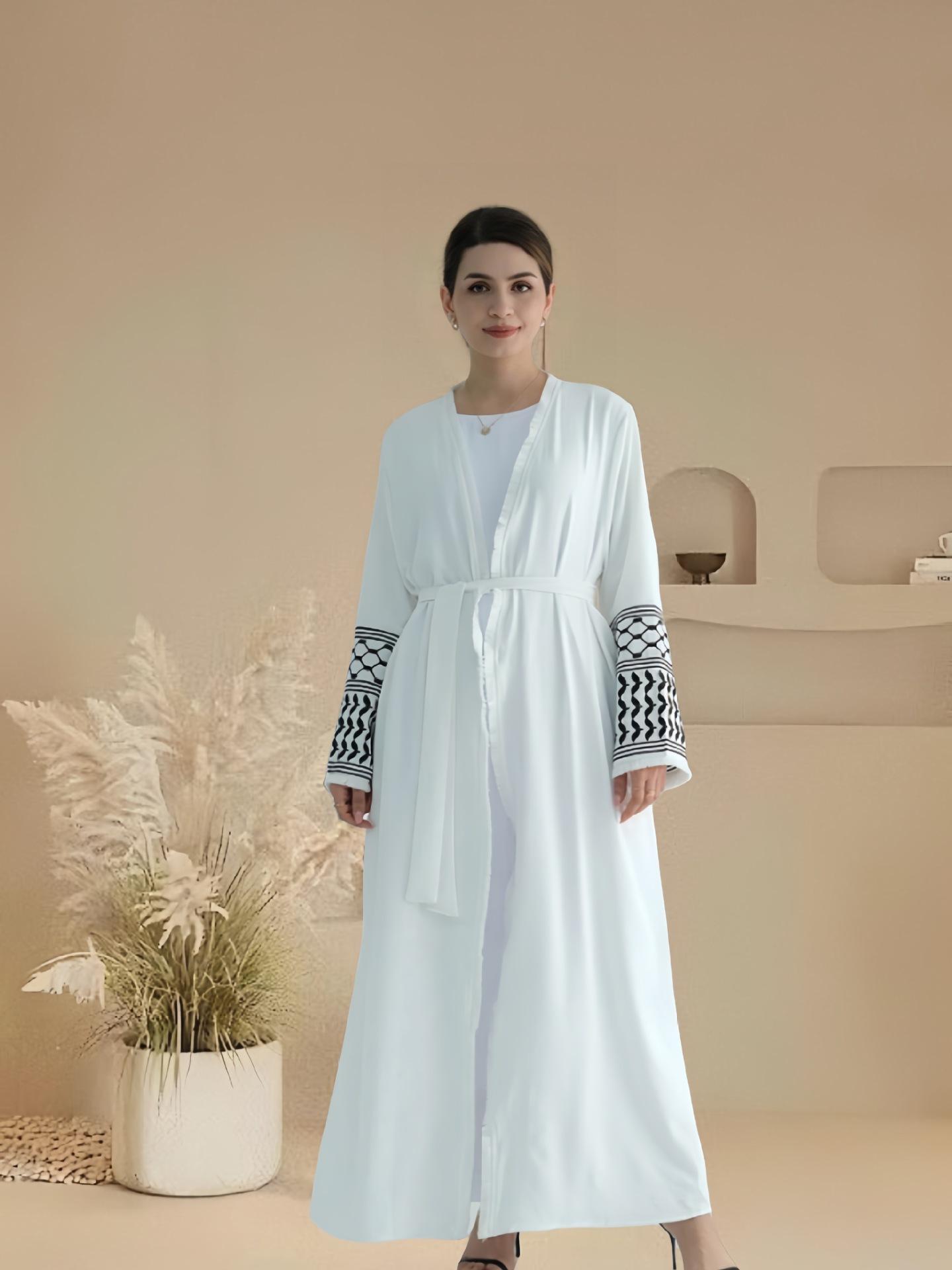 Vestido musulmán de Oriente Medio con bordado sencillo y contraste de colores para mujer, nuevo estilo de invierno 2024, cárdigan con cinturón distintivo