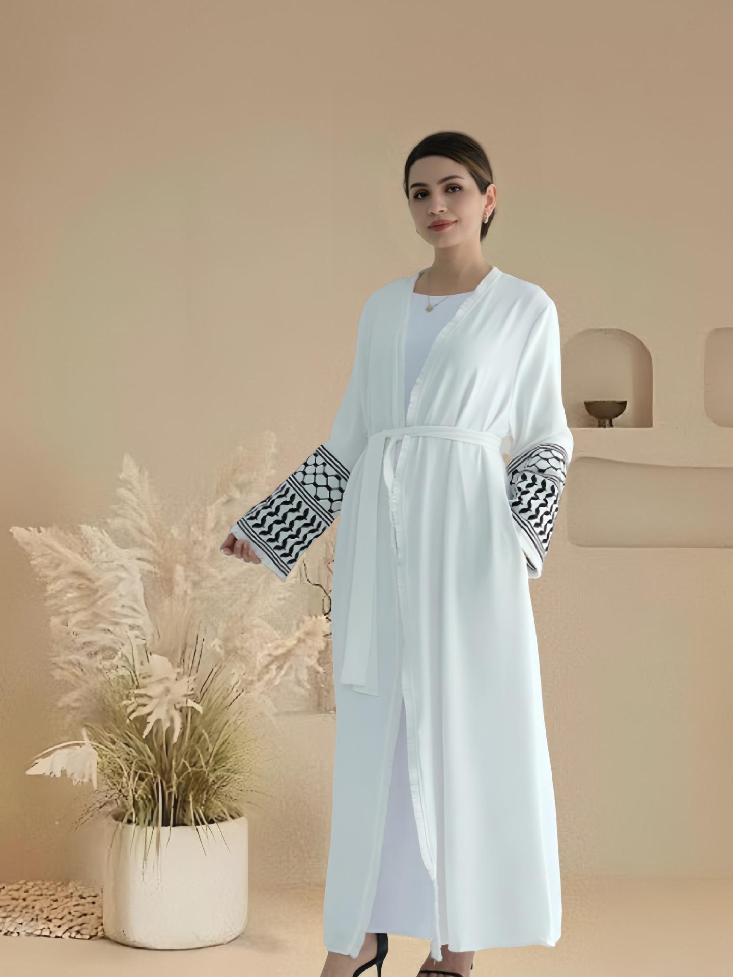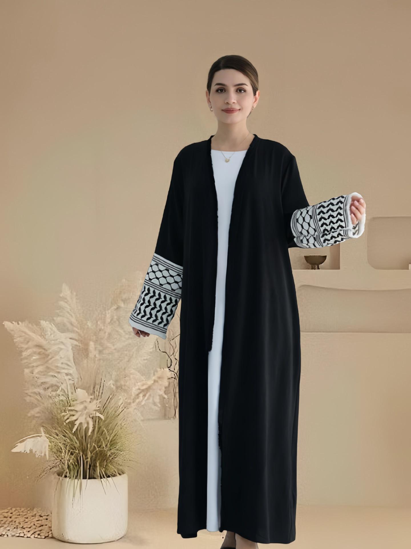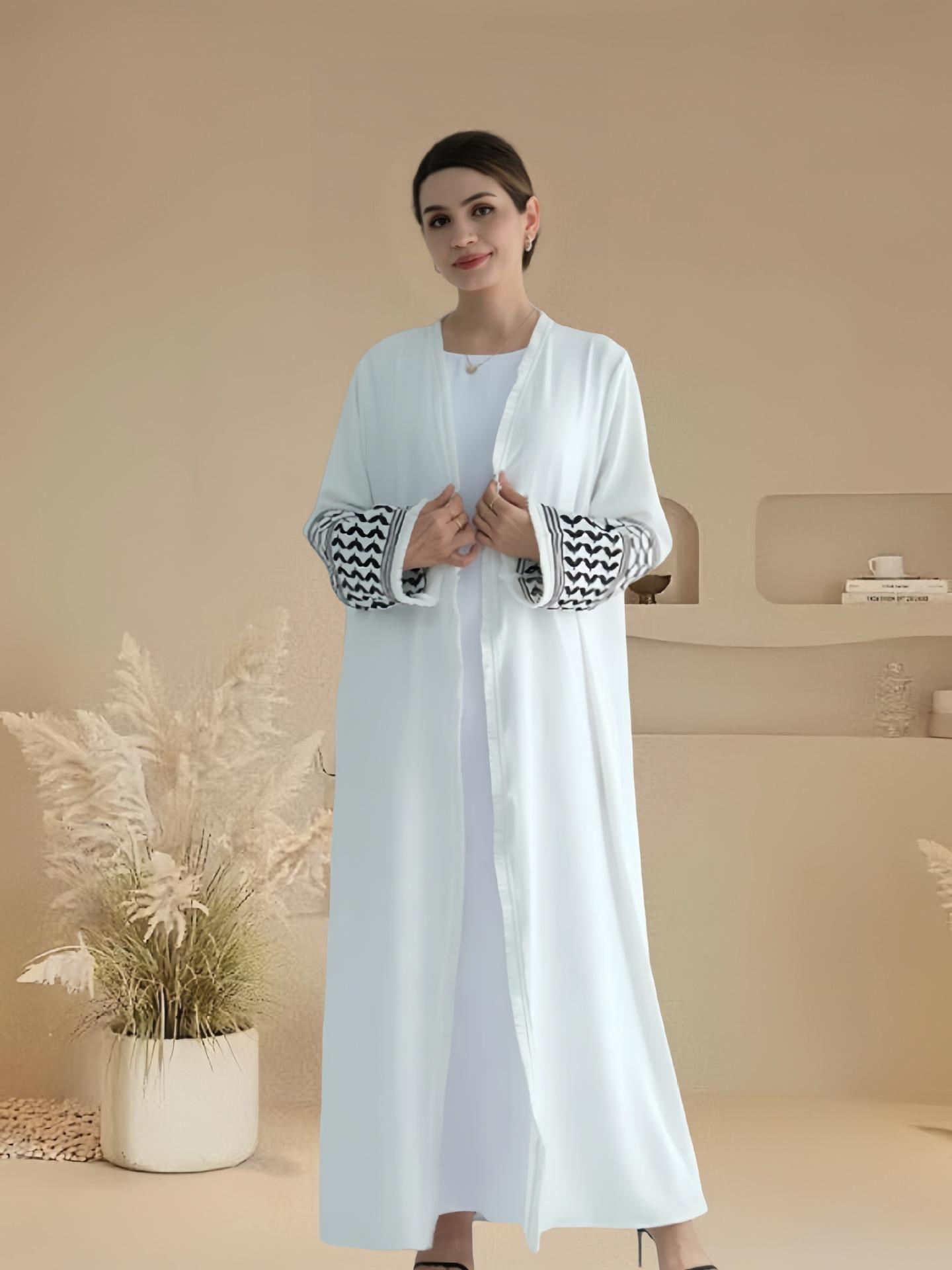 Vestido musulmán de Oriente Medio con bordado sencillo y contraste de colores para mujer, nuevo estilo de invierno 2024, cárdigan con cinturón distintivo