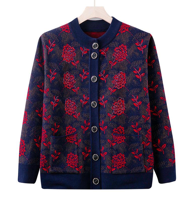Ropa de primavera para personas de mediana edad y ancianos, suéter de abuela, abrigo, 60 70, madre, abrigo grueso con forro polar, cárdigan para anciana
