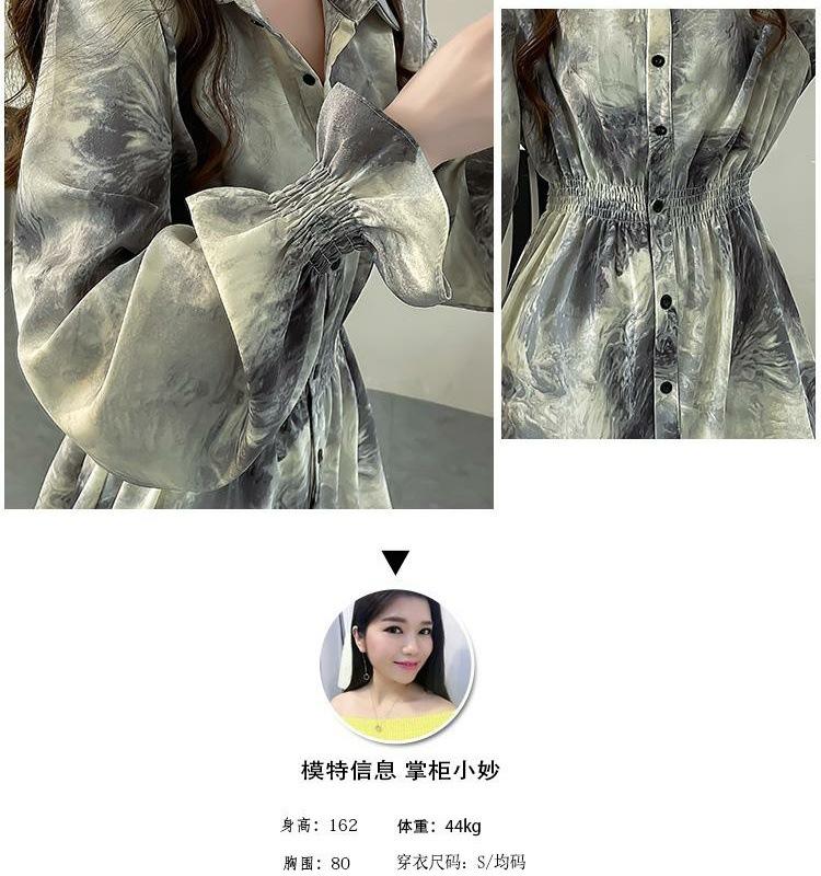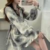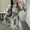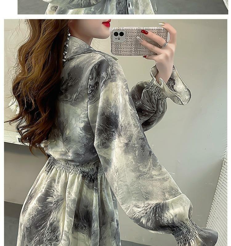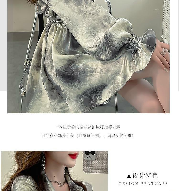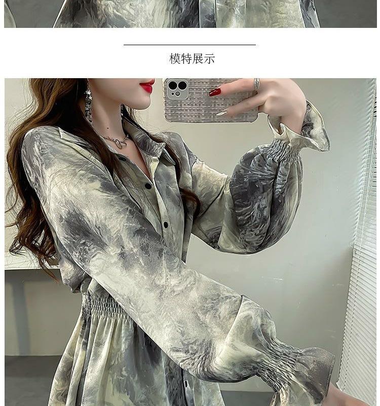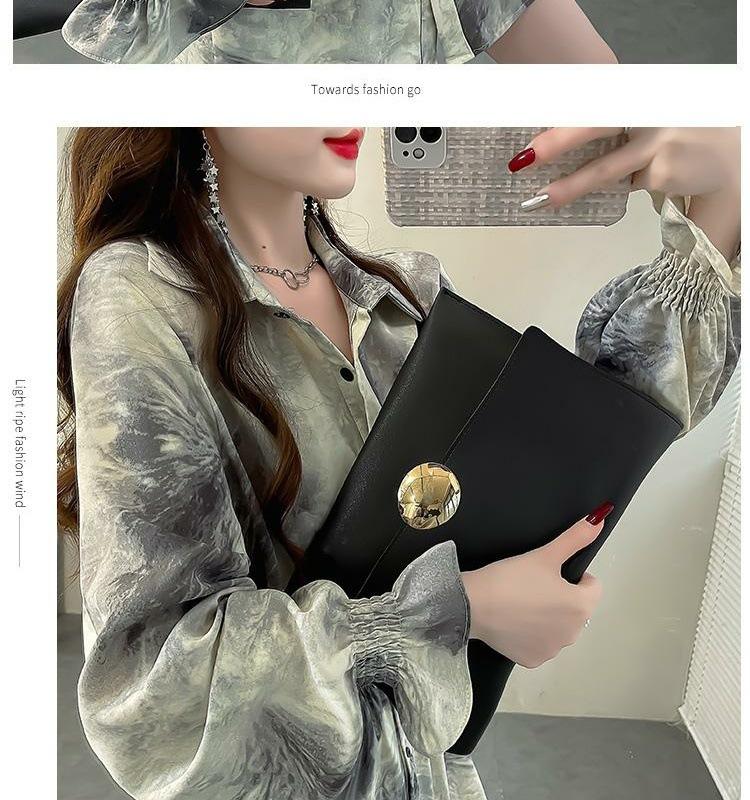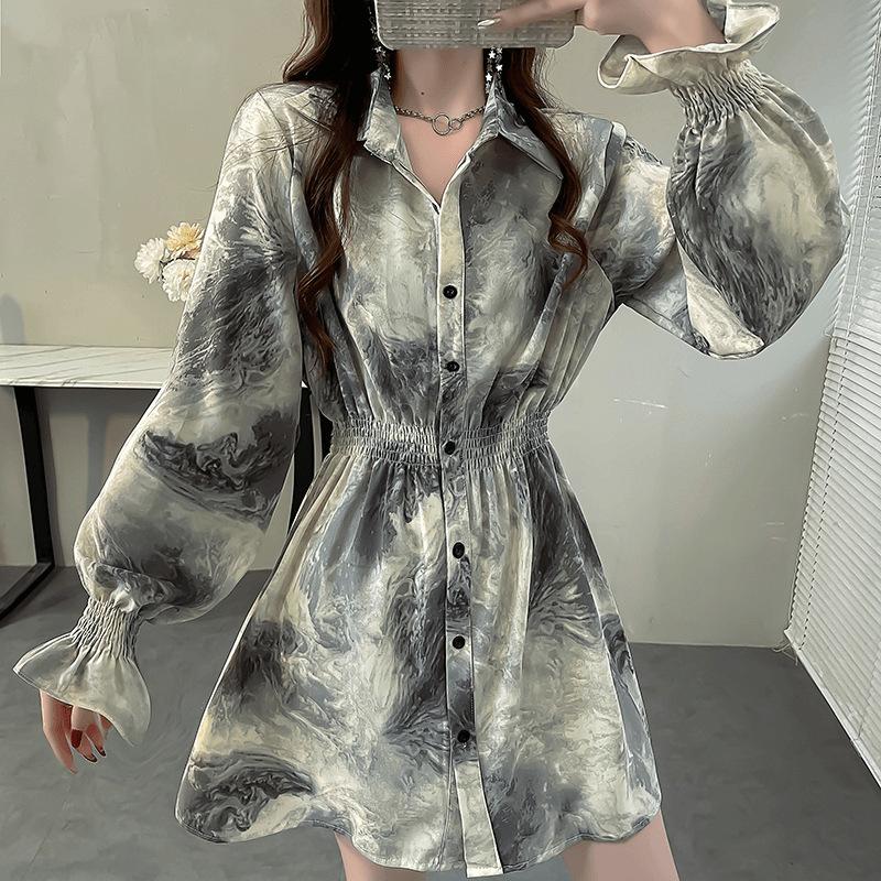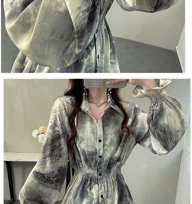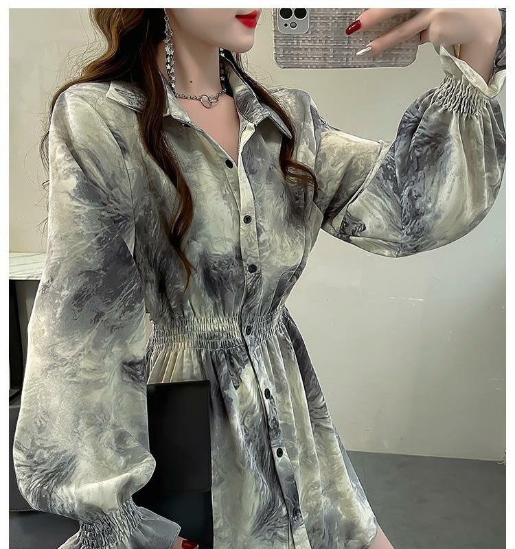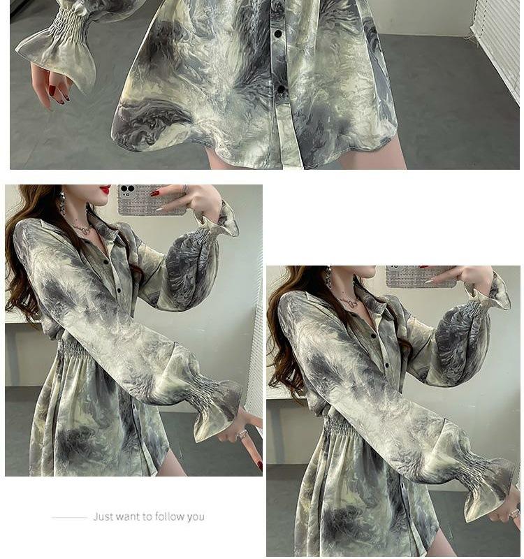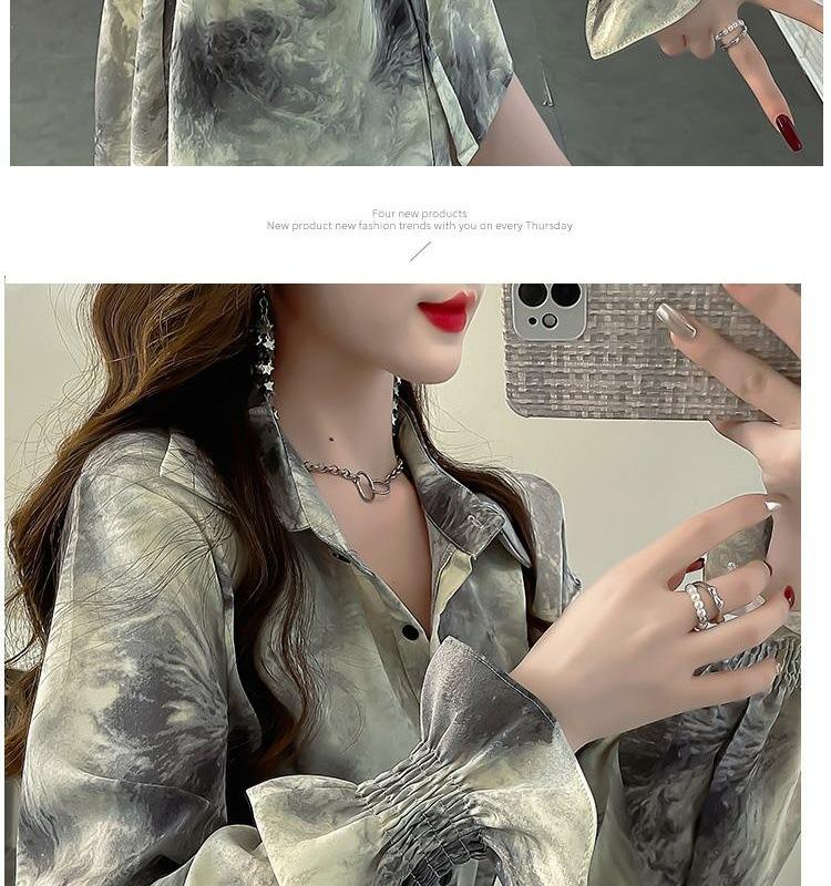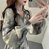 Camisa vintage de manga larga con solapa y estampado degradado para mujer, estilo cool, para otoño