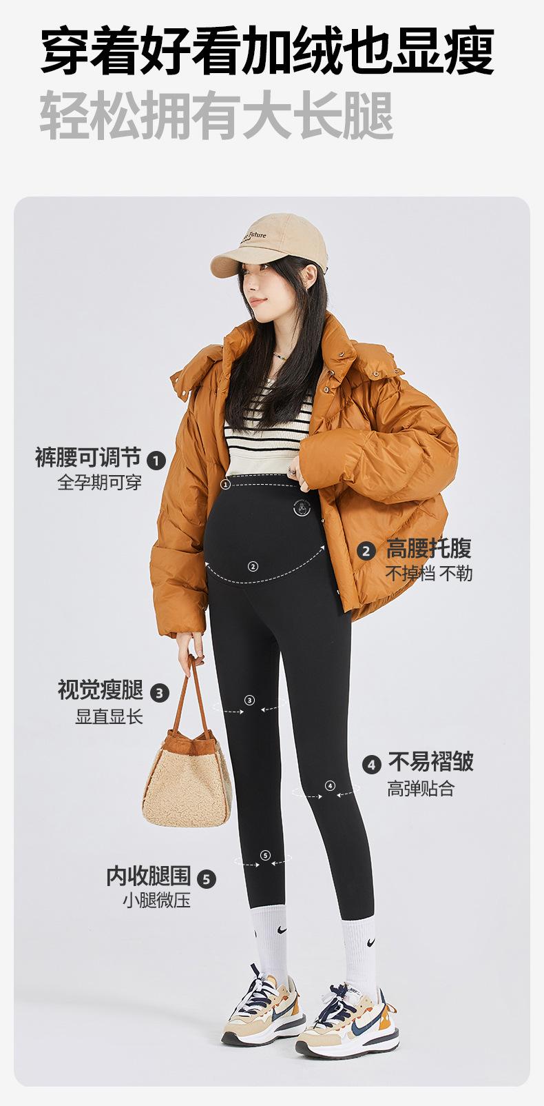 Pantalones de Invierno Cálidos para Mujeres Embarazadas Nuevos Leggings Gruesos con Forro Polar para Apoyo del Vientre Tallas Grandes Ropa Exterior Pantalones de Tiburón de Alta Elasticidad Pantalones de Yoga