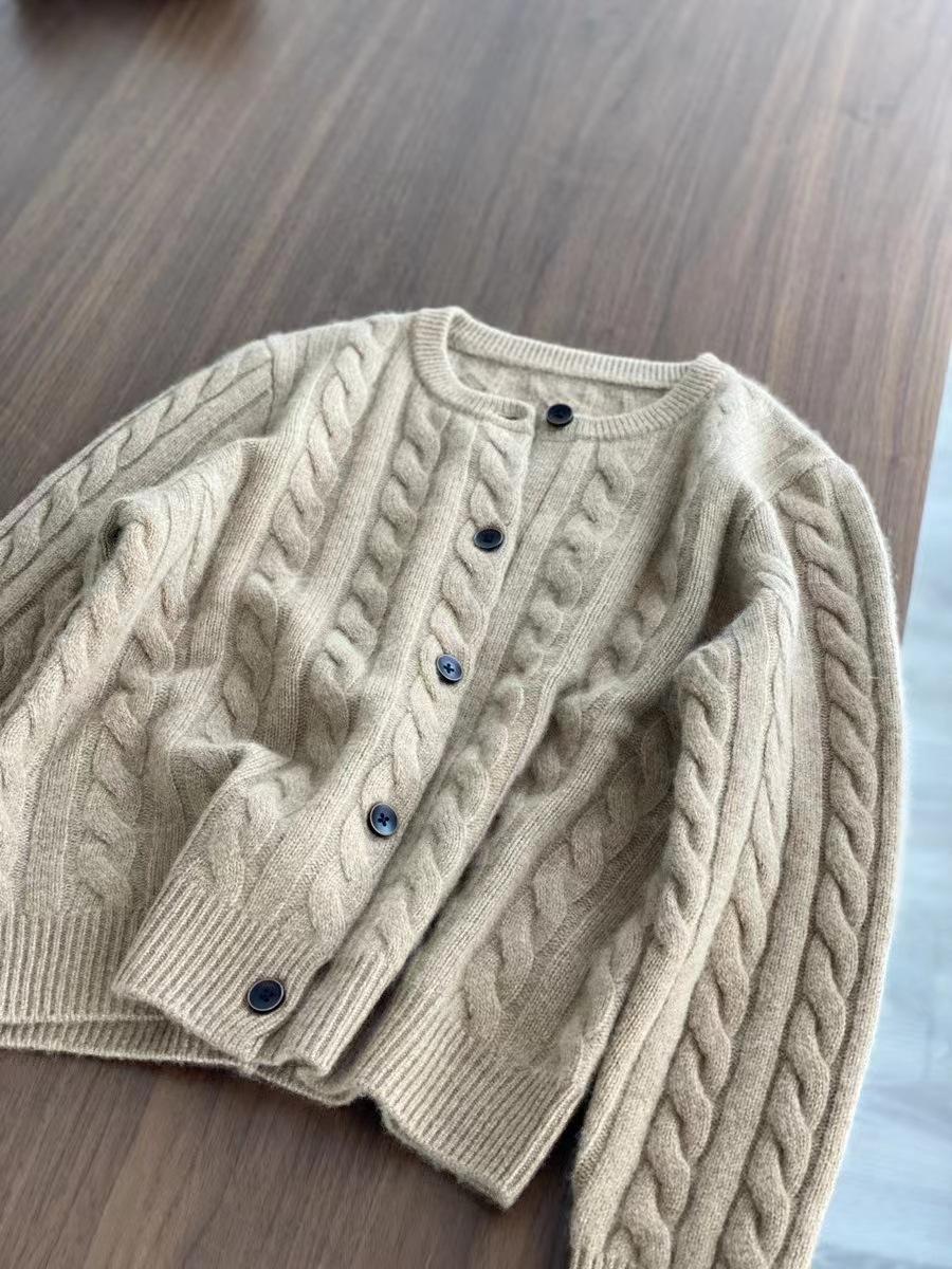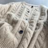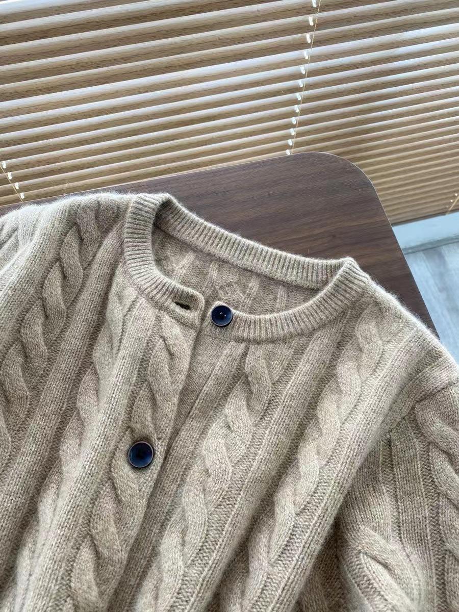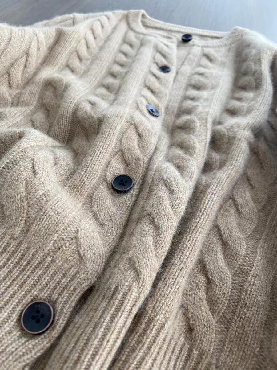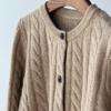Cárdigan de lana gruesa para mujer, cuello redondo, suéter grueso que combina con todo, chaqueta de punto de cachemira suelta con flores retorcidas y felpa