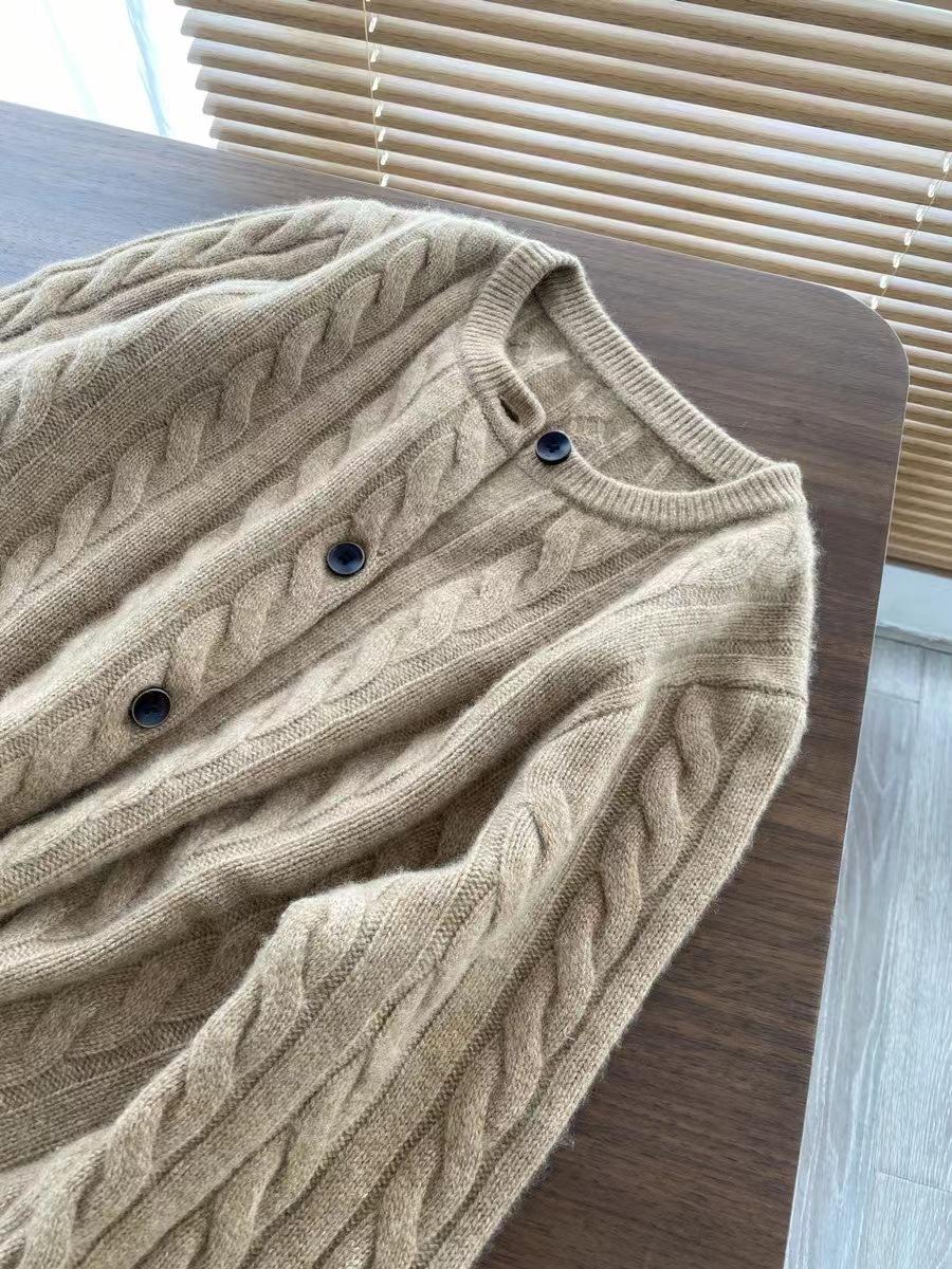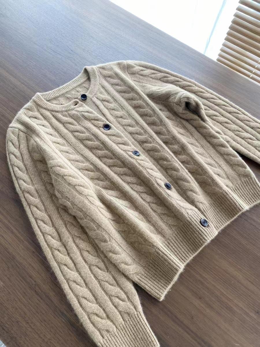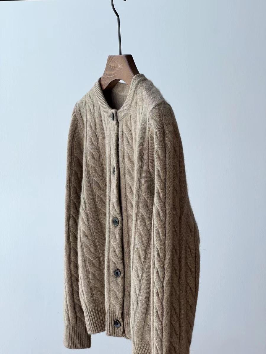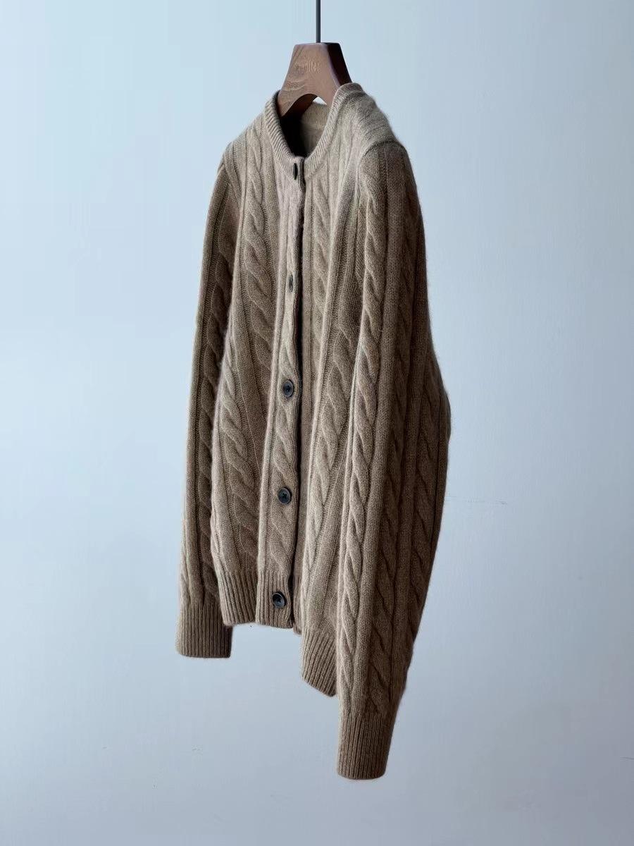 Cárdigan de lana gruesa para mujer, cuello redondo, suéter grueso que combina con todo, chaqueta de punto de cachemira suelta con flores retorcidas y felpa