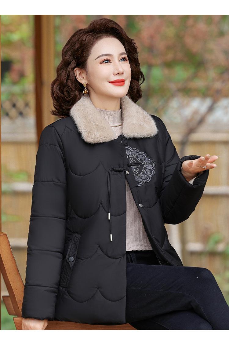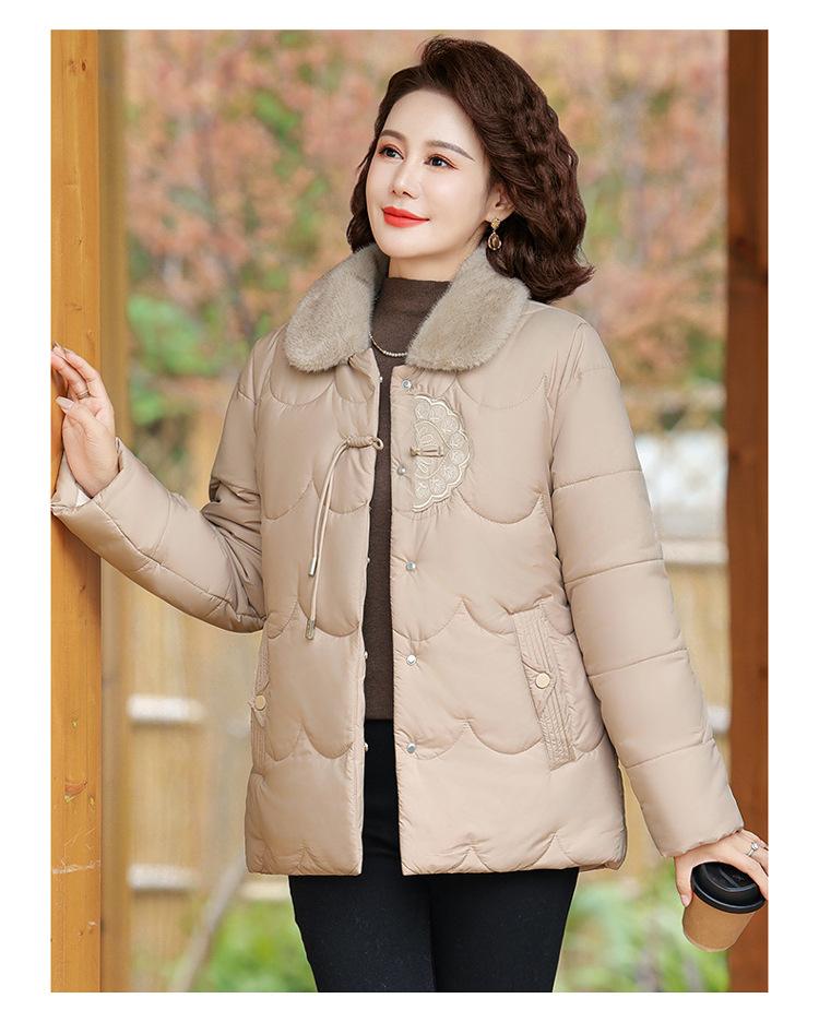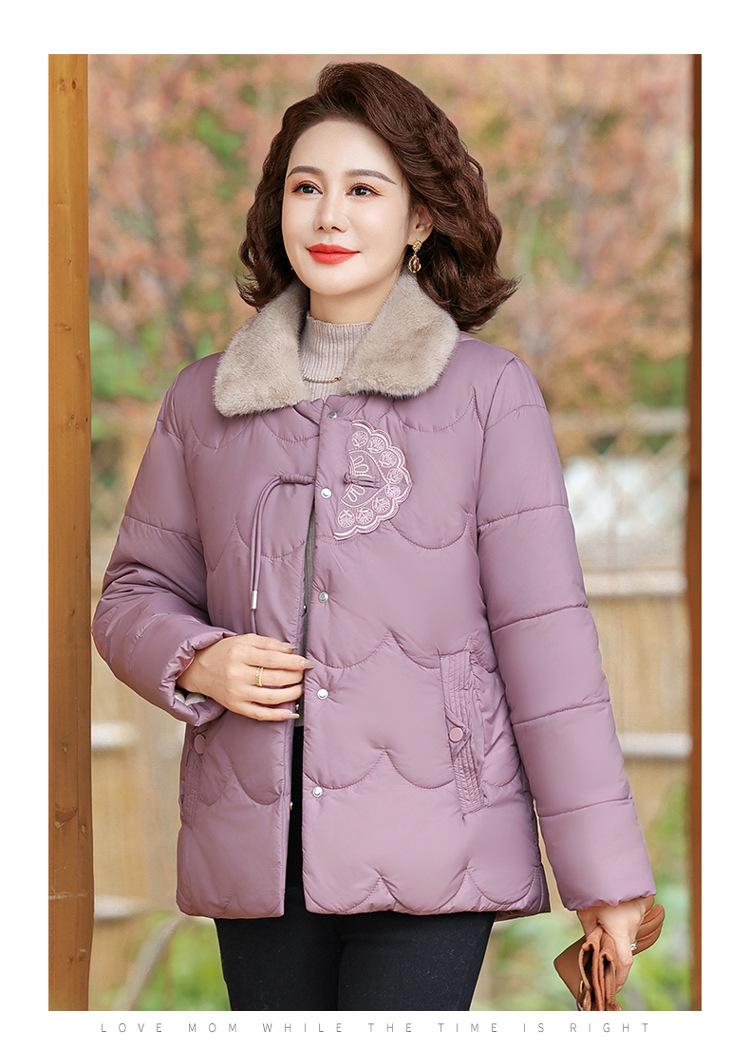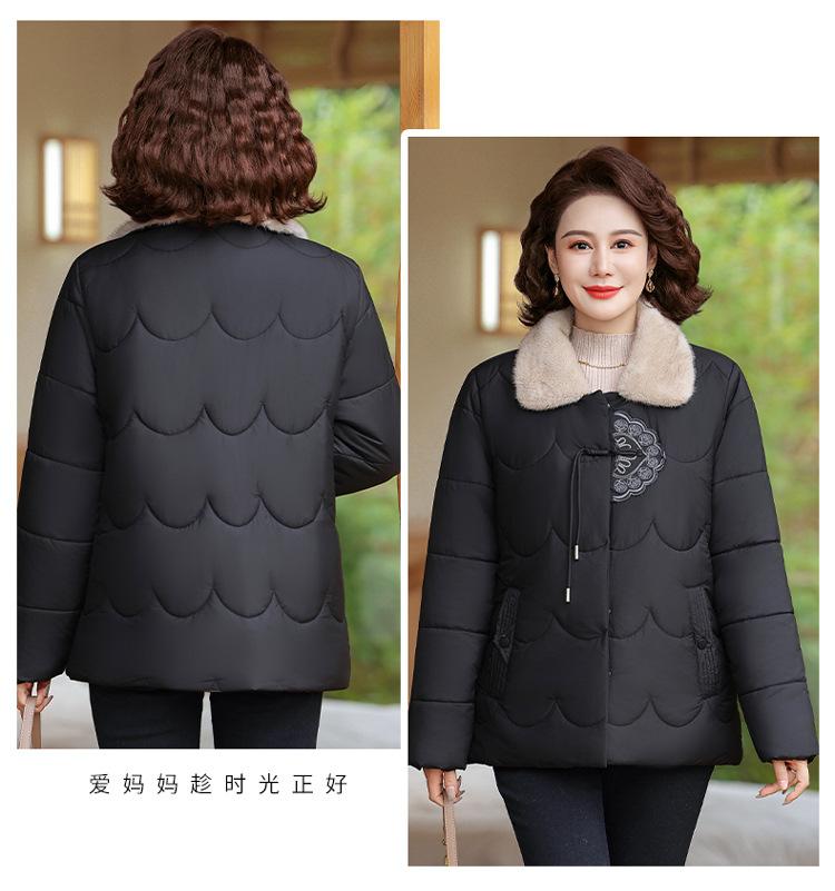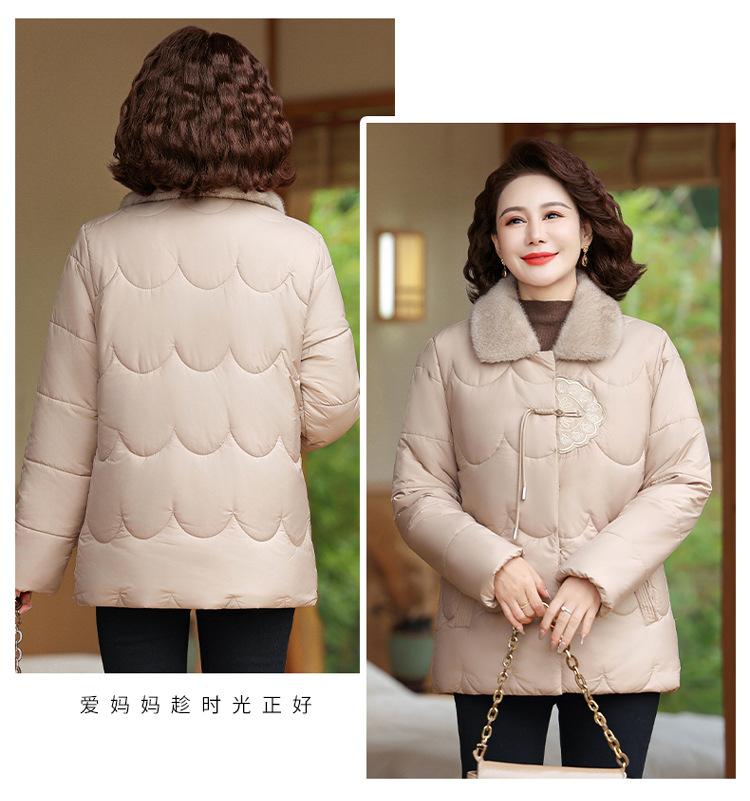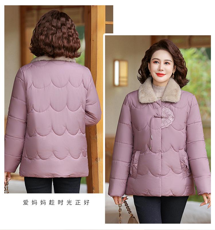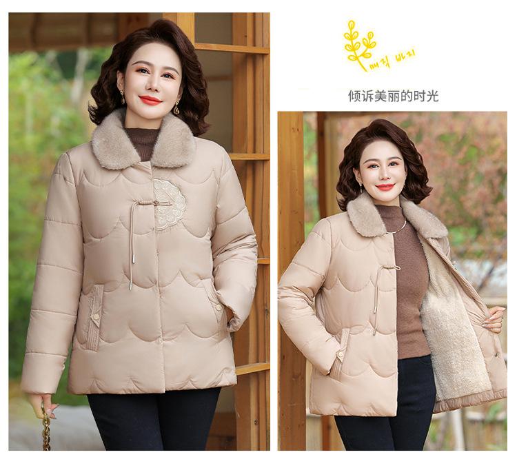 Ropa de invierno acolchada de algodón para madres de mediana edad, chaqueta acolchada de algodón cálida con forro polar, abrigo 2024, nueva chaqueta acolchada de algodón de estilo extranjero para mujeres de mediana edad y mayores