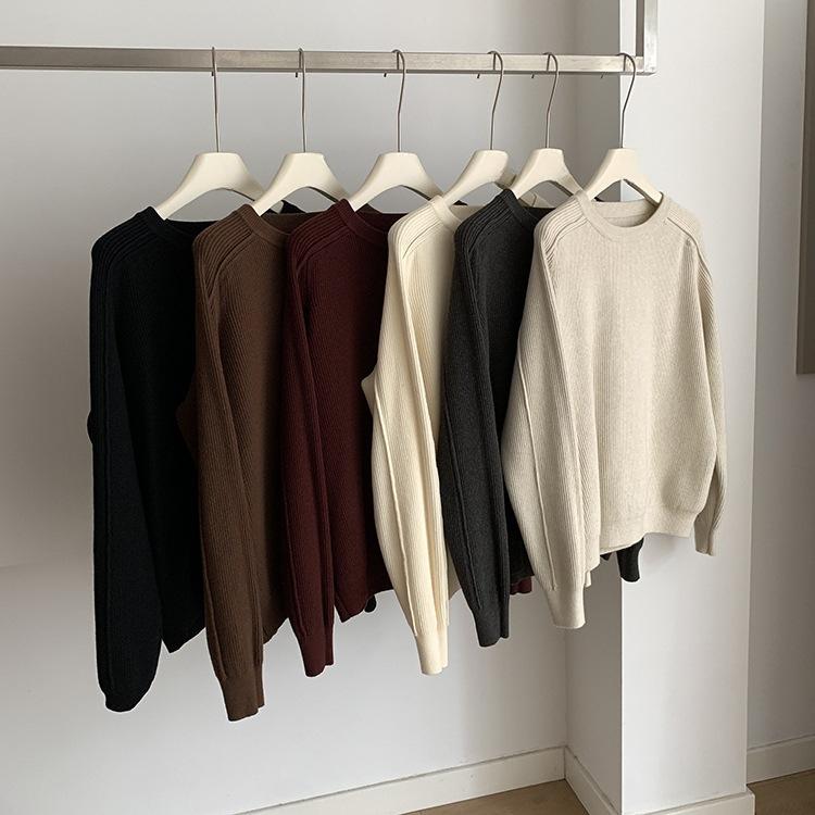 Este tipo de grosor y estilo de suéter tejido es realmente el rey de la practicidad.