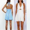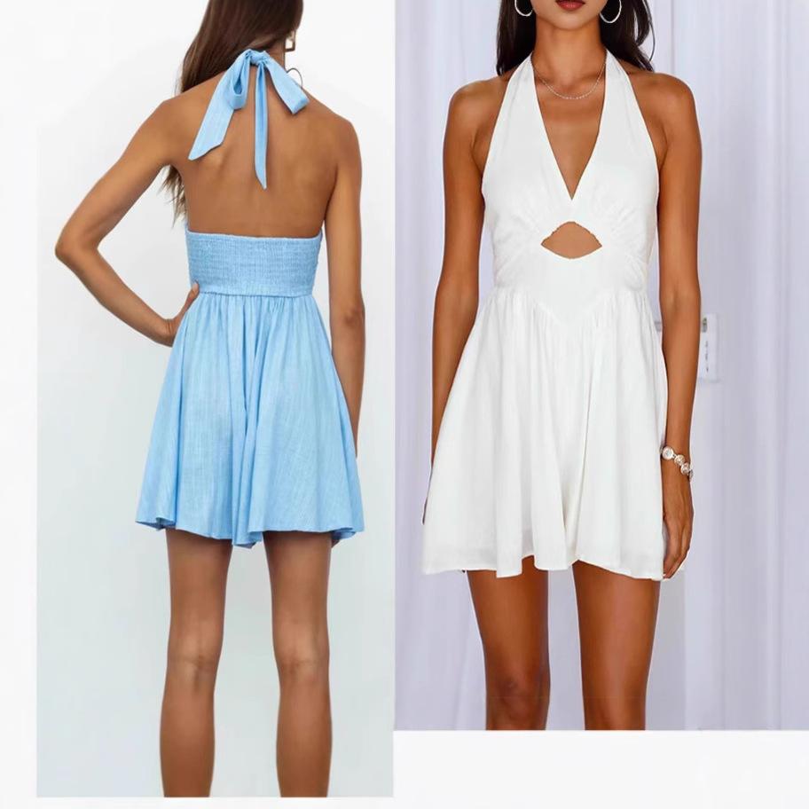 Verano 2024 Amazon AliExpress Europeo y Americano Transfronterizo Nuevo Algodón y Lino Cuello V Casual Mono Falda de Mujer