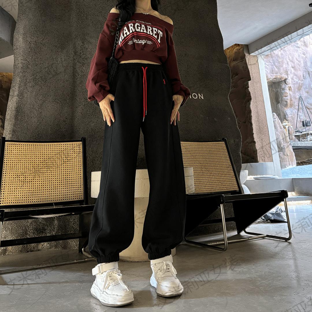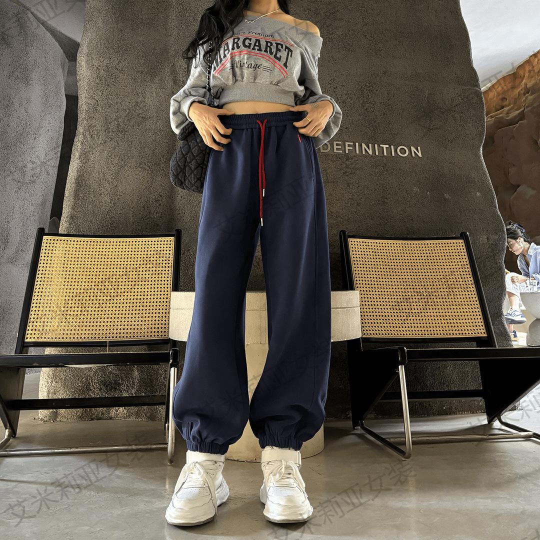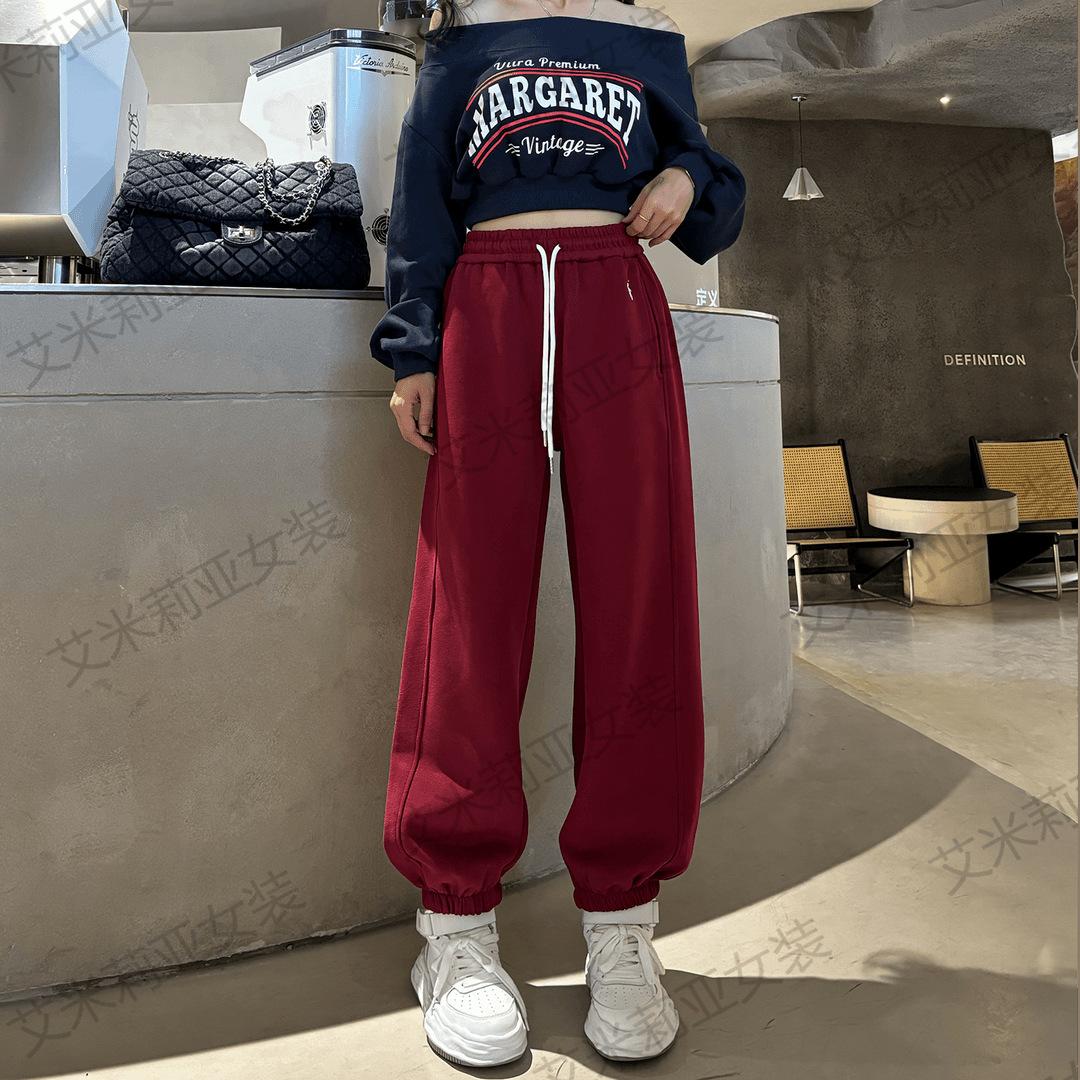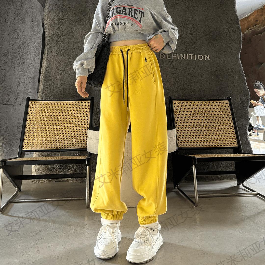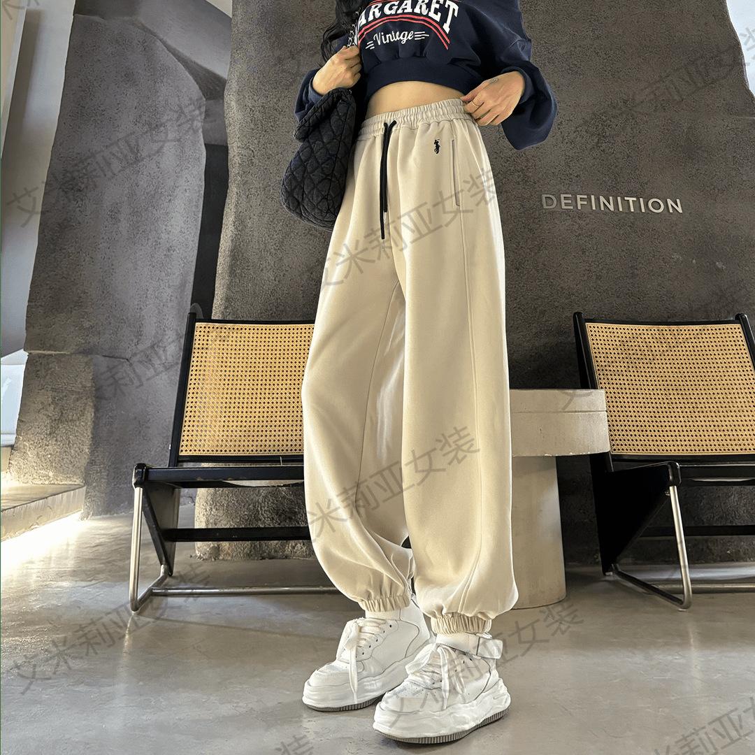 Pantalones de invierno 2024 afelpados, gruesos, de cintura alta, adelgazantes, bordados en la pierna, moda comodín, sueltos, pantalones deportivos pequeños casuales...
