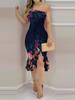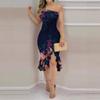 Vestido ceñido con hombros descubiertos y estampado irregular en azul marino para mujer, tendencia de moda de verano 2024, estilo europeo y americano