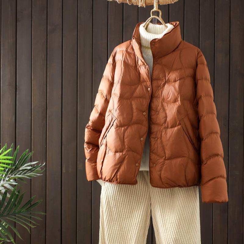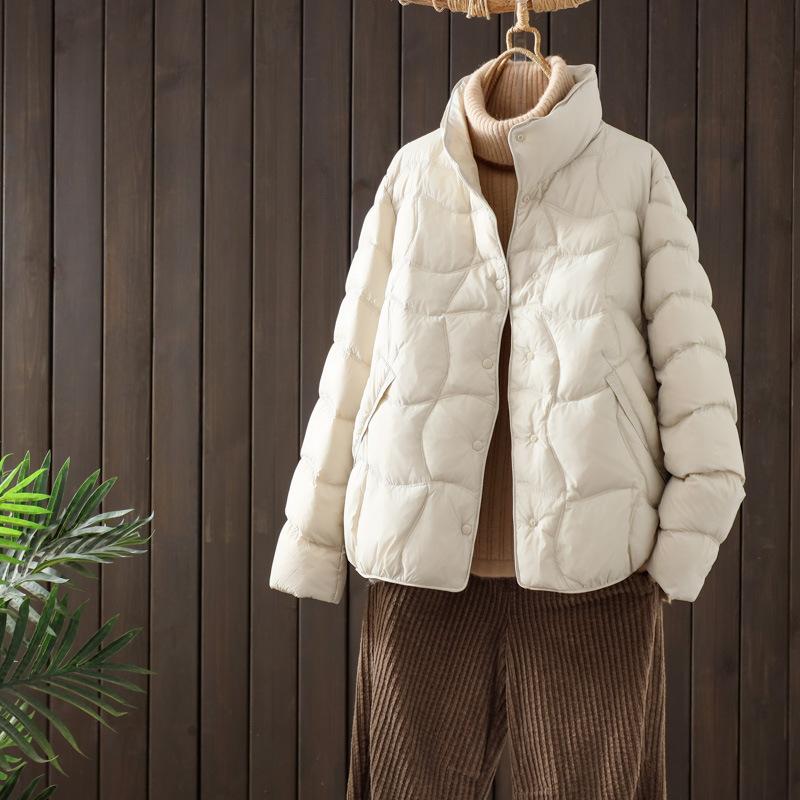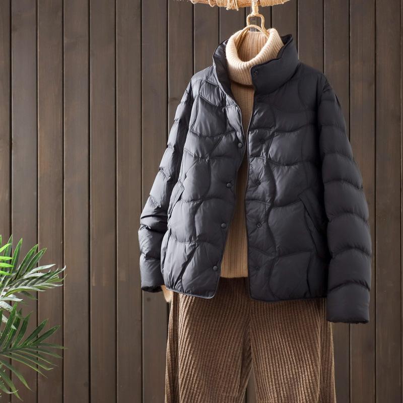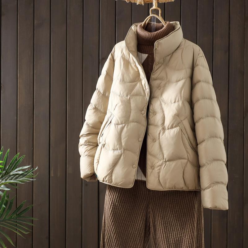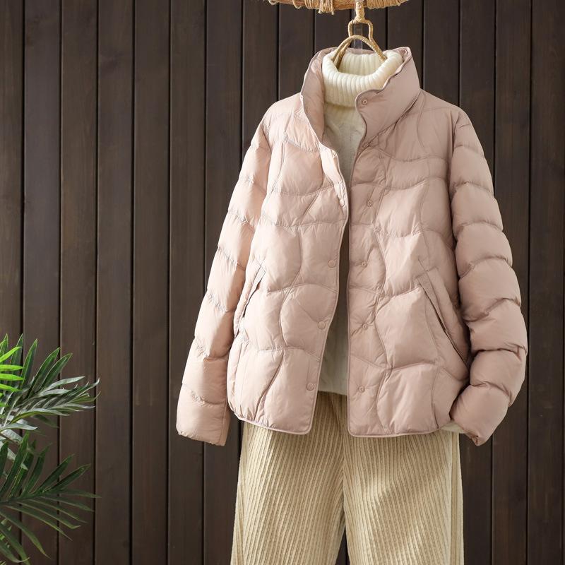 Nueva chaqueta ligera de plumón de pato blanco GB 90 para mujer, corta, de invierno 2024, estilo coreano, con cuello vertical, talla pequeña, 106