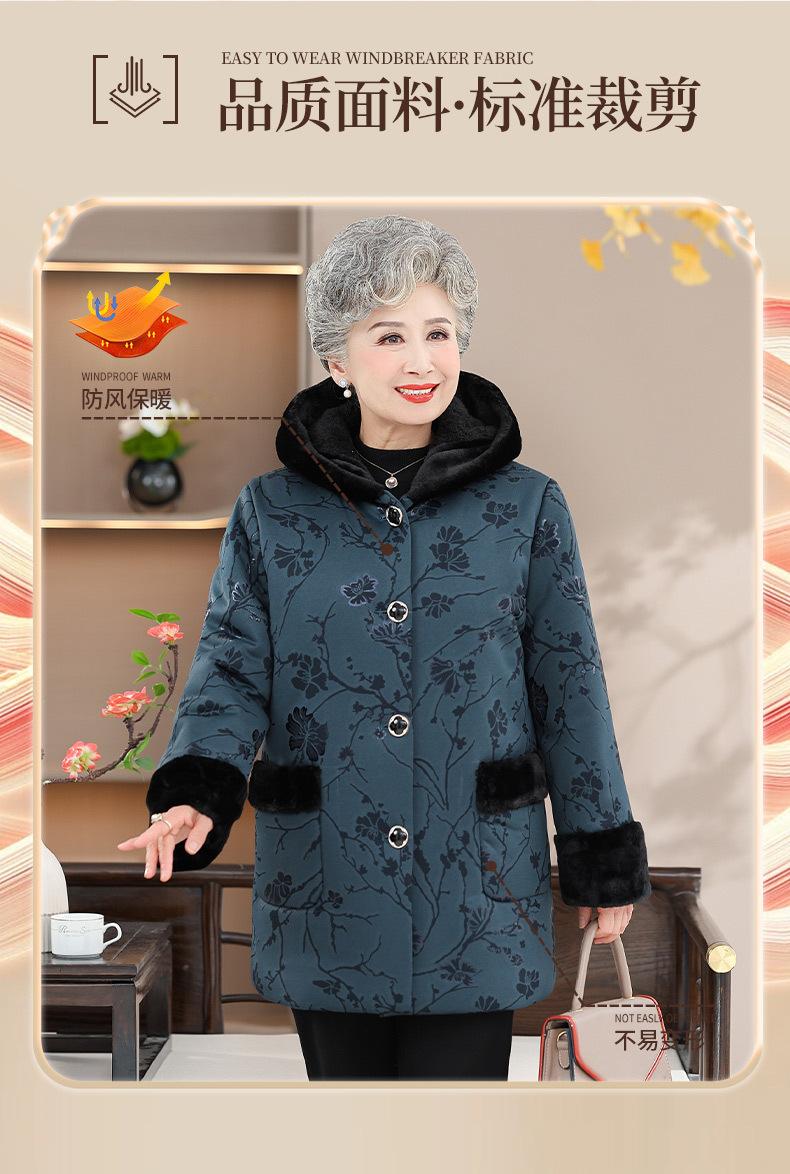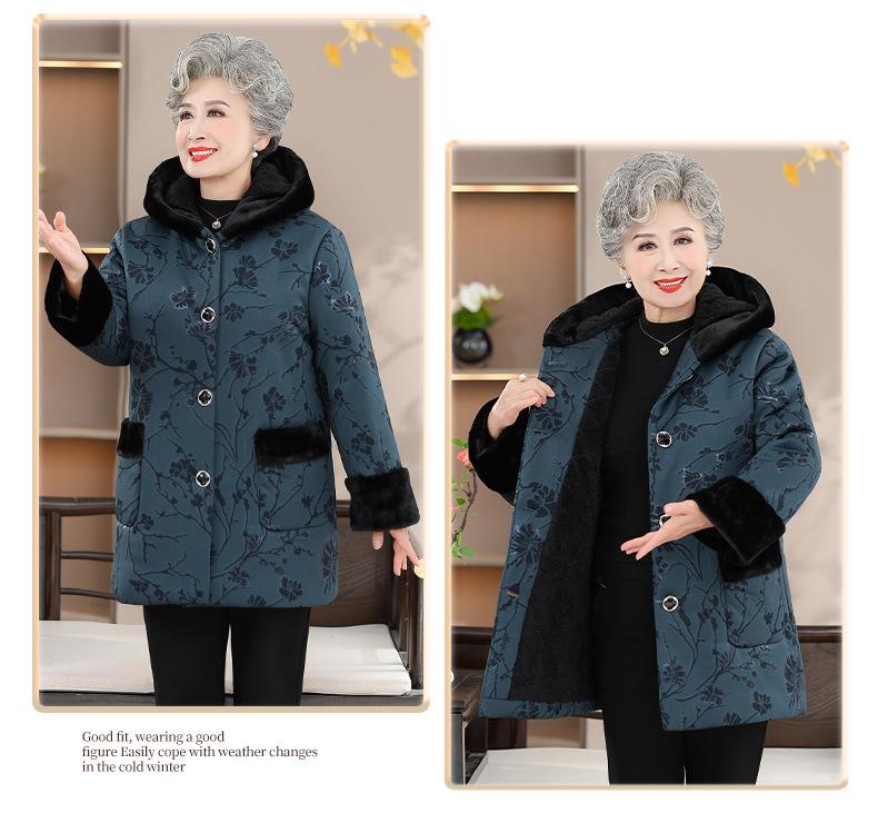 Ropa de algodón acolchada con forro polar de invierno para madres de mediana edad y ancianas, abrigo grueso con capucha para abuela, chaqueta cálida de algodón acolchado para anciana, venta al por mayor