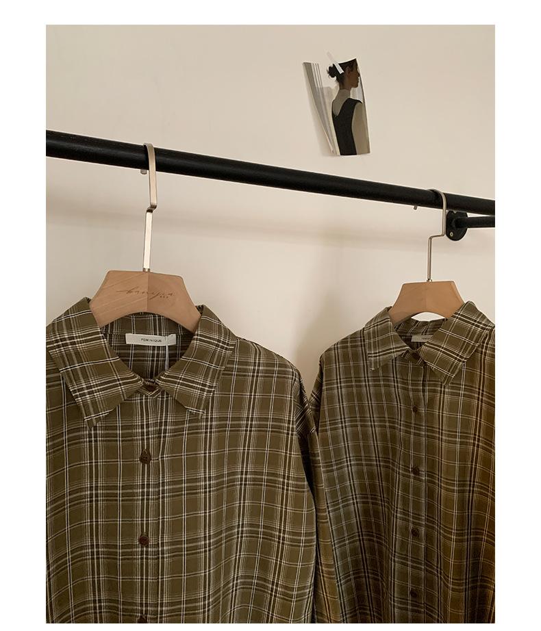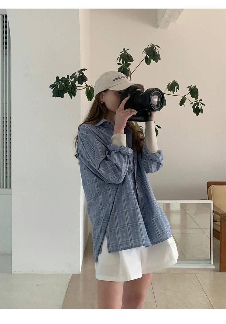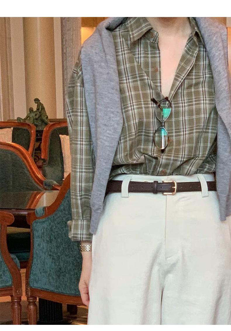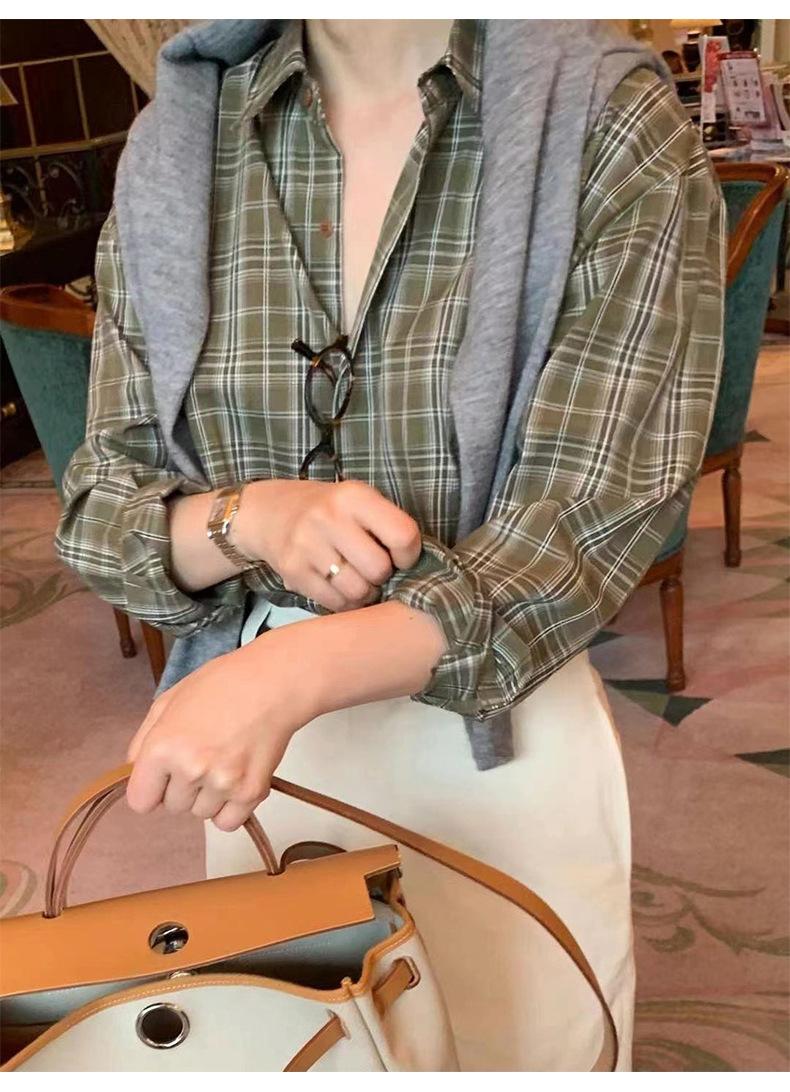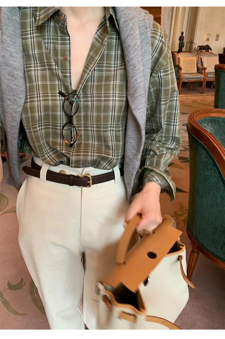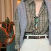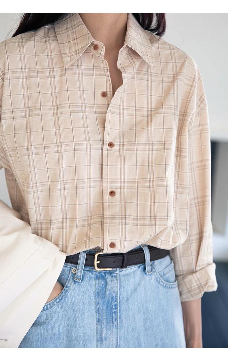 Camisa de Cuadros Nicho de Diseño Elegante Casual Versátil Coreana Dongdaemun Otoño 2025 Camisa de Manga Larga para Mujer