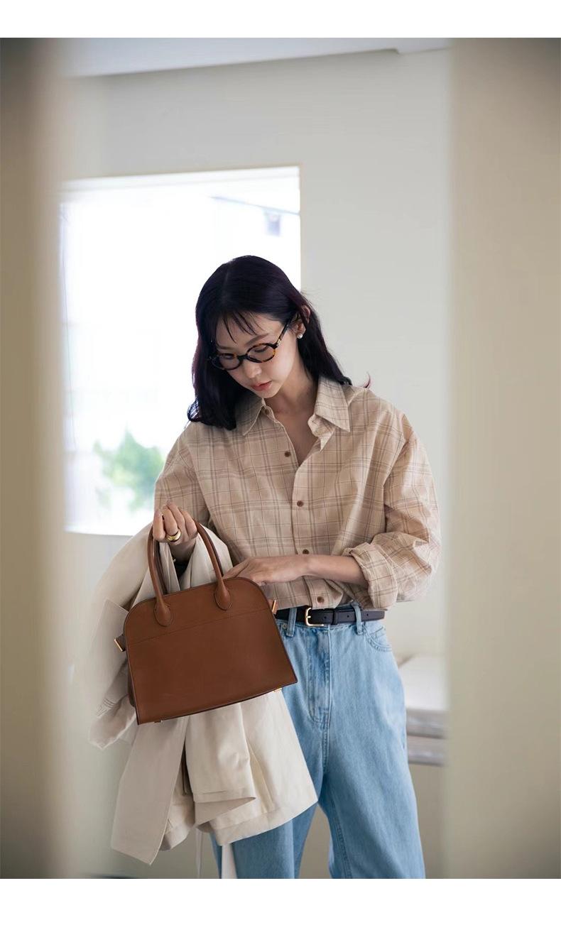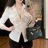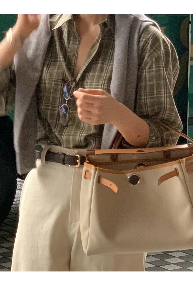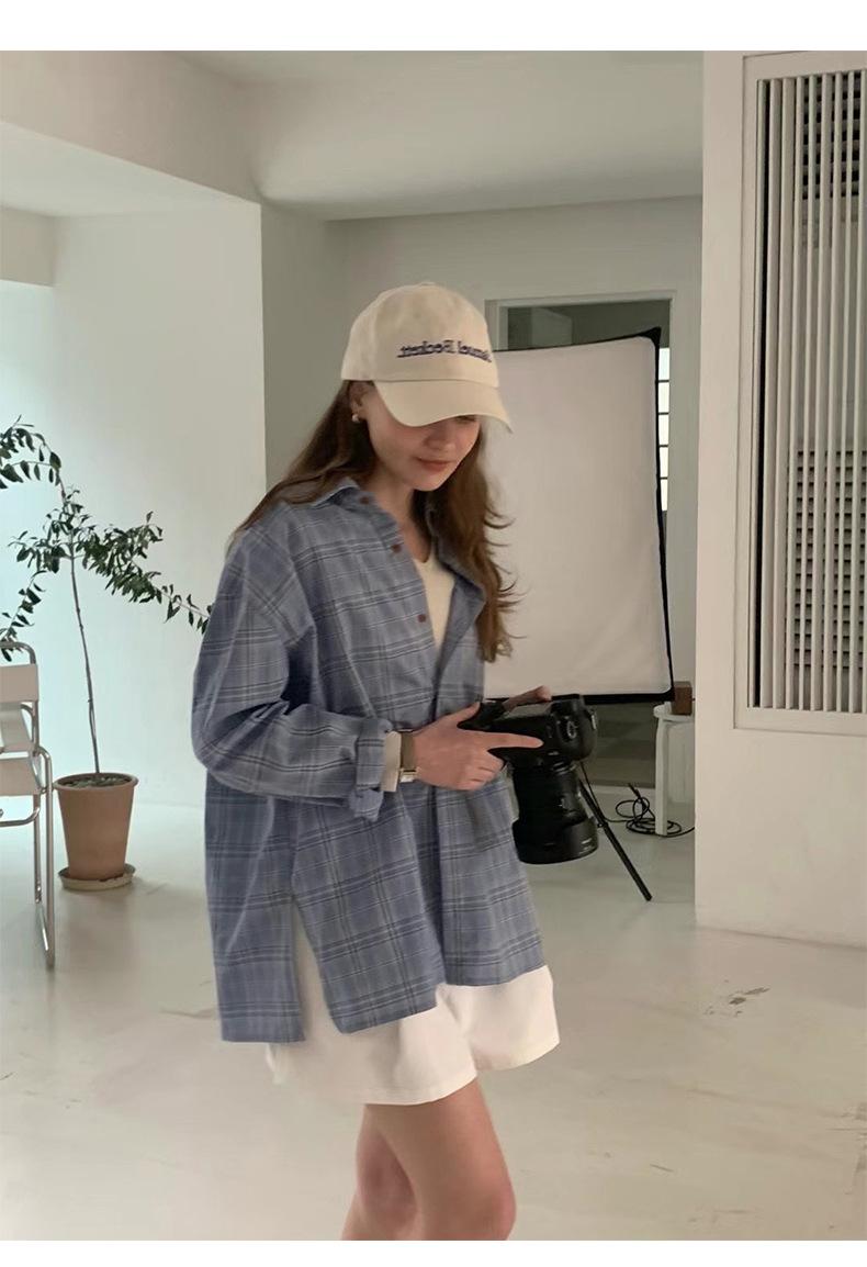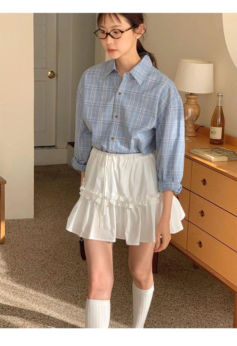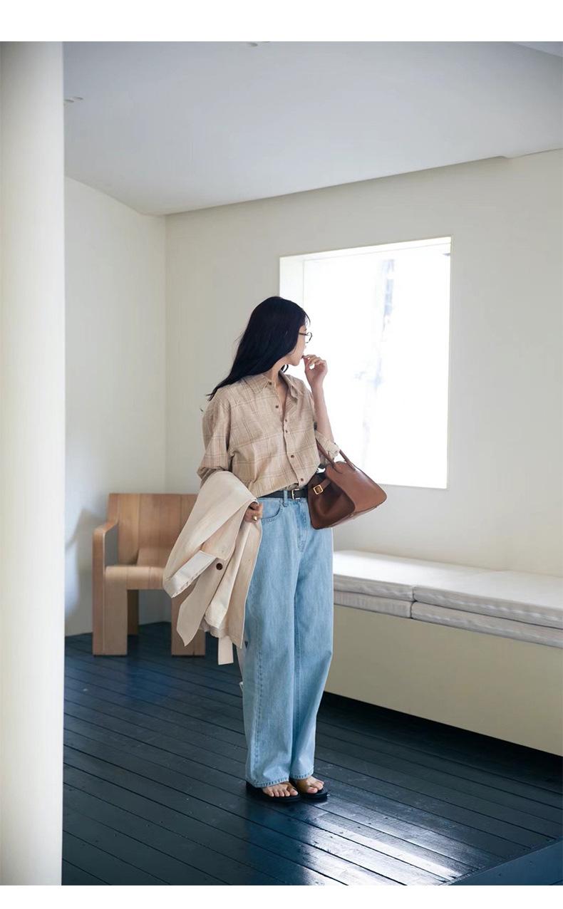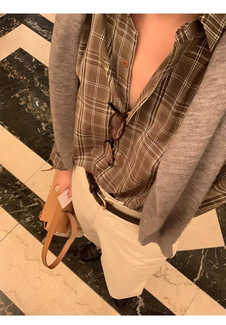 Camisa de Cuadros Nicho de Diseño Elegante Casual Versátil Coreana Dongdaemun Otoño 2025 Camisa de Manga Larga para Mujer