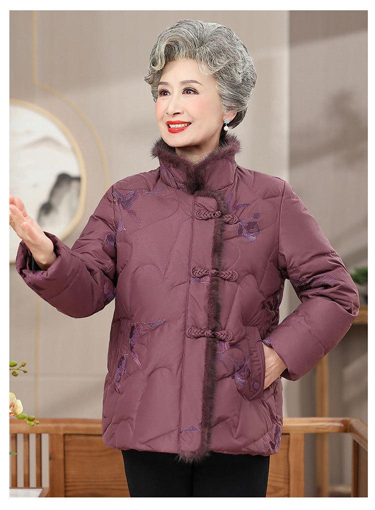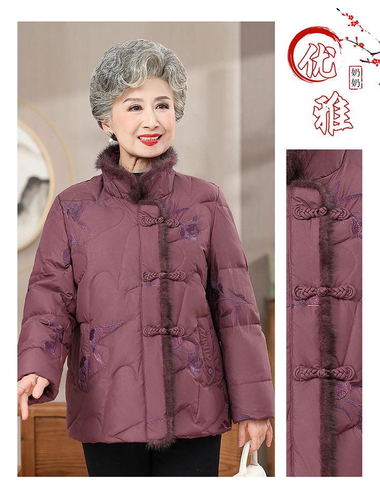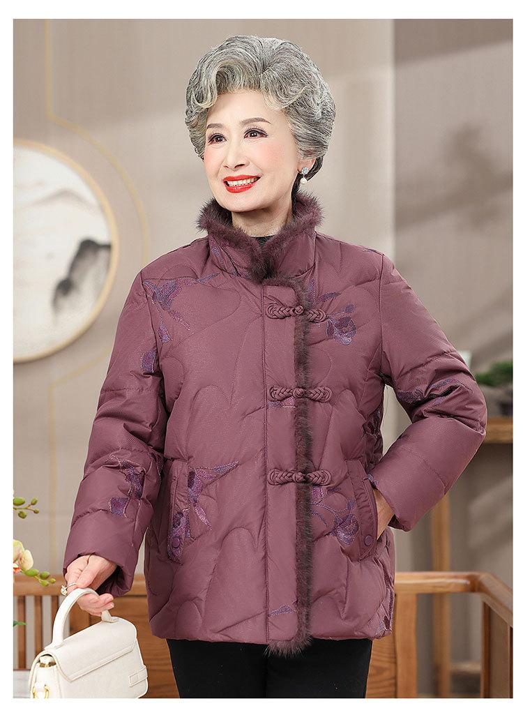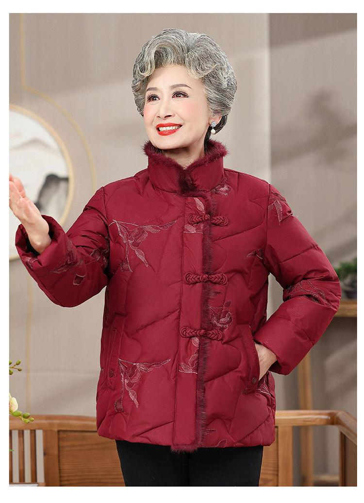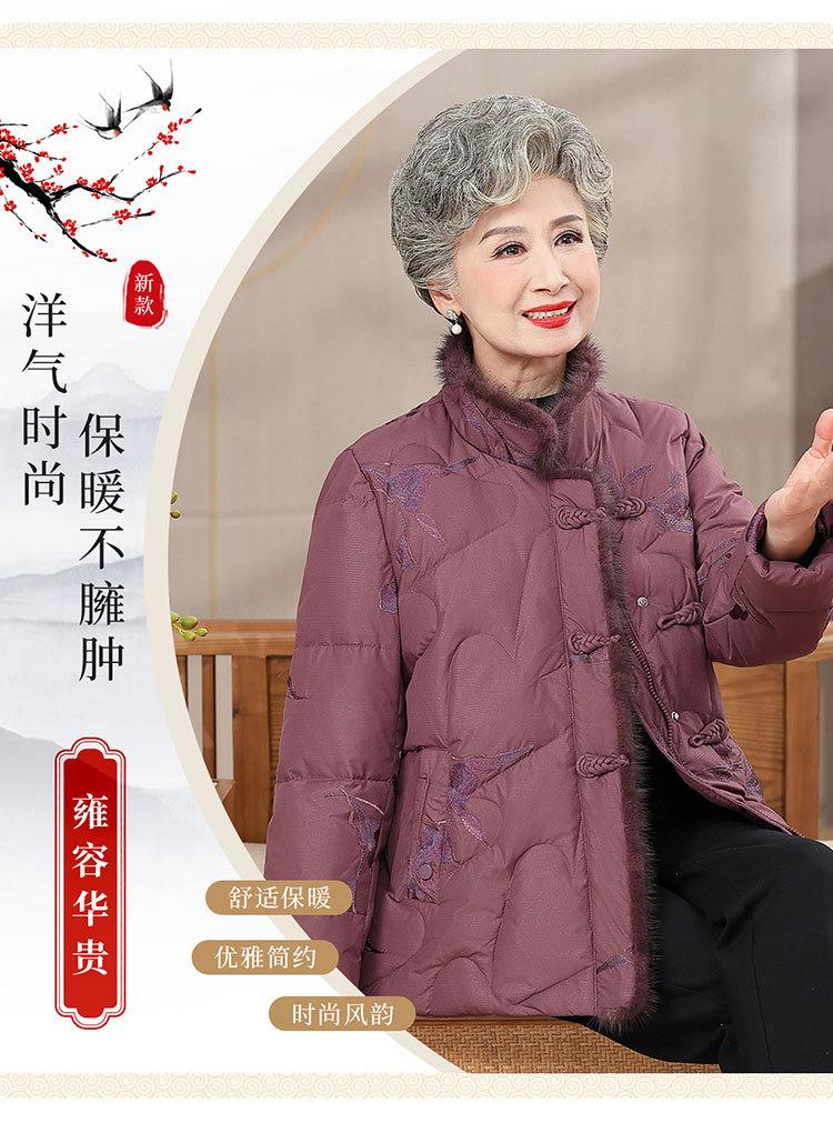 Chamarra de Plumas para Mujeres de Mediana Edad y Ancianas Corta Ligera Invierno Nuevo Estilo Pequeña Abuela Abrigo Guofeng de Anciana