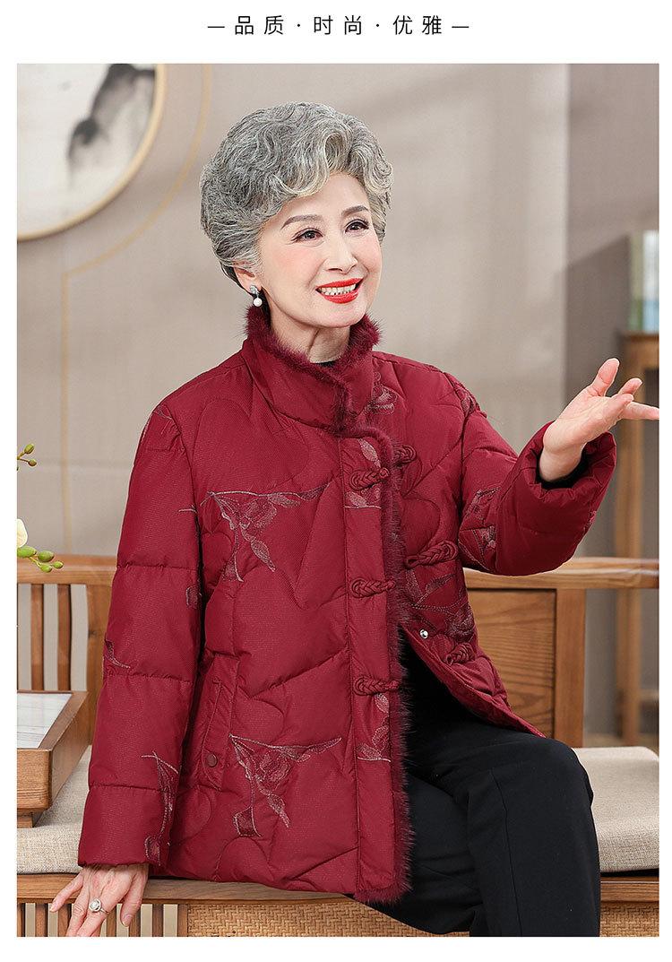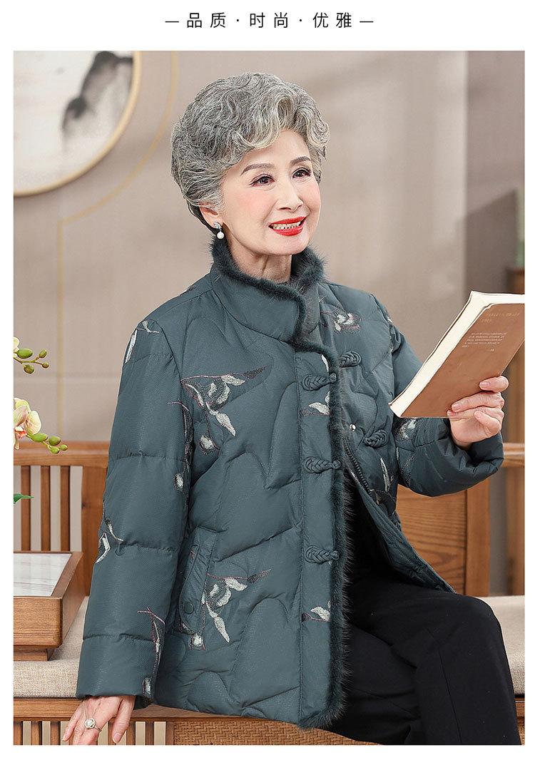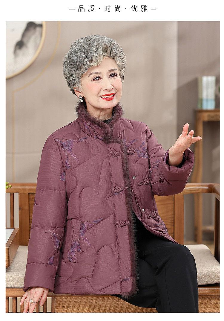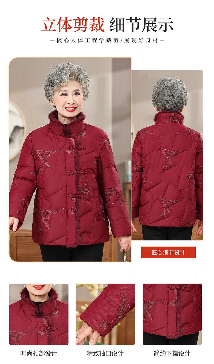 Chamarra de Plumas para Mujeres de Mediana Edad y Ancianas Corta Ligera Invierno Nuevo Estilo Pequeña Abuela Abrigo Guofeng de Anciana