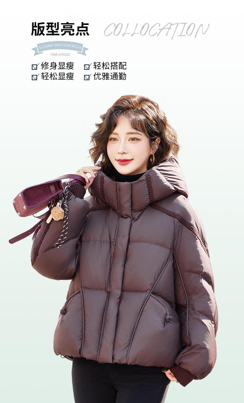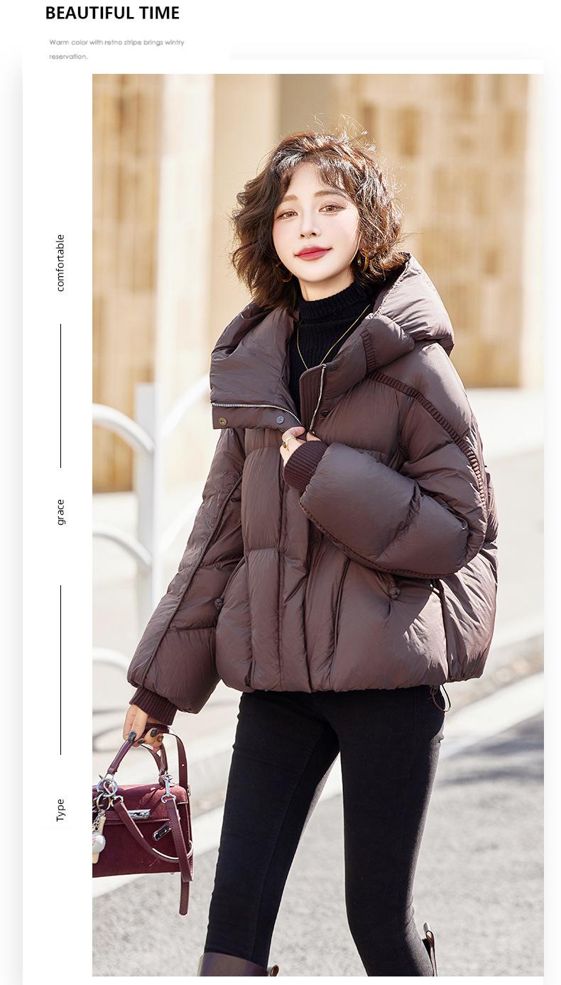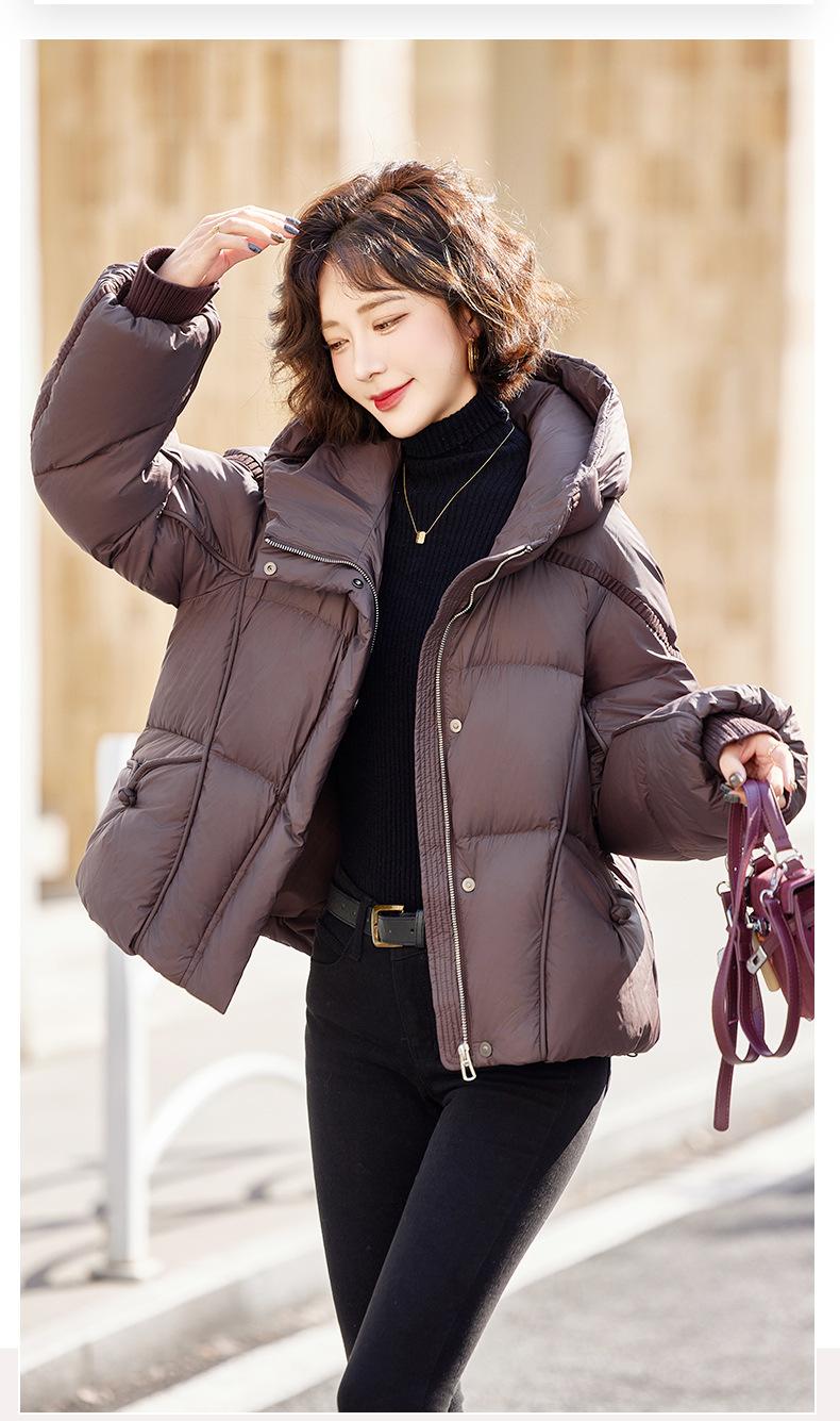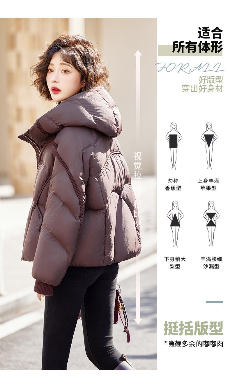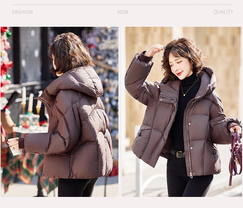 Chaqueta corta con capucha para mujer, invierno 2024, nueva chaqueta holgada informal de plumón de pato blanco grueso y pequeño.