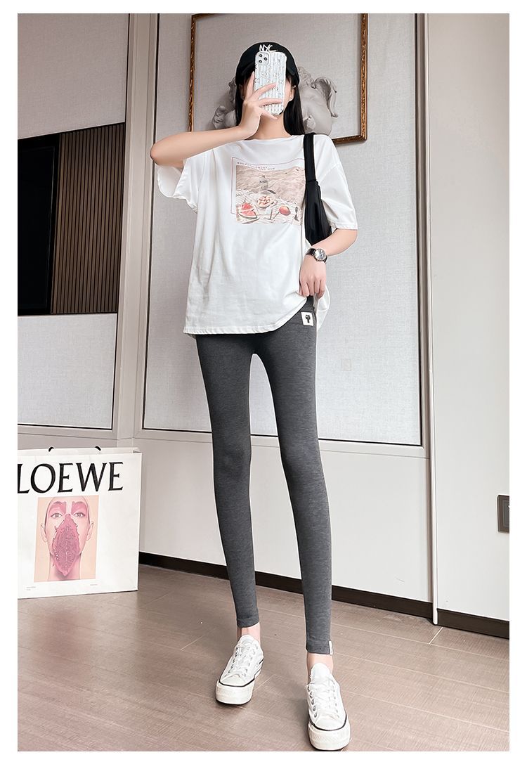 Ropa para embarazadas, otoño e invierno coreanos, abrigo cálido con forro polar, moda de talla grande, leggings ajustados de cintura alta para madre embarazada