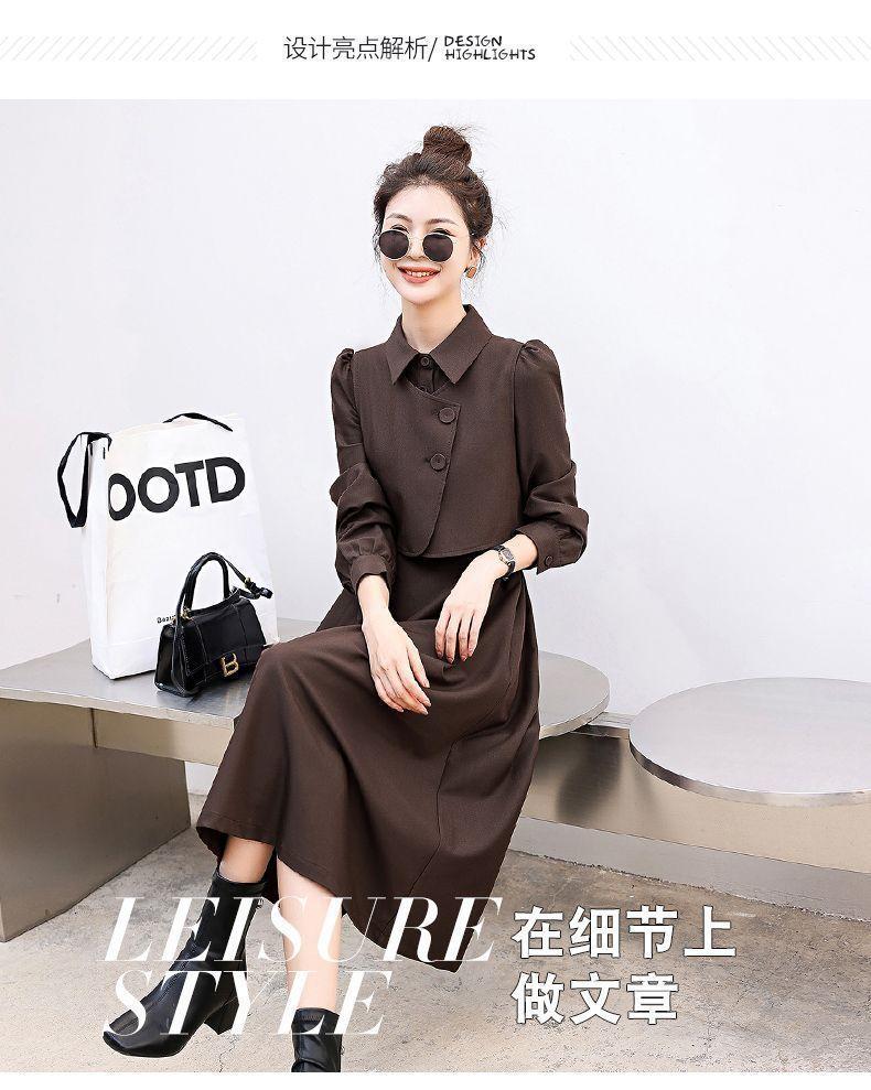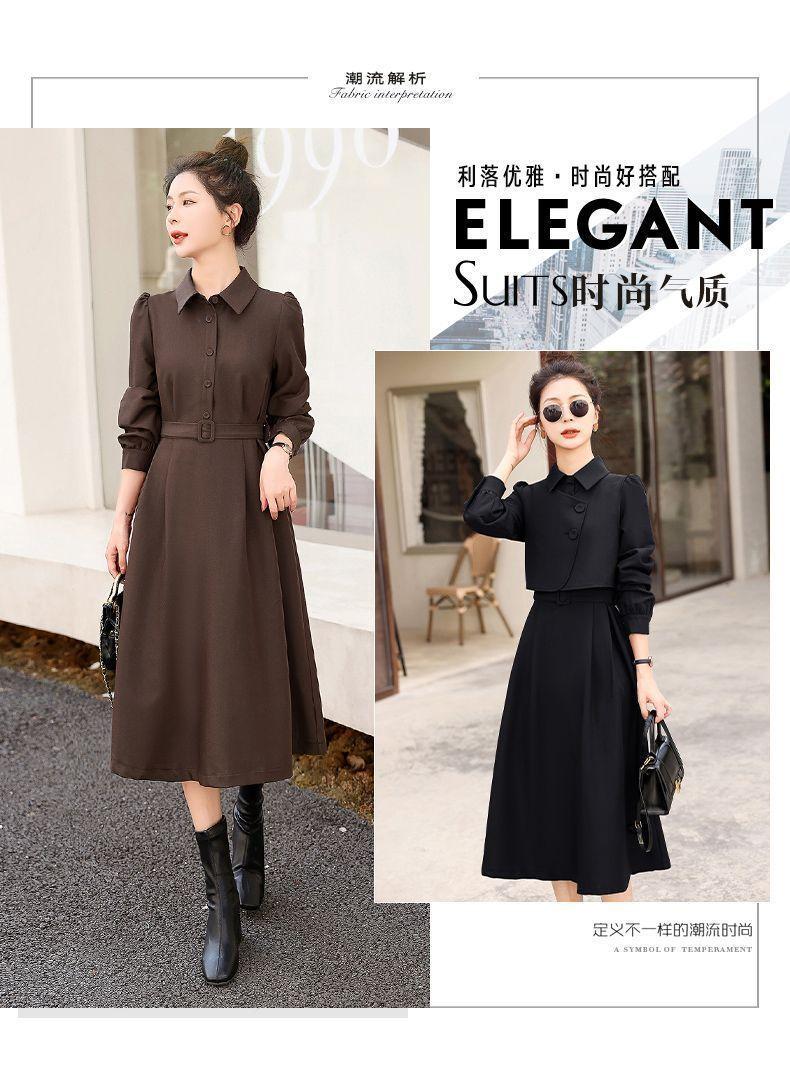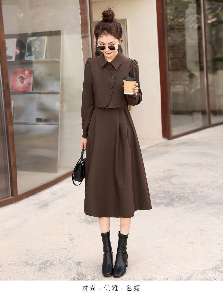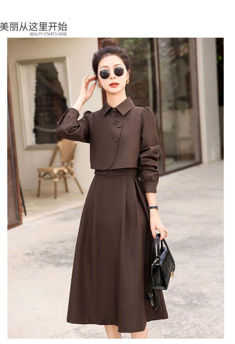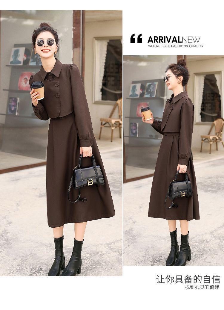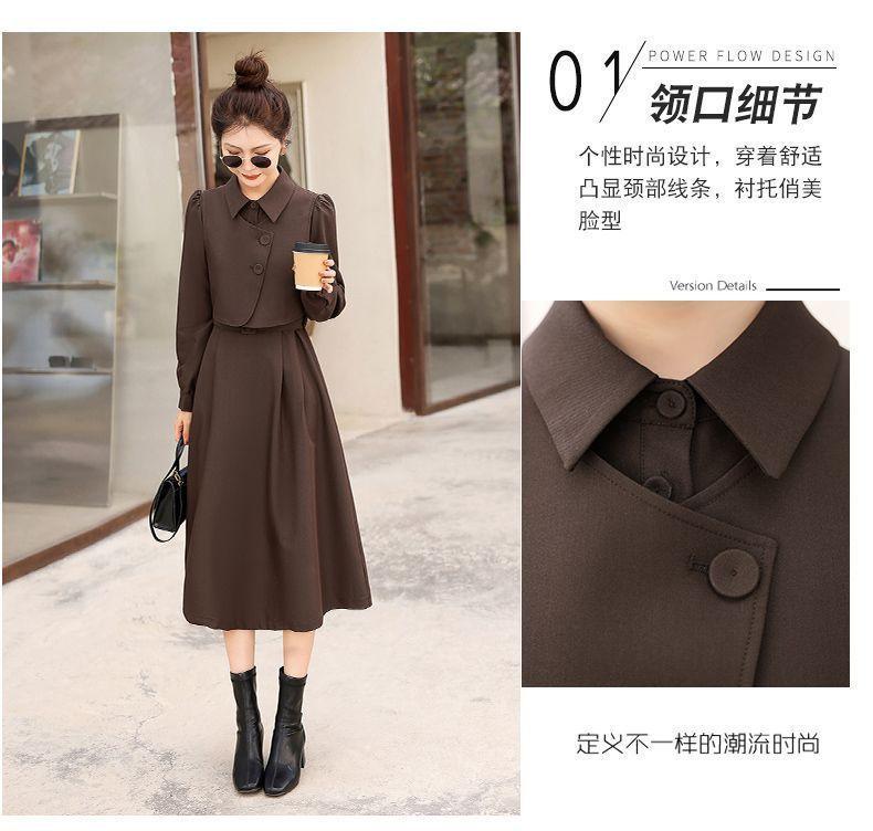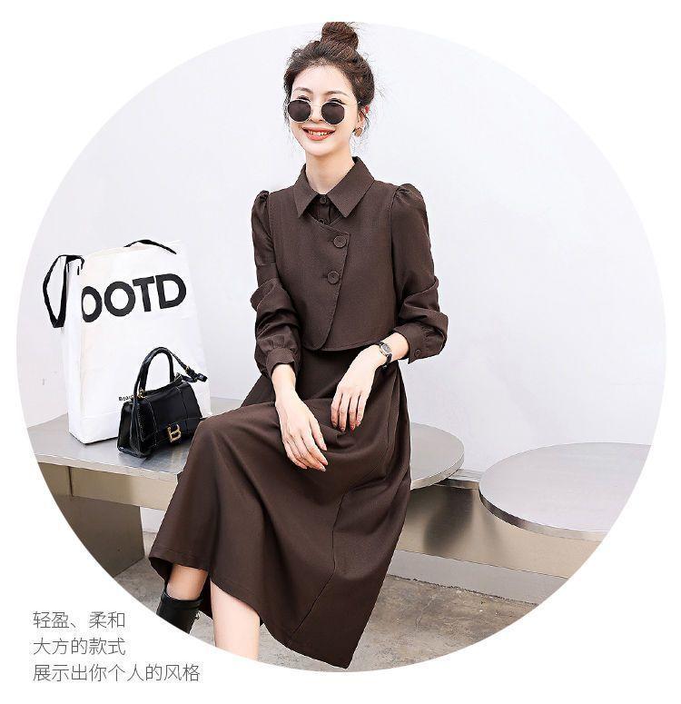 Vestido de Temperamento con Sentido de la Moda Ropa de Otoño para Mujer Nuevo Popular Chaleco Dos Piezas Falda Larga