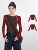 Camiseta americana de manga larga con cuello redondo y raso para mujer, de primavera y otoño, corta, ajustada, con base interior ajustada, top sexy para chica.