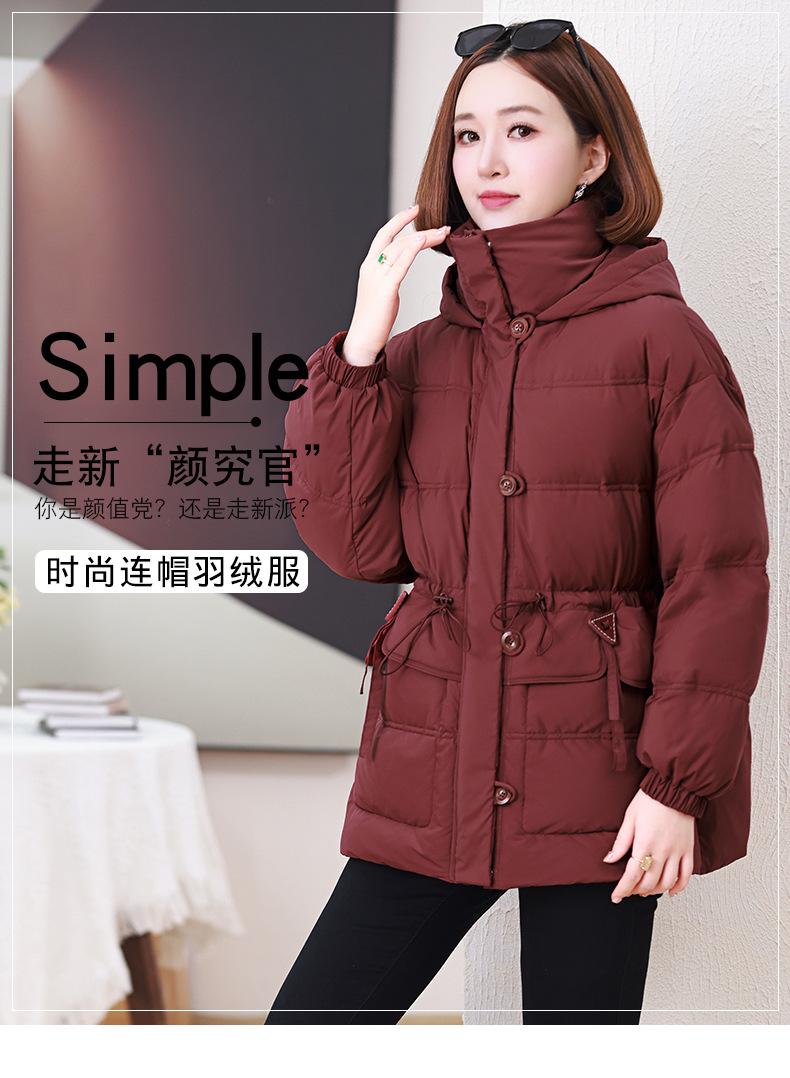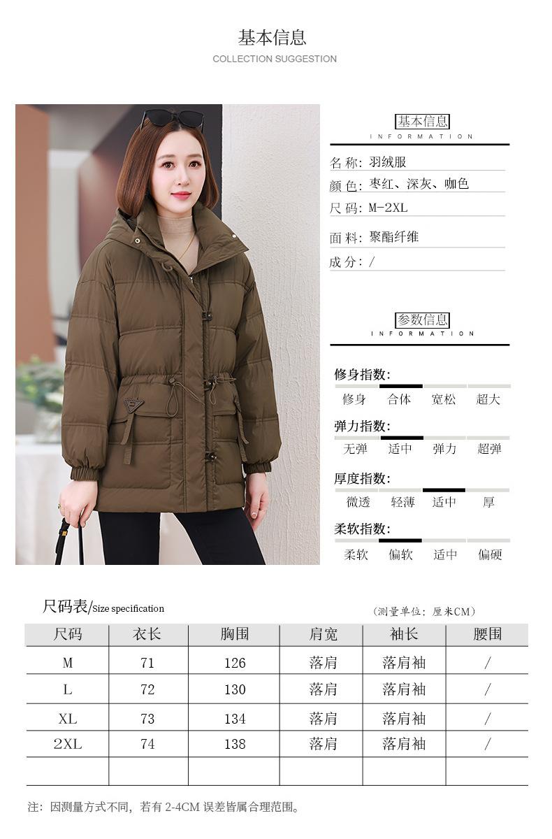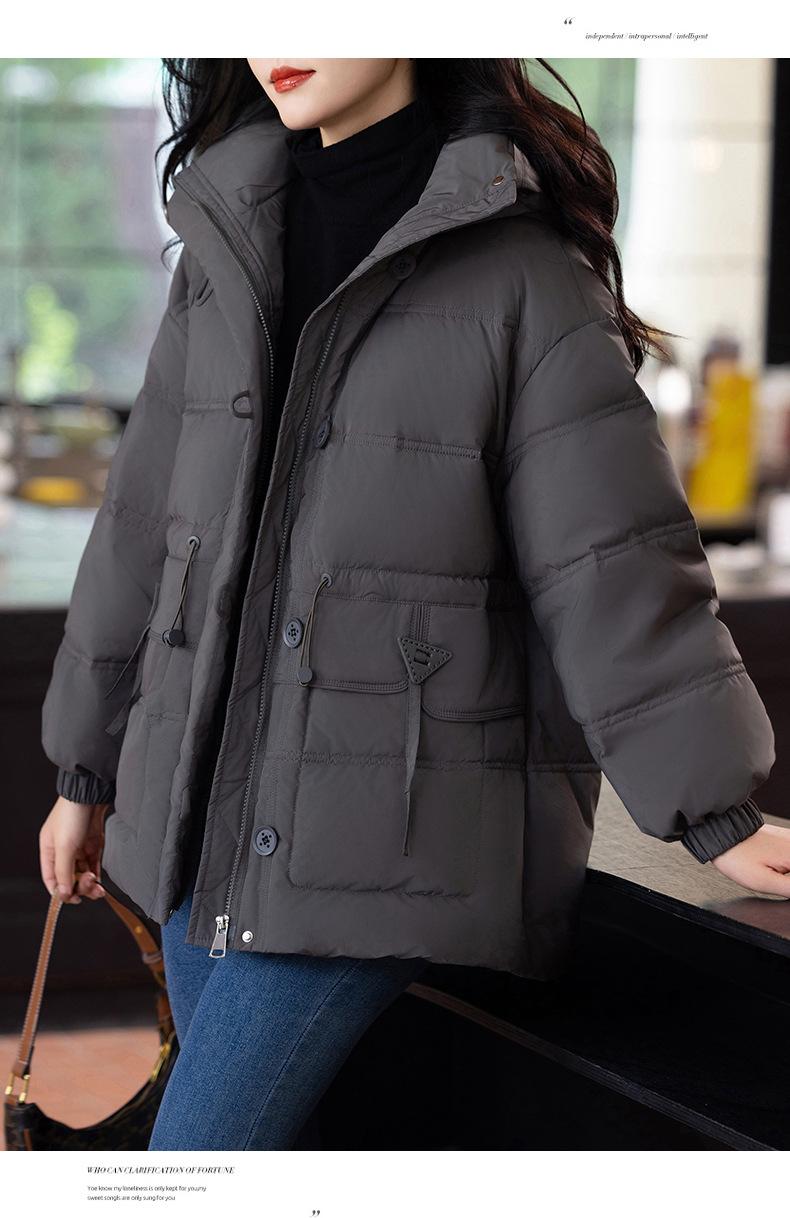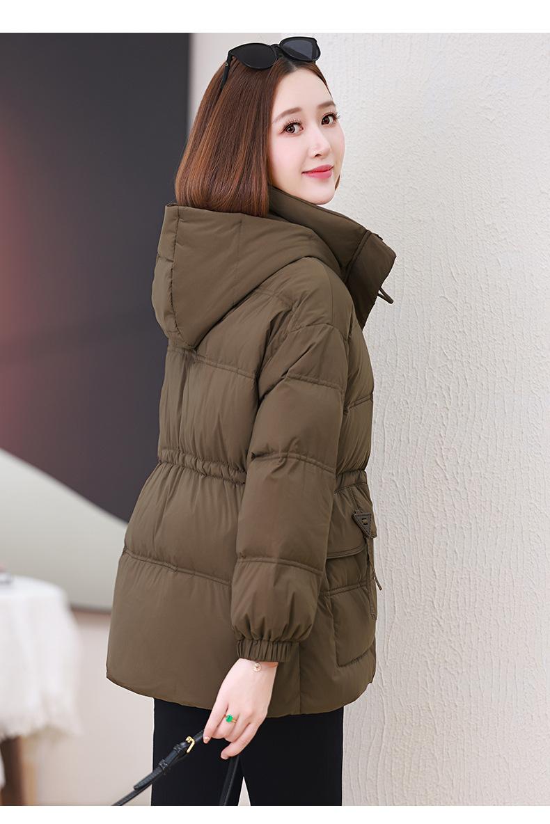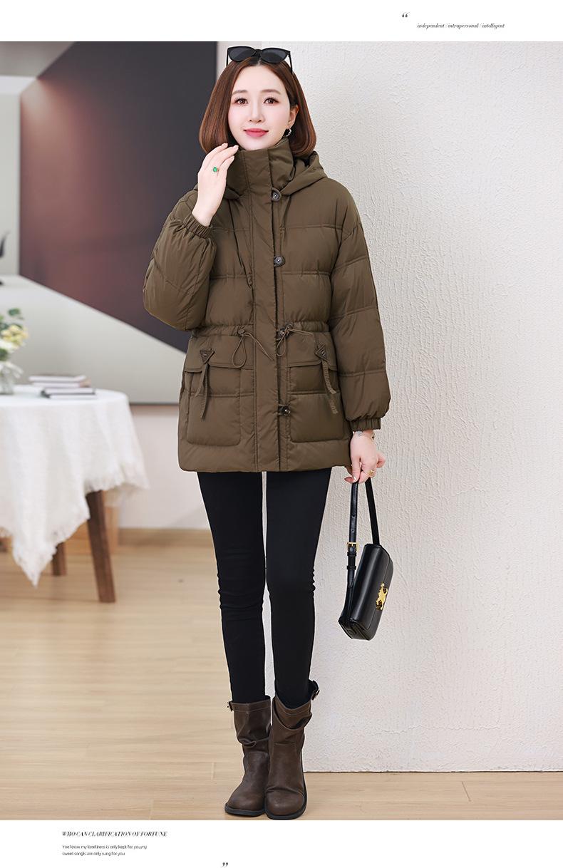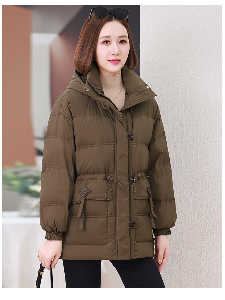 Chamarra de Plumón con Capucha y Cuello Cálido Engrosado para Mujer 2024 Invierno Nueva Mamá Cintura con Cordón Adelgazante Chamarra de Plumón de Pato Blanco