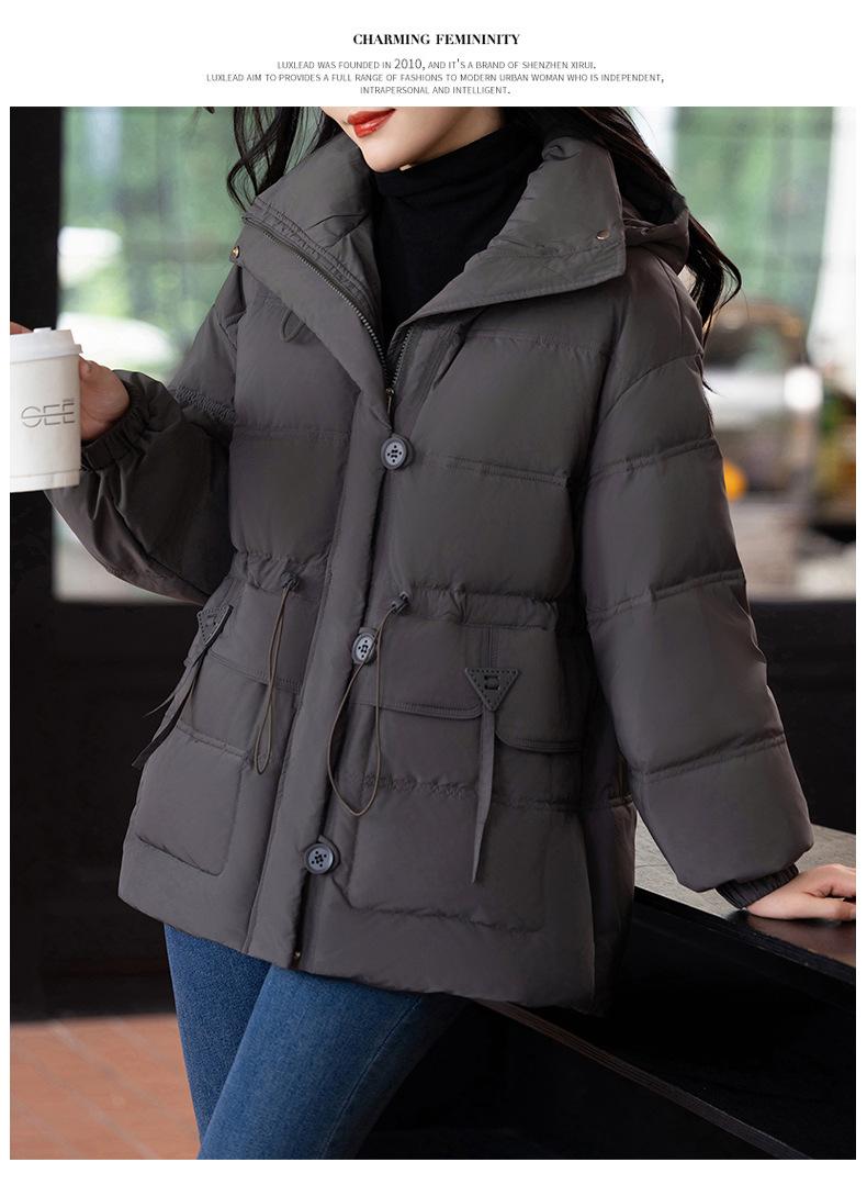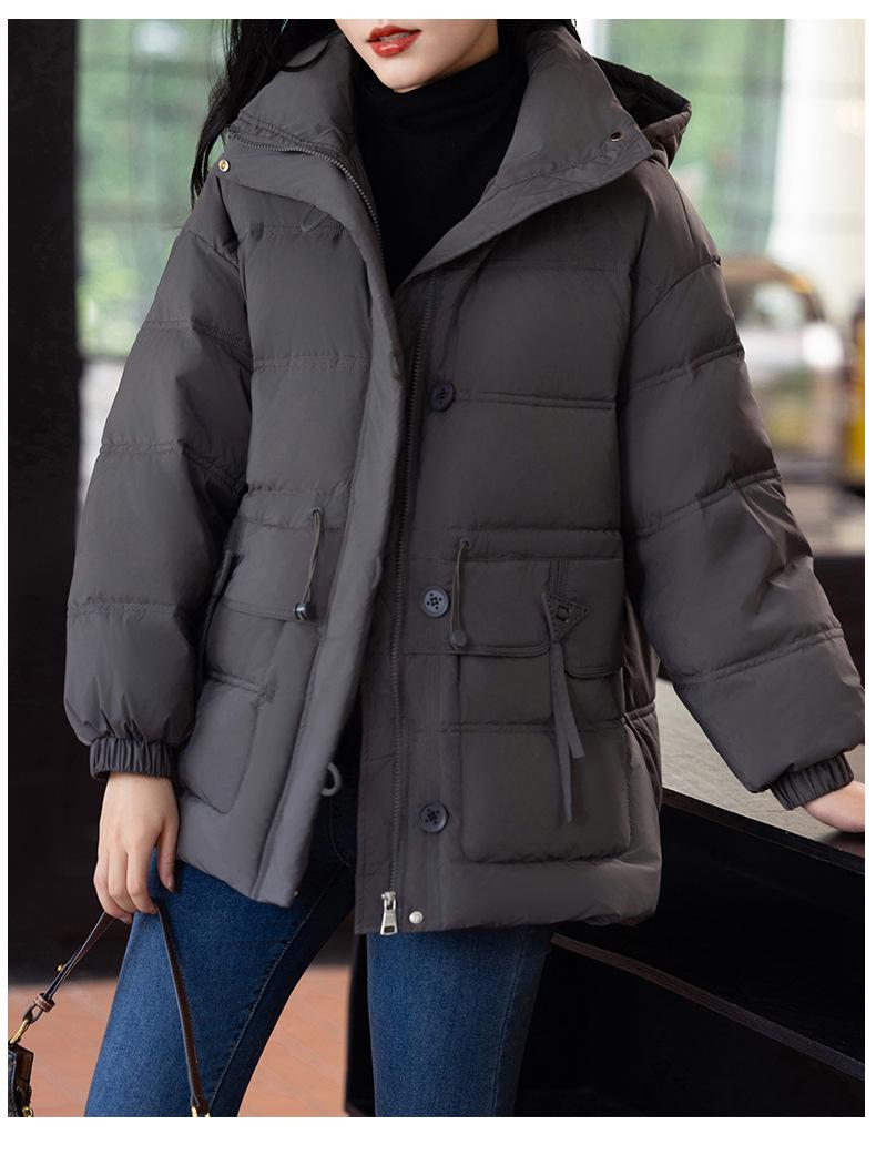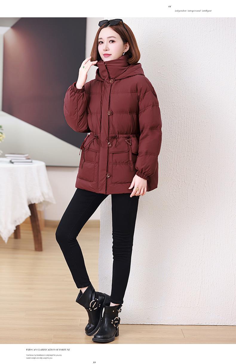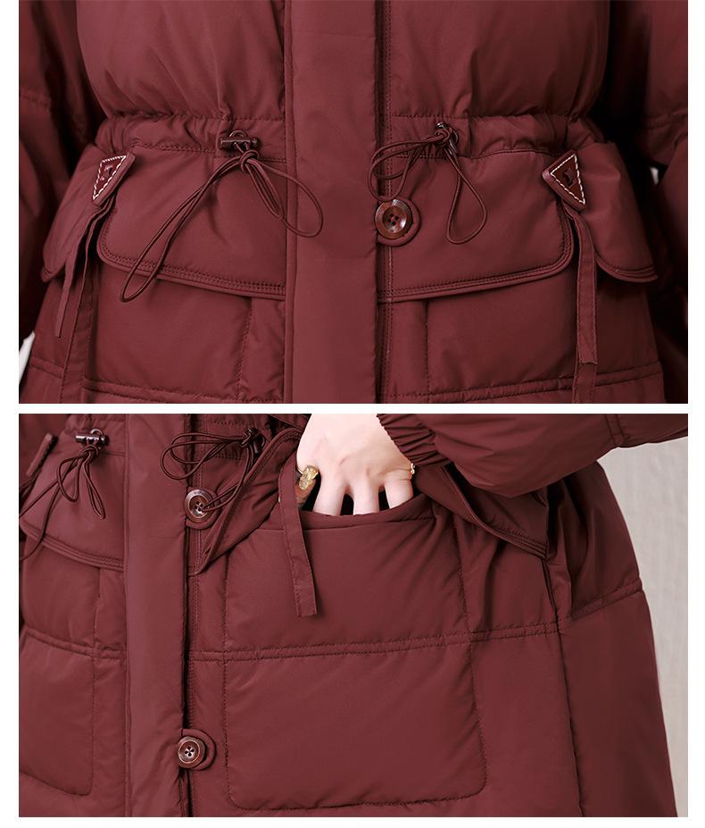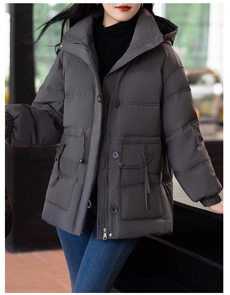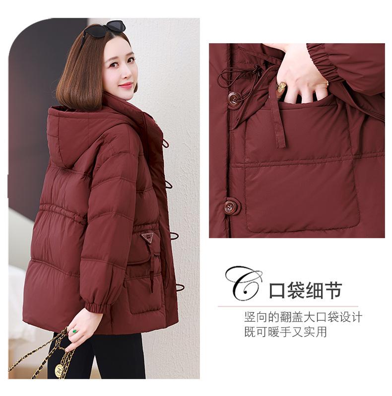 Chamarra de Plumón con Capucha y Cuello Cálido Engrosado para Mujer 2024 Invierno Nueva Mamá Cintura con Cordón Adelgazante Chamarra de Plumón de Pato Blanco